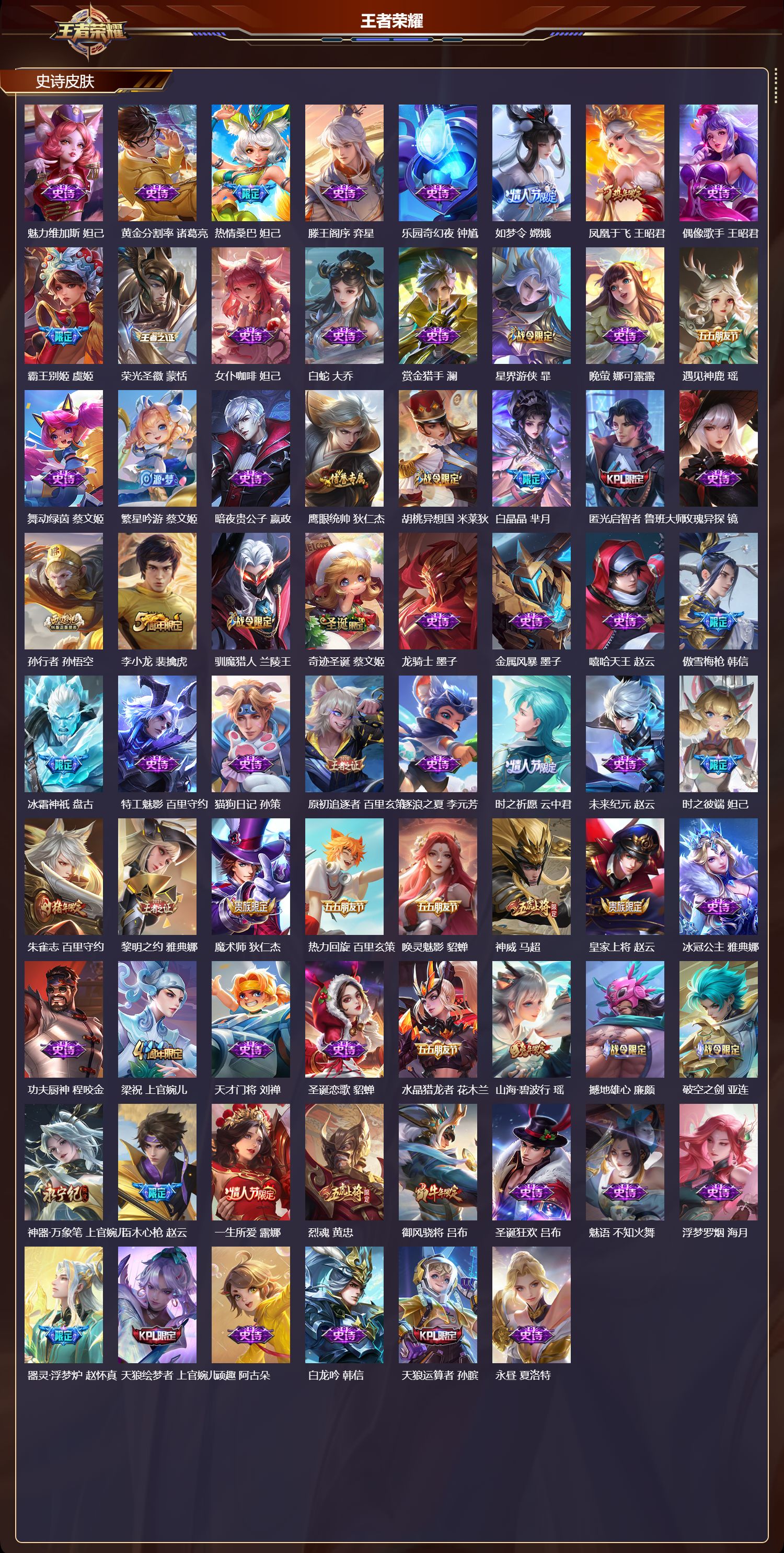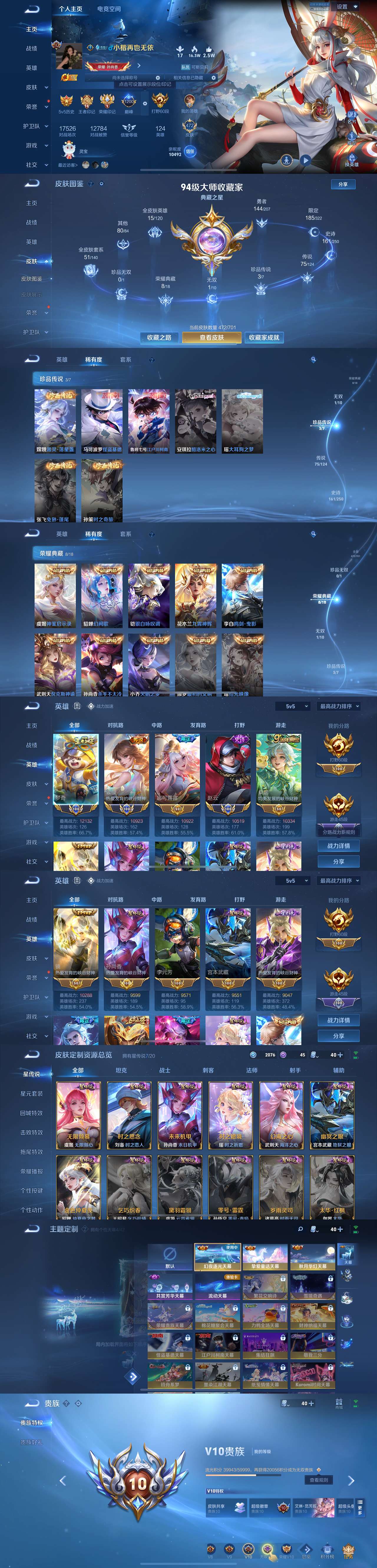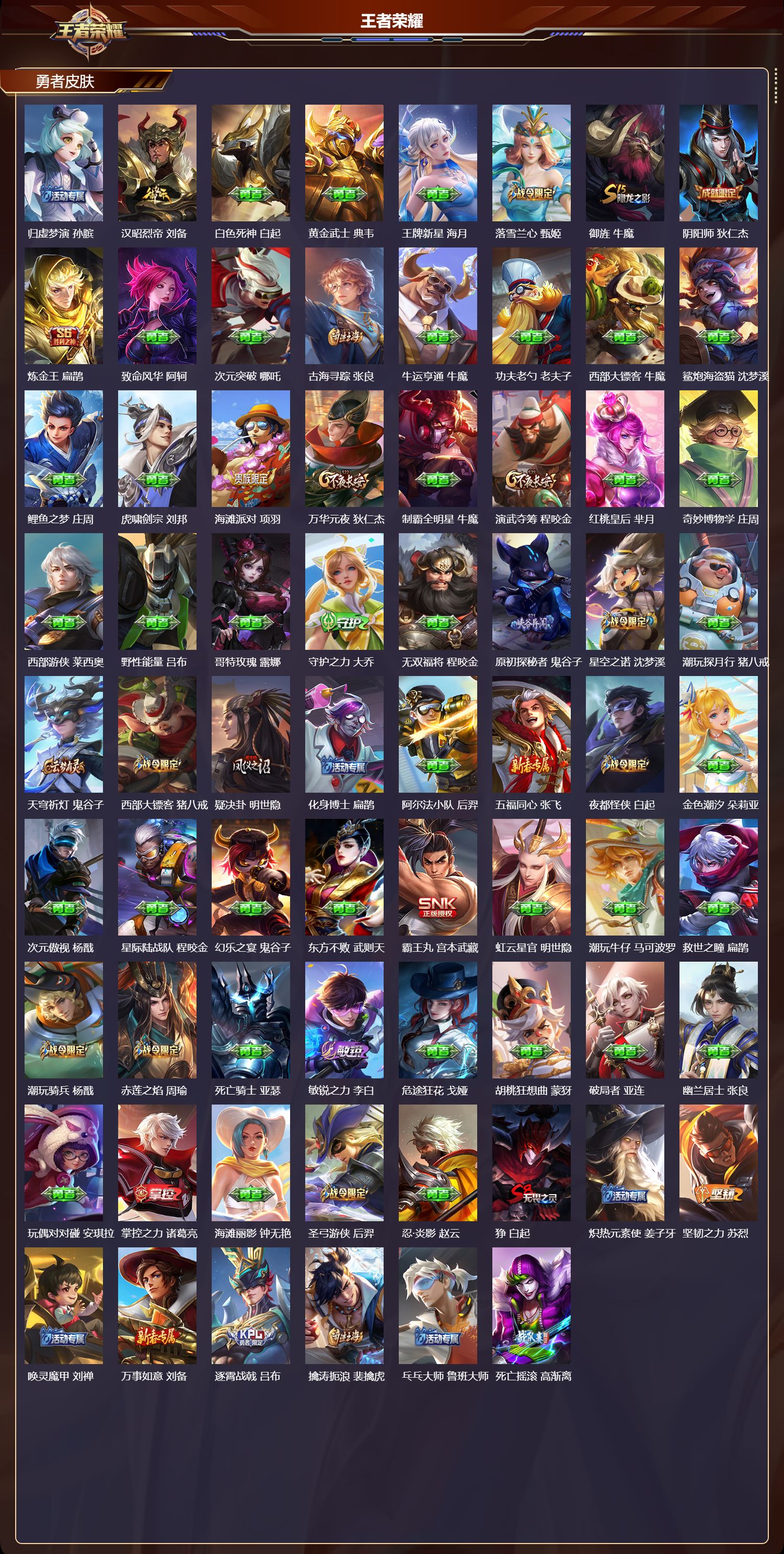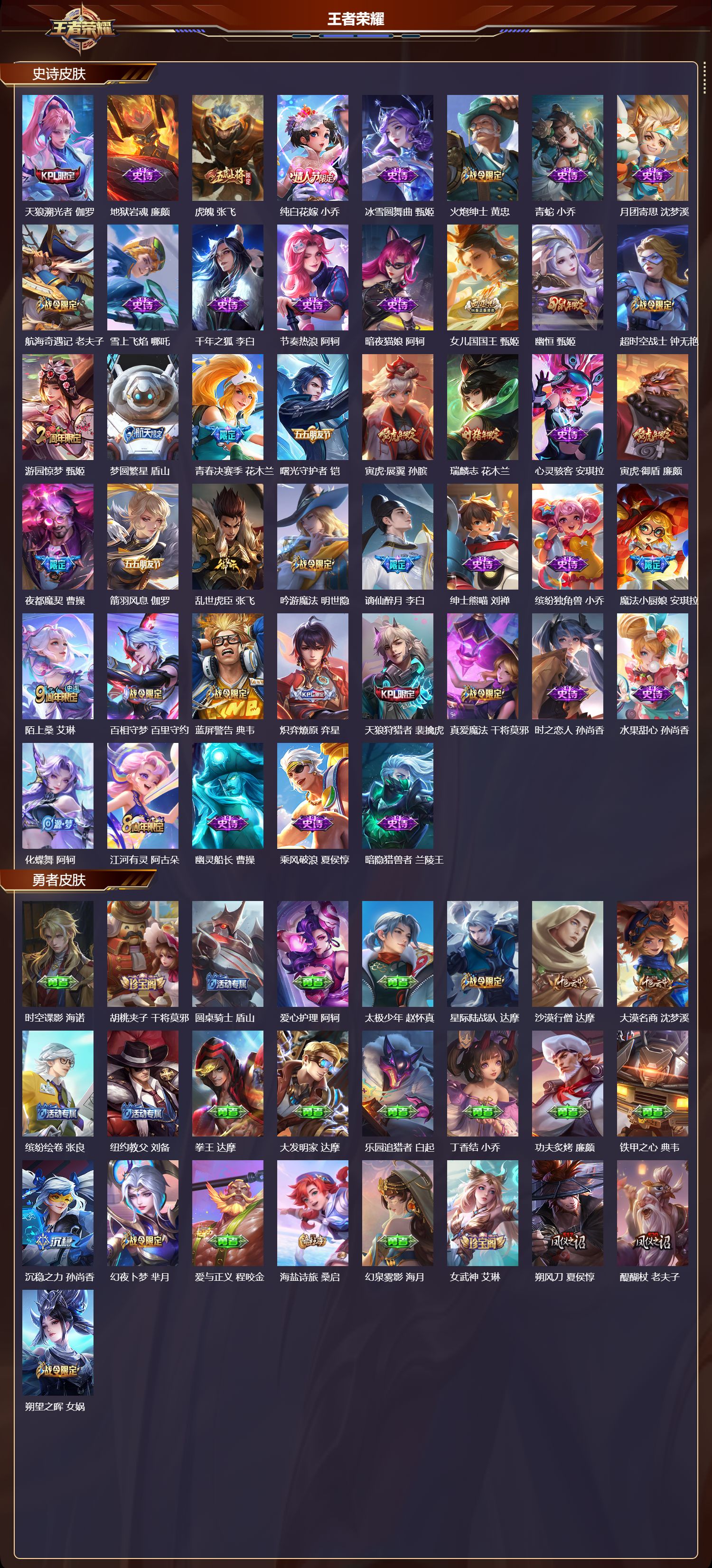 贵族等级:v8皮肤数:204荣耀典藏2 传说品质13 生肖限定5 情人节限定1 英雄数:120