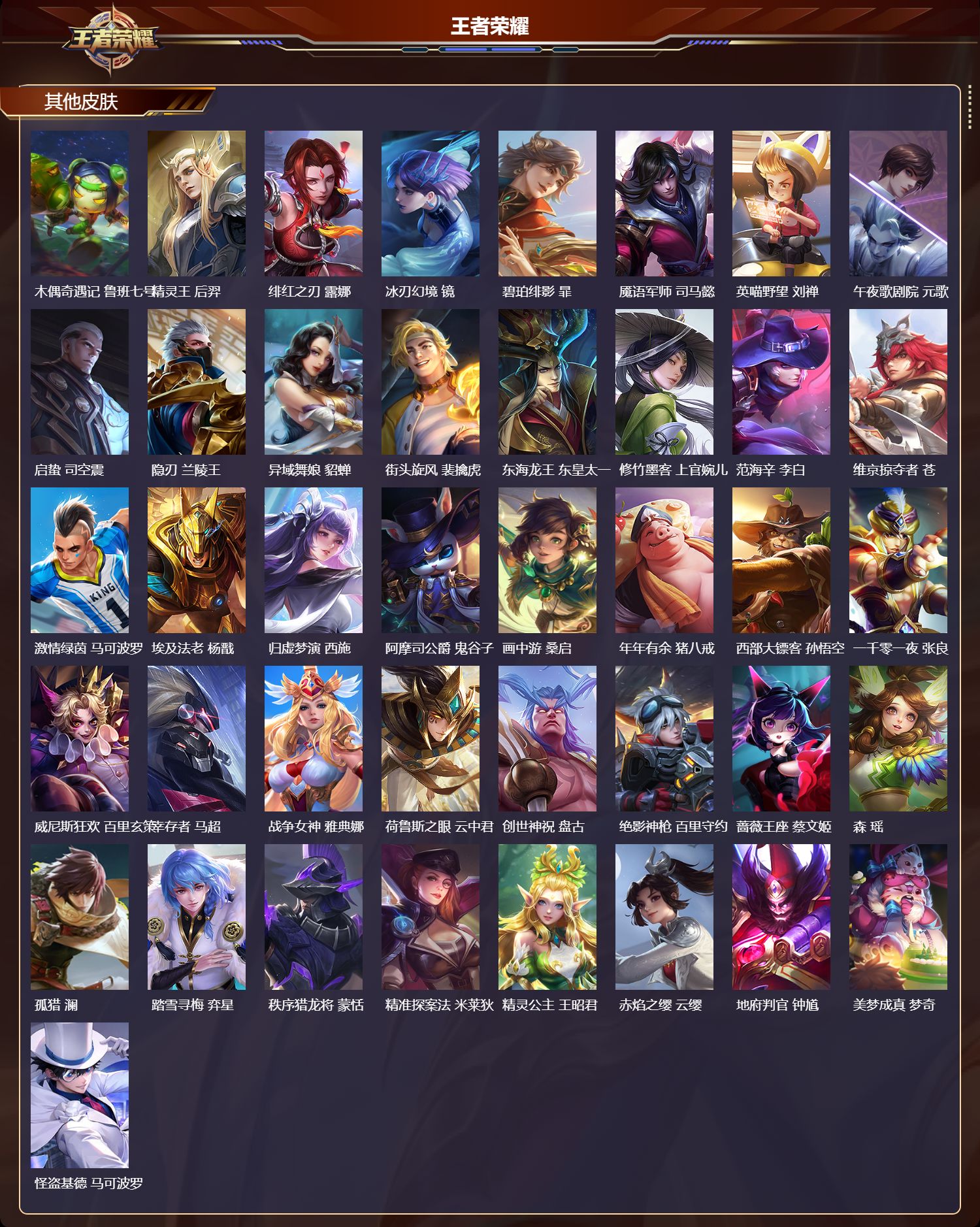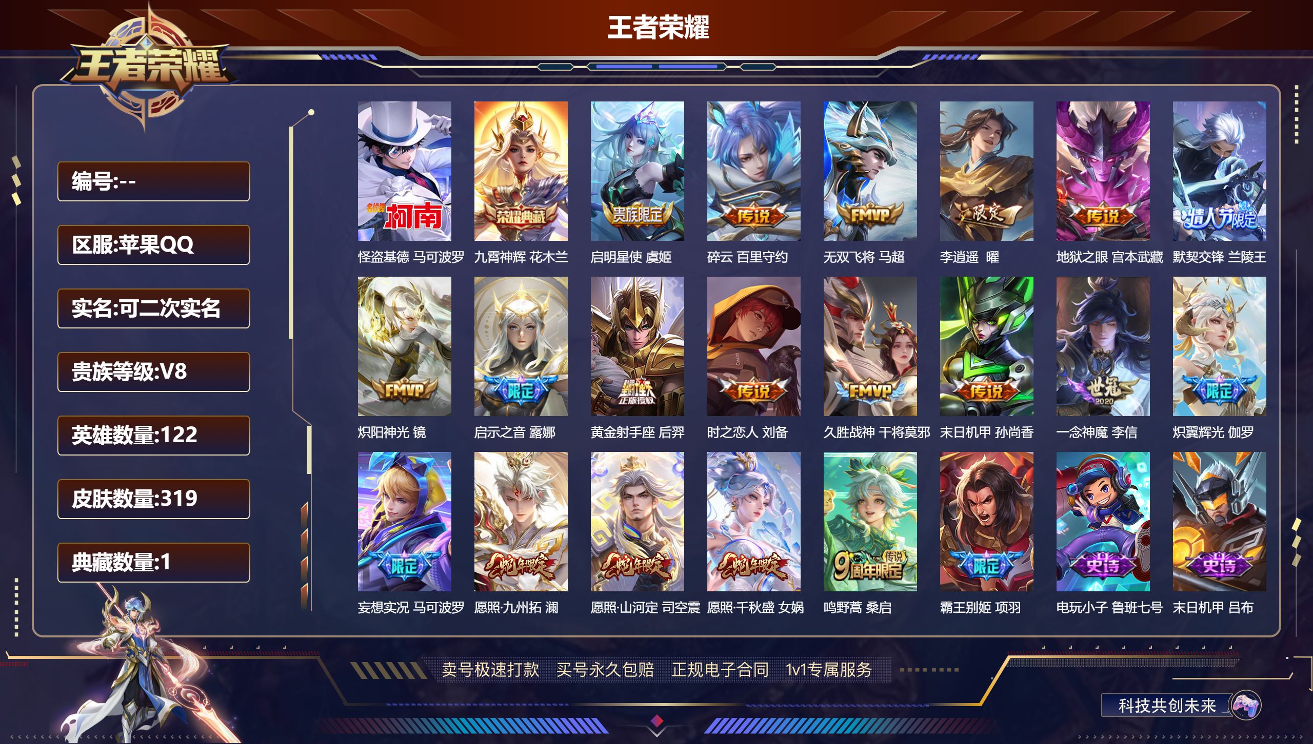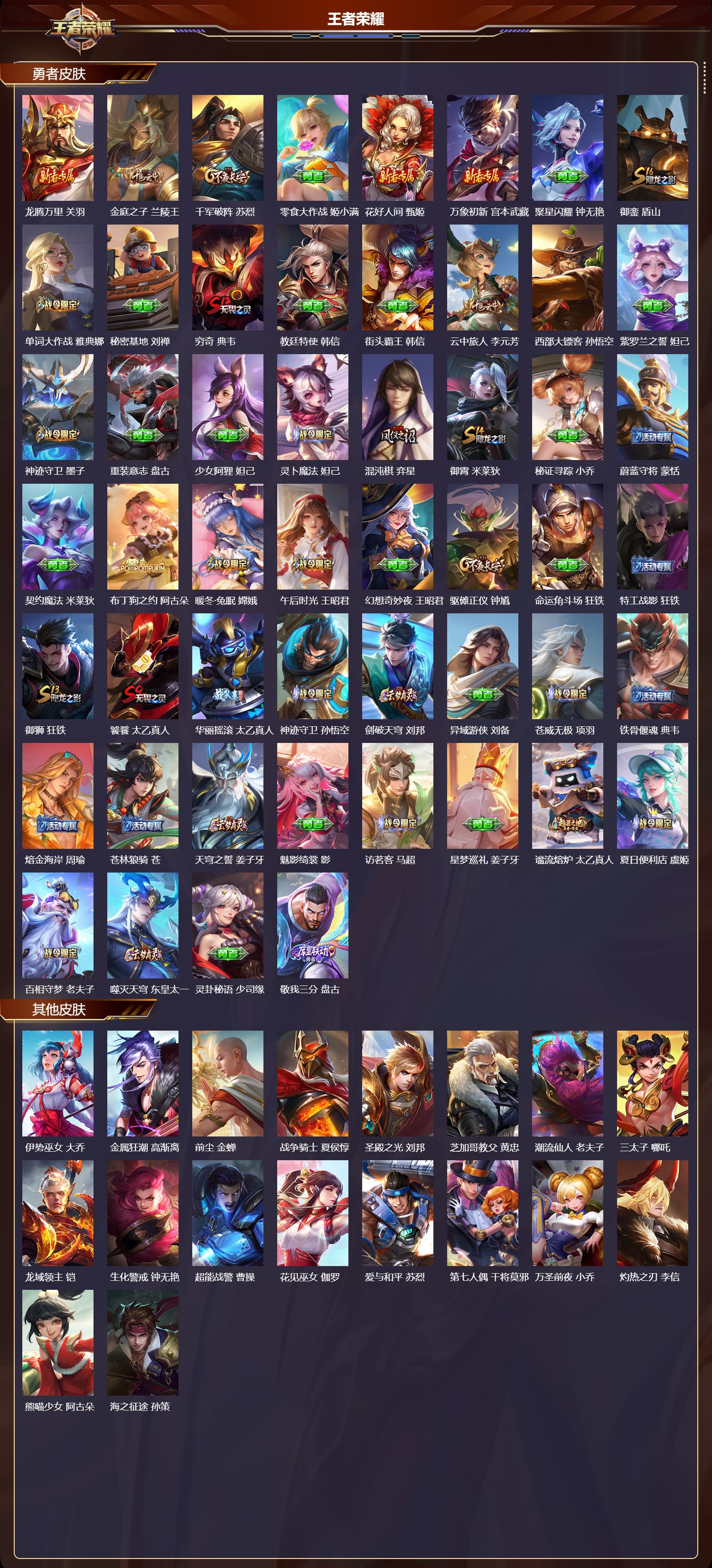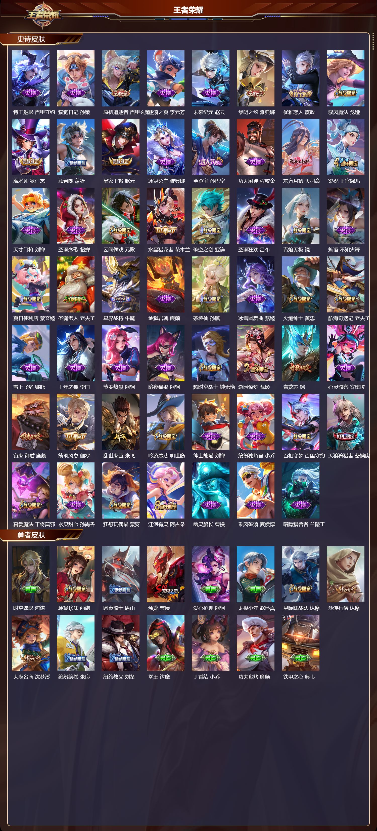 贵族等级:v8皮肤数:133传说品质10 生肖限定4 荣耀典藏1 情人节限定1 英雄数:108