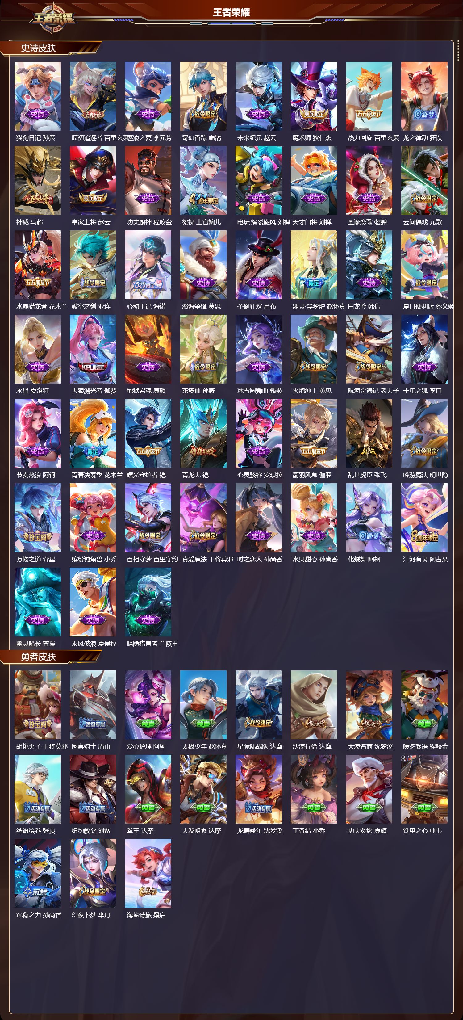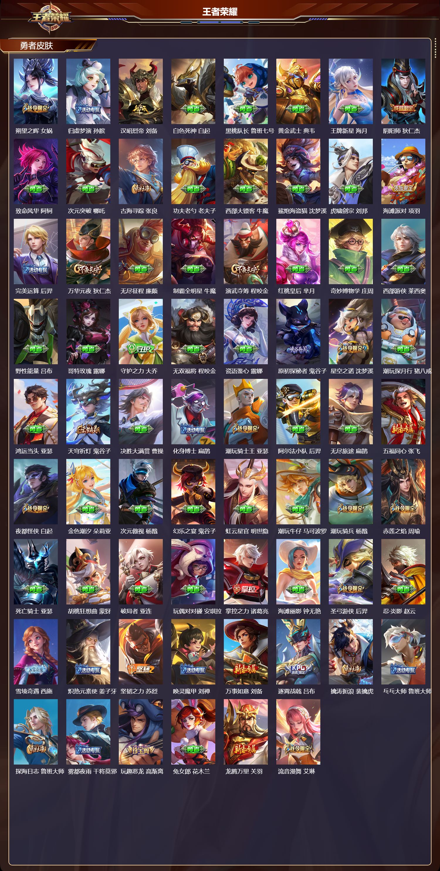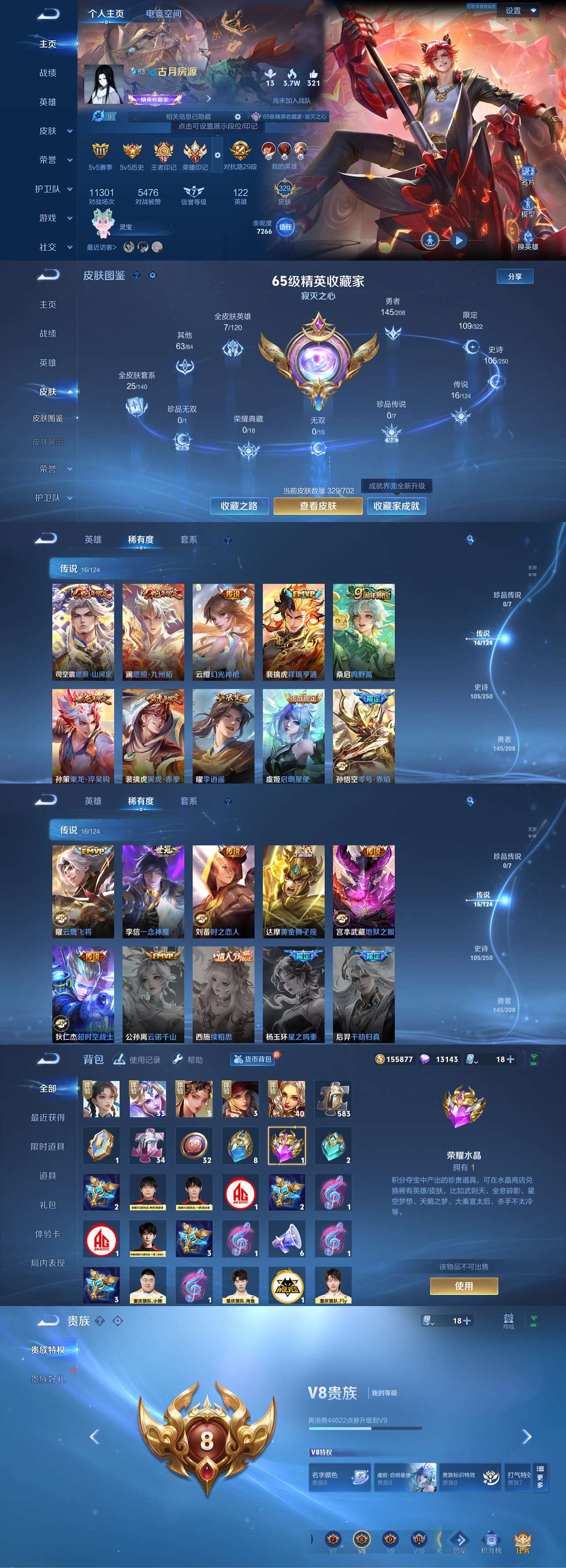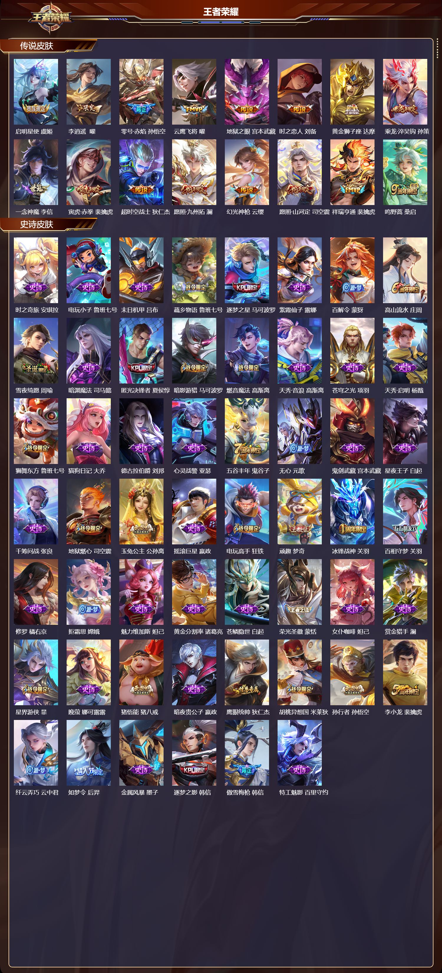 贵族等级:v7皮肤数:143传说品质12 生肖限定3 情人节限定1 无双1 英雄数:120