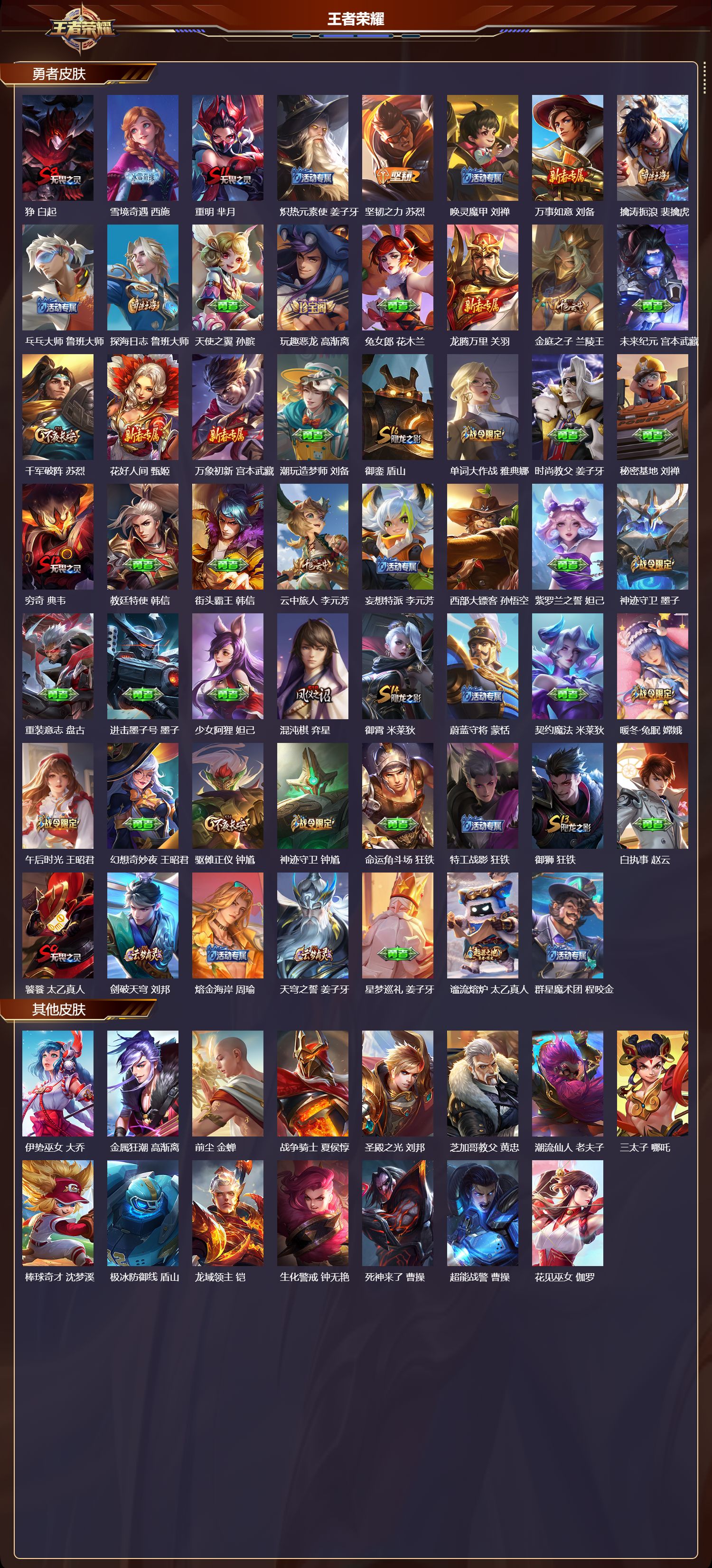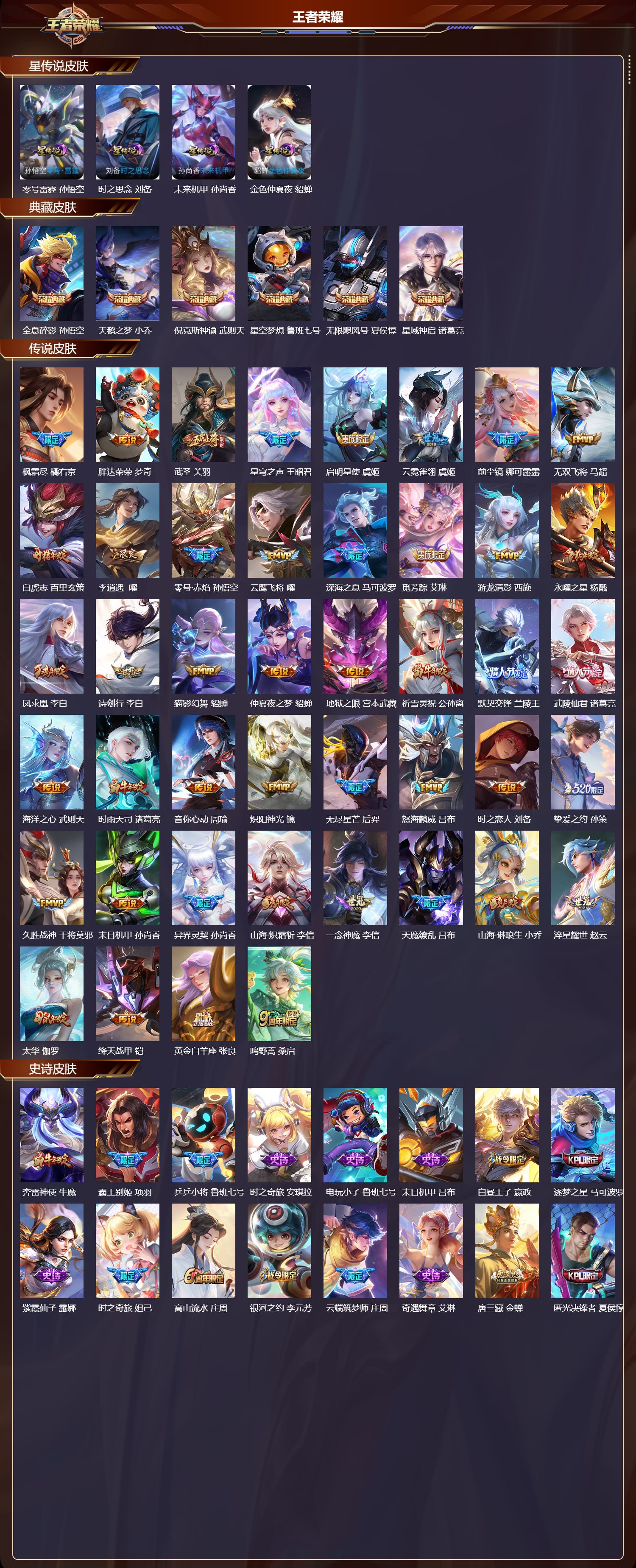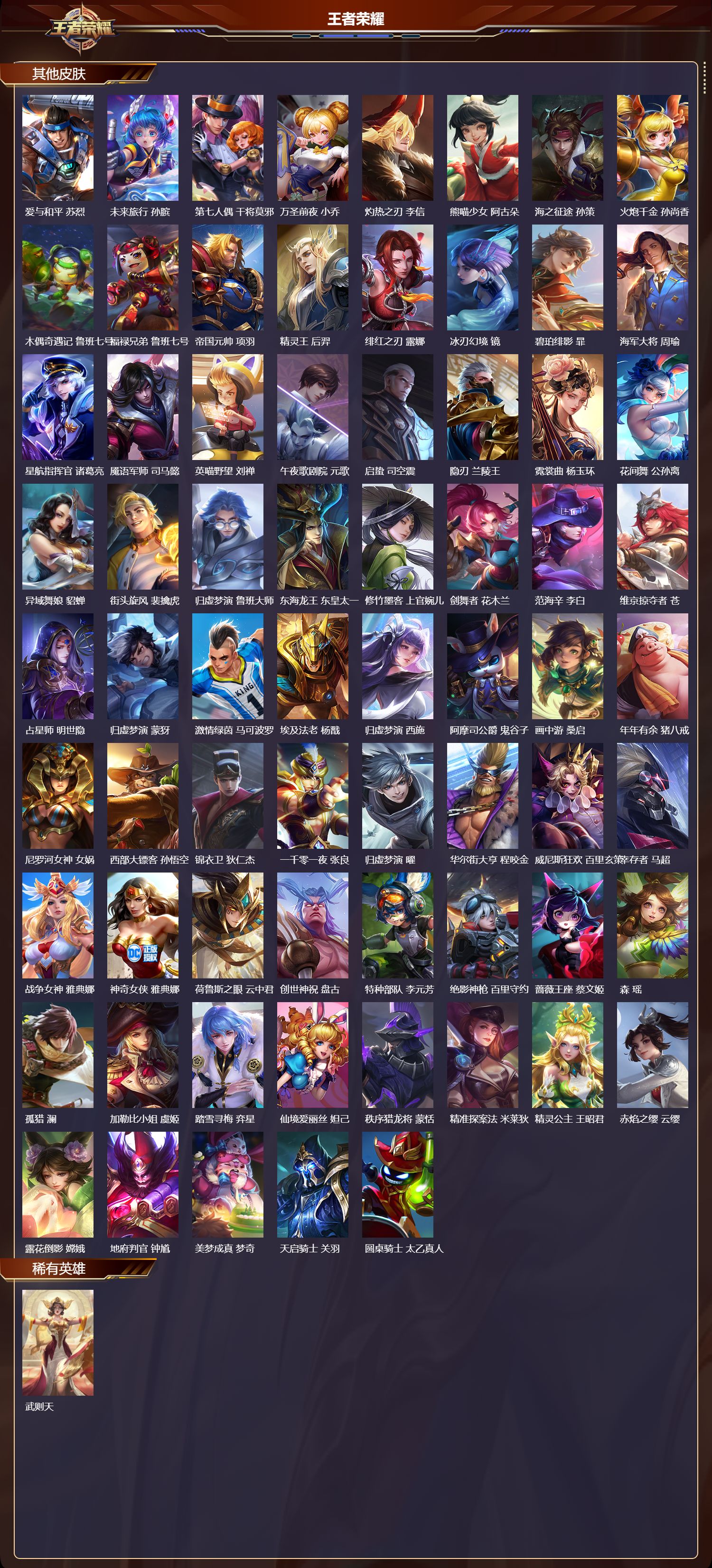 贵族等级:v9皮肤数:314传说品质22 生肖限定7 情人节限定1 荣耀典藏3 英雄数:122