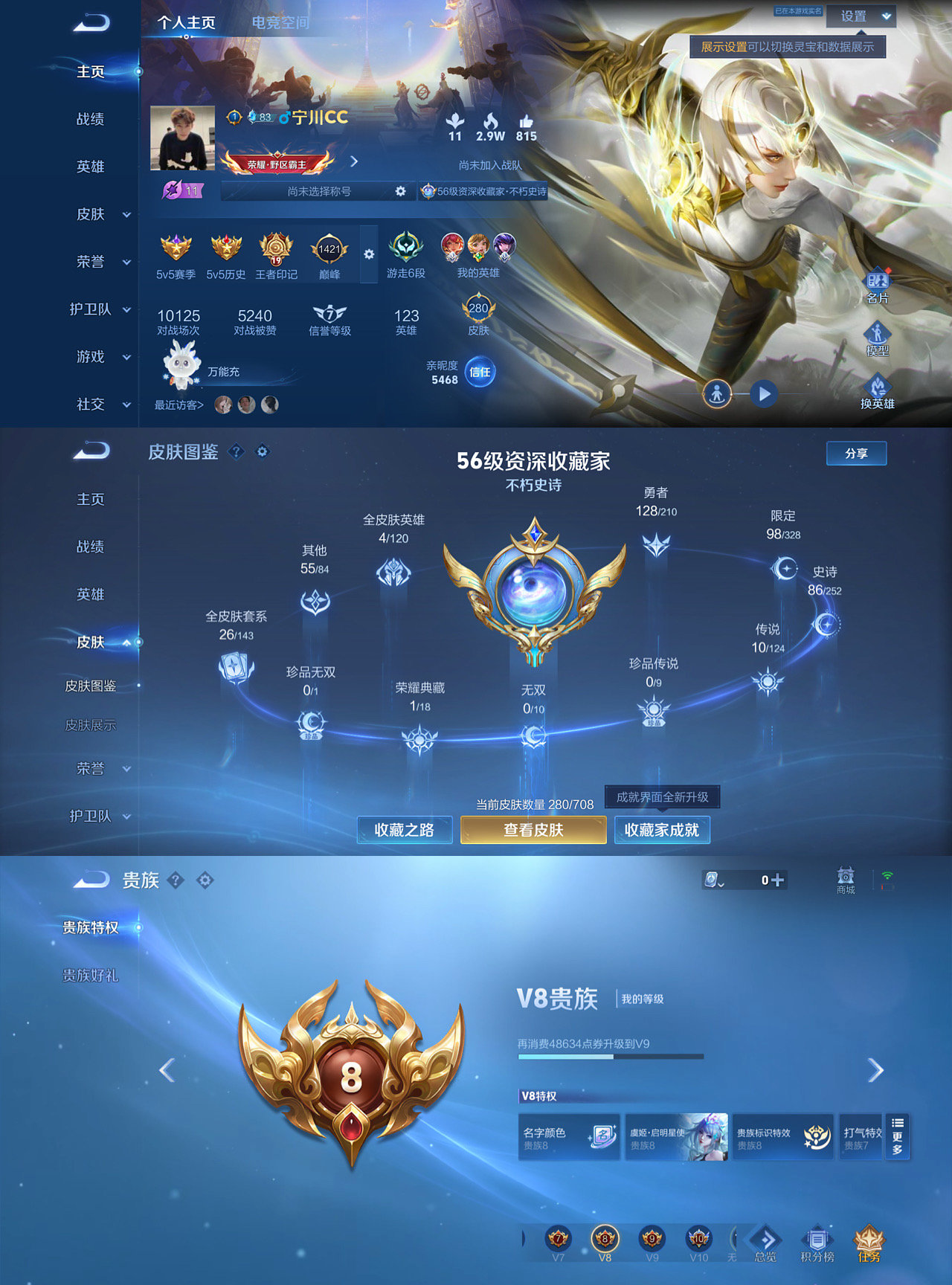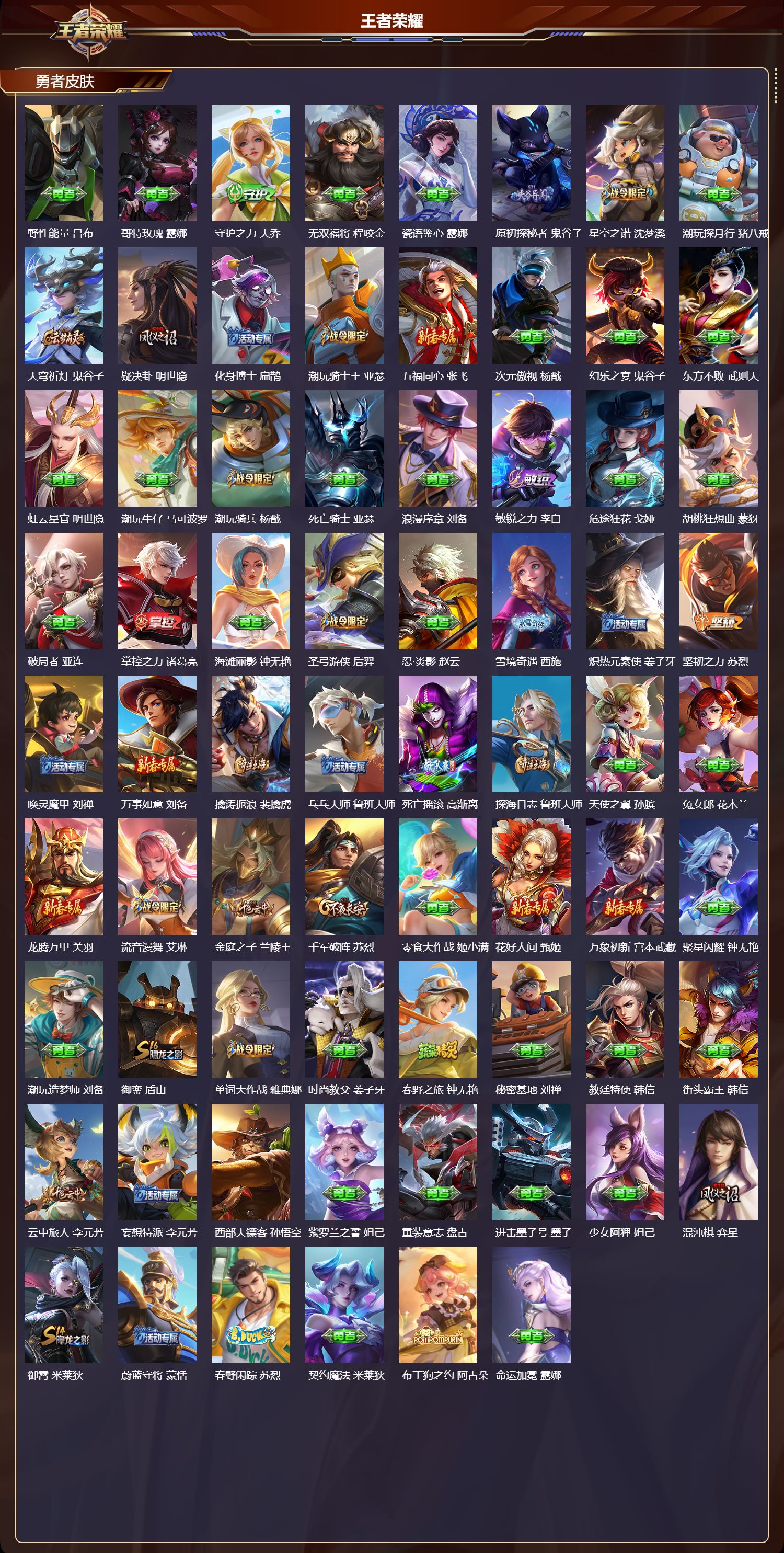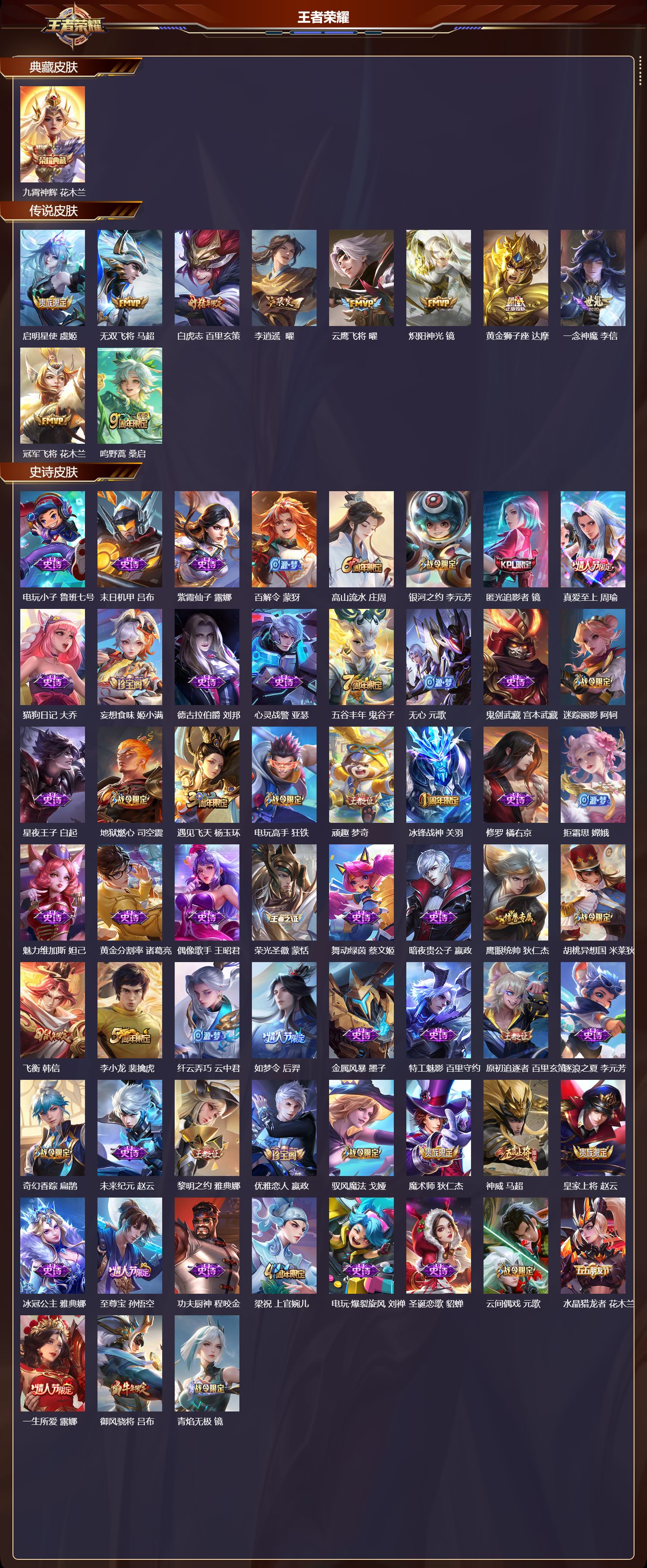 贵族等级:v6皮肤数:117生肖限定2 传说品质4 荣耀典藏1 英雄数:110