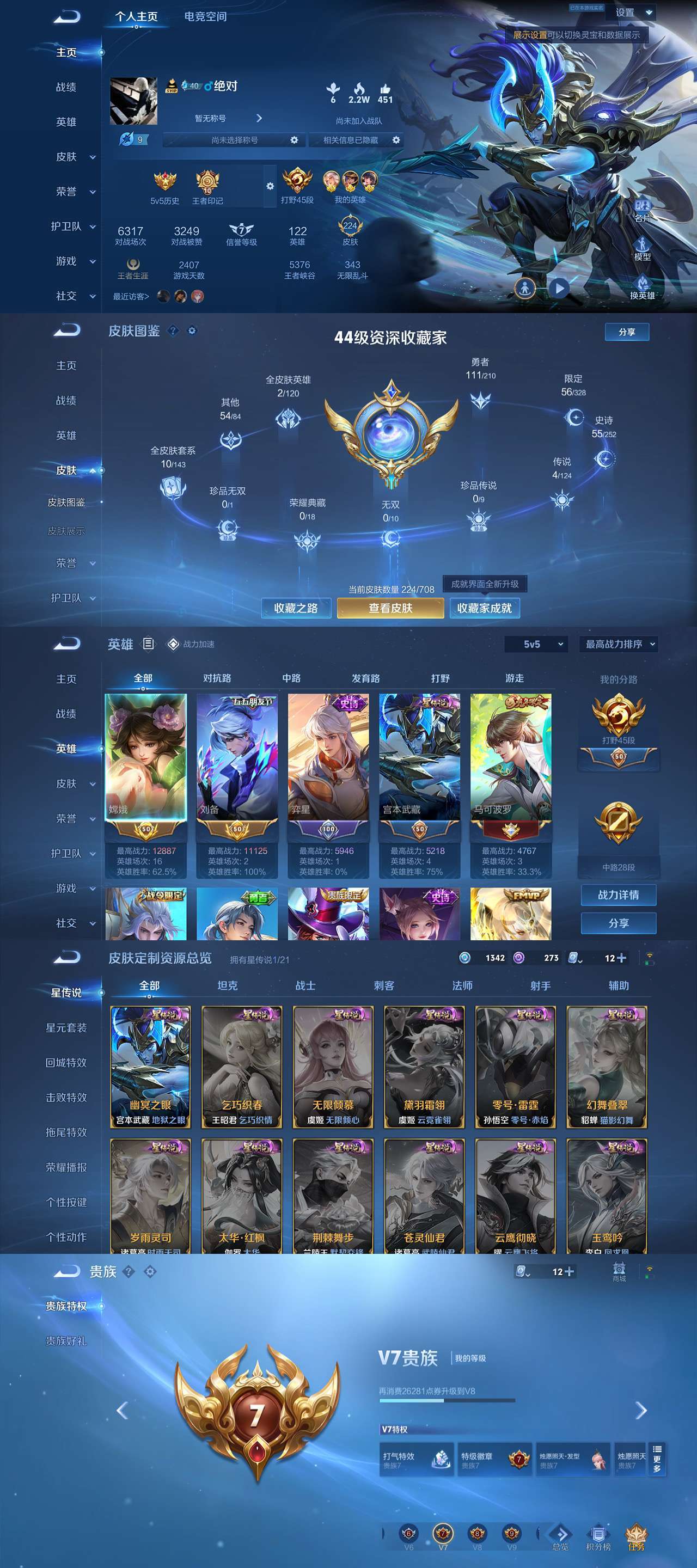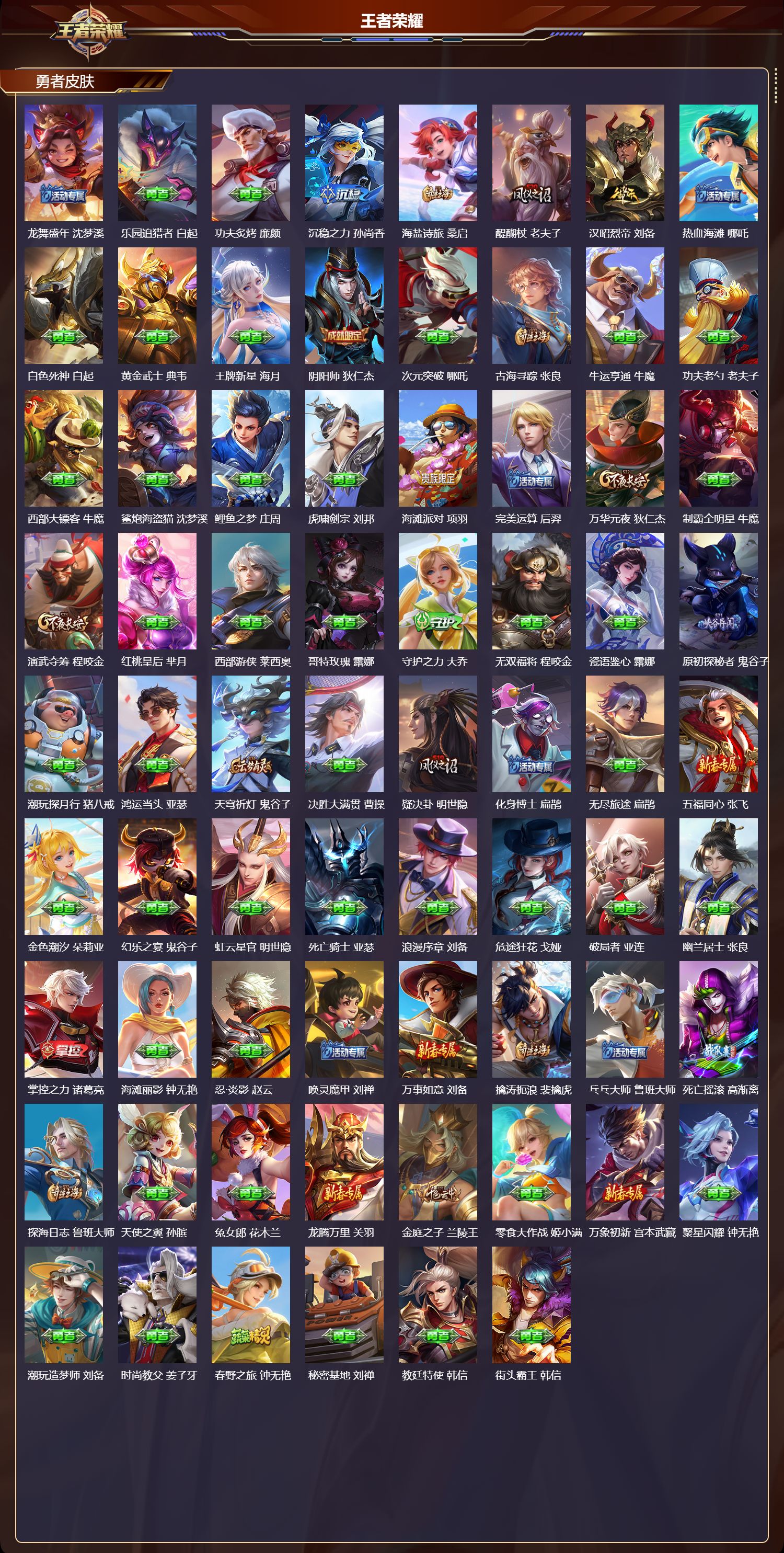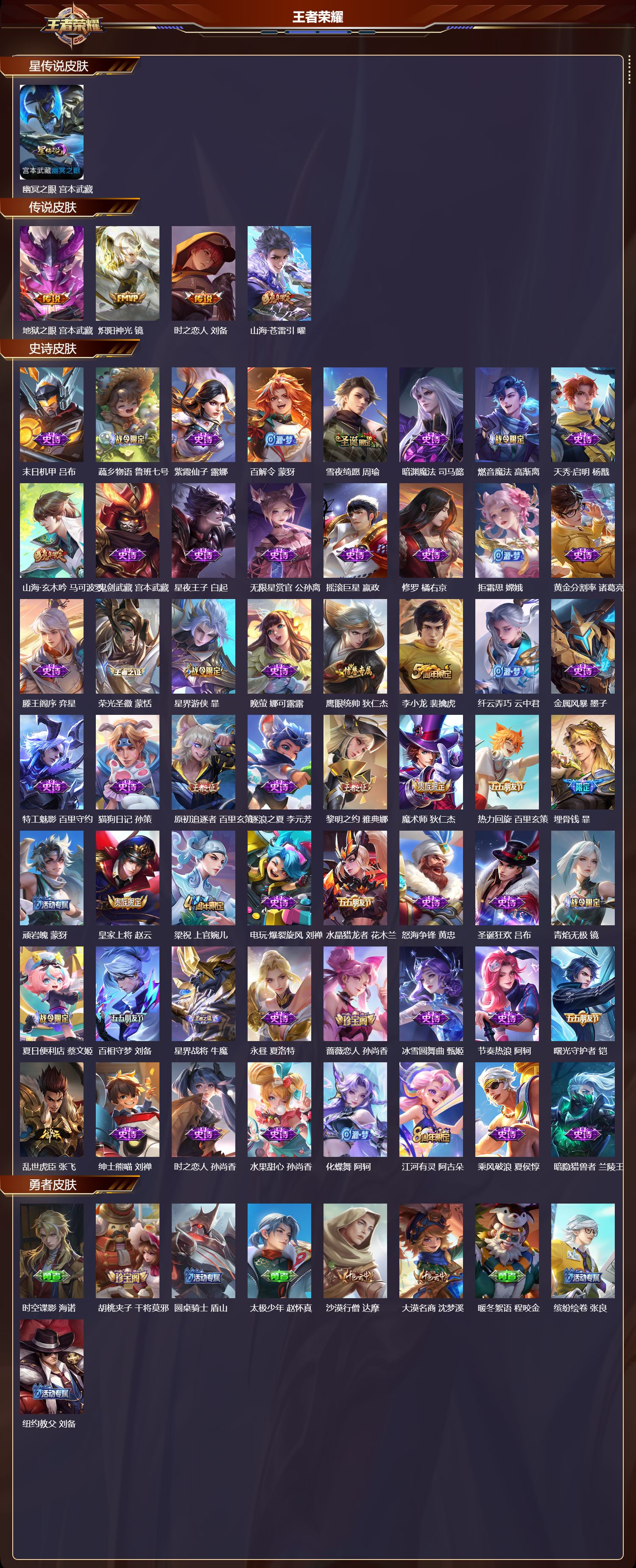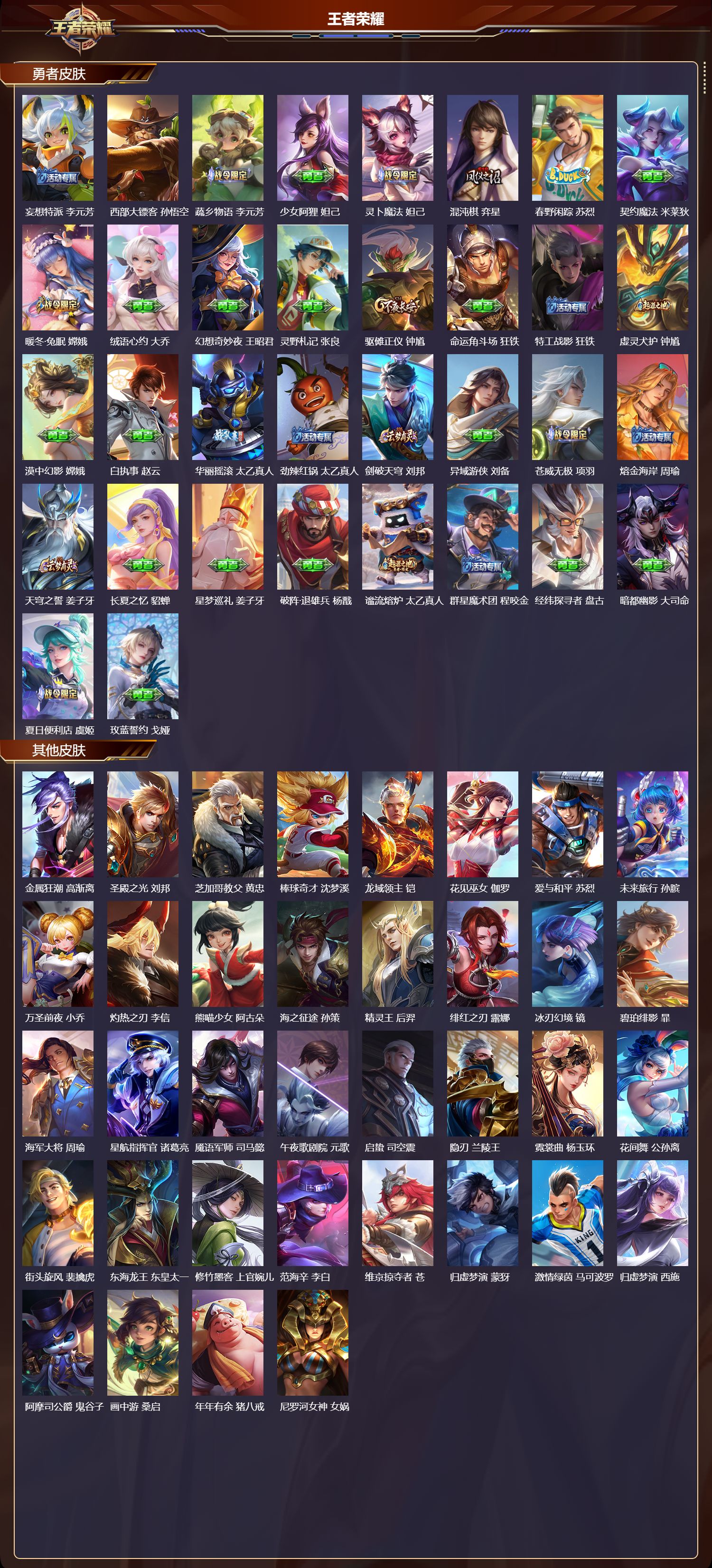 贵族等级:v6皮肤数:72传说品质6 生肖限定2 英雄数:75