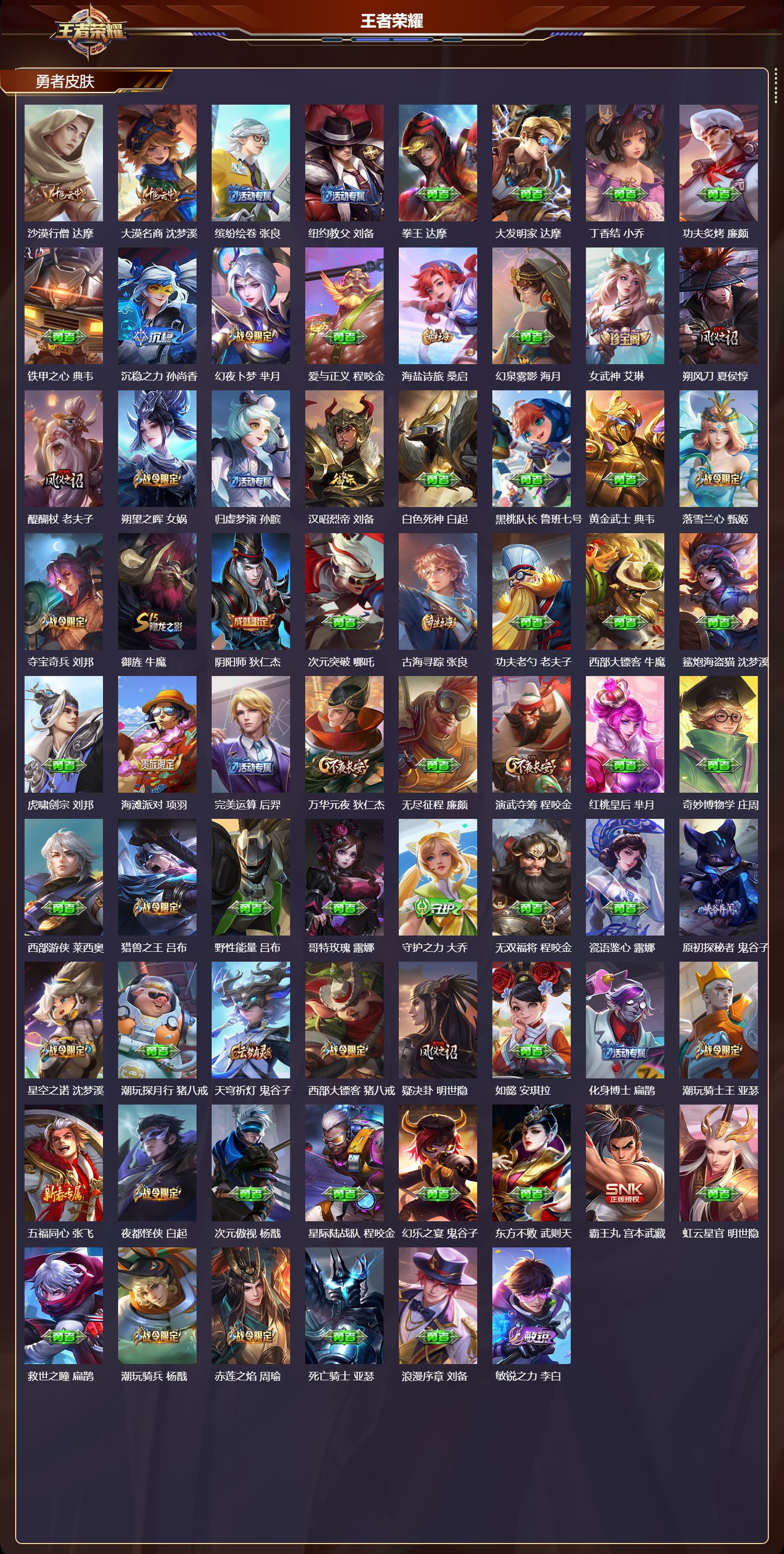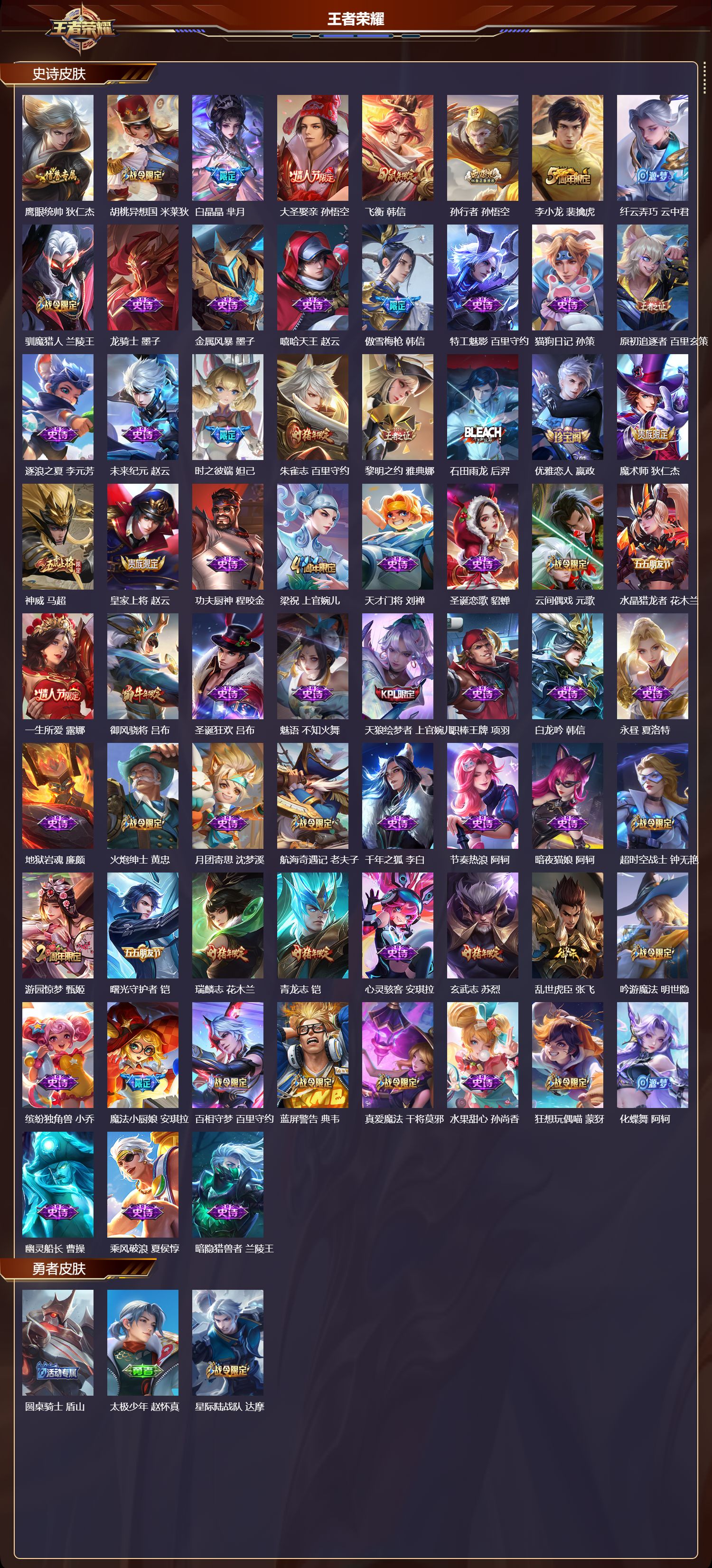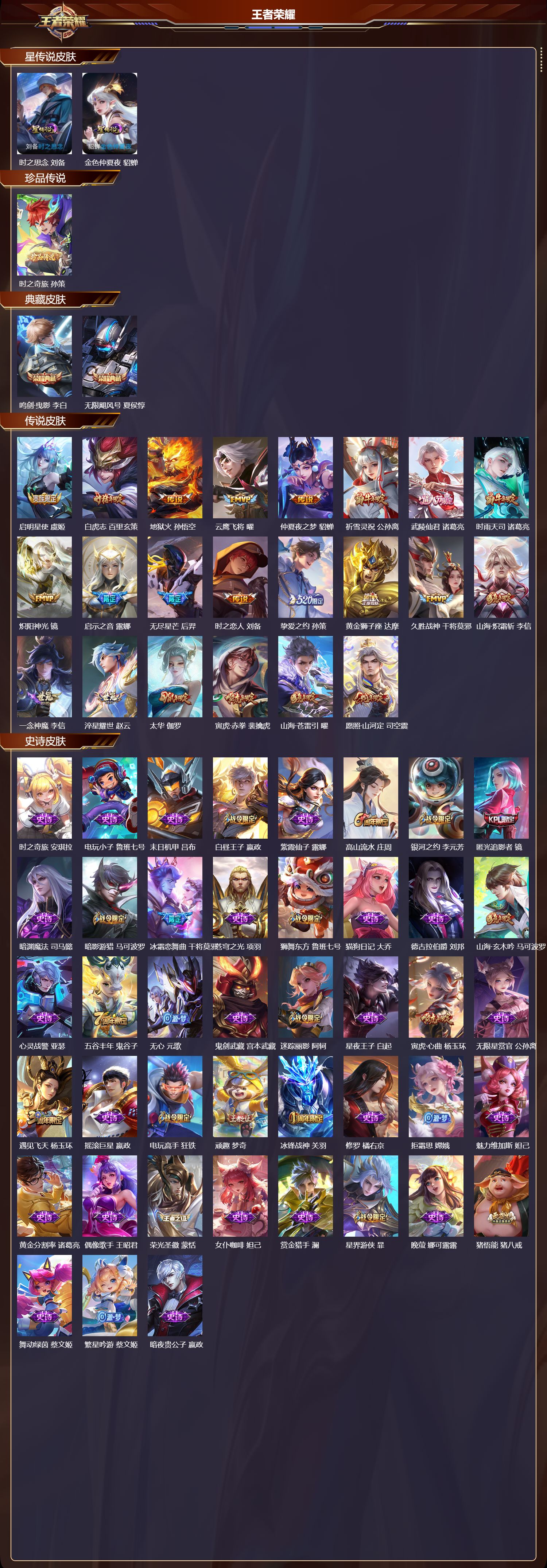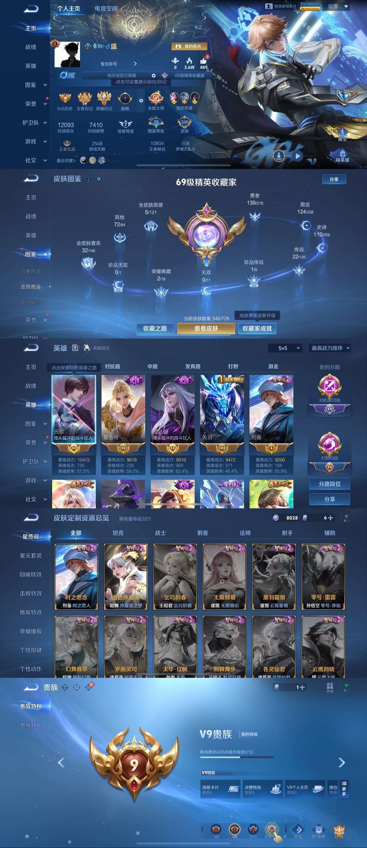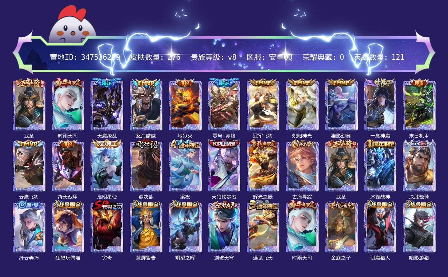 贵族等级:v8皮肤数:276生肖限定2 传说品质14 情人节限定1 英雄数:121