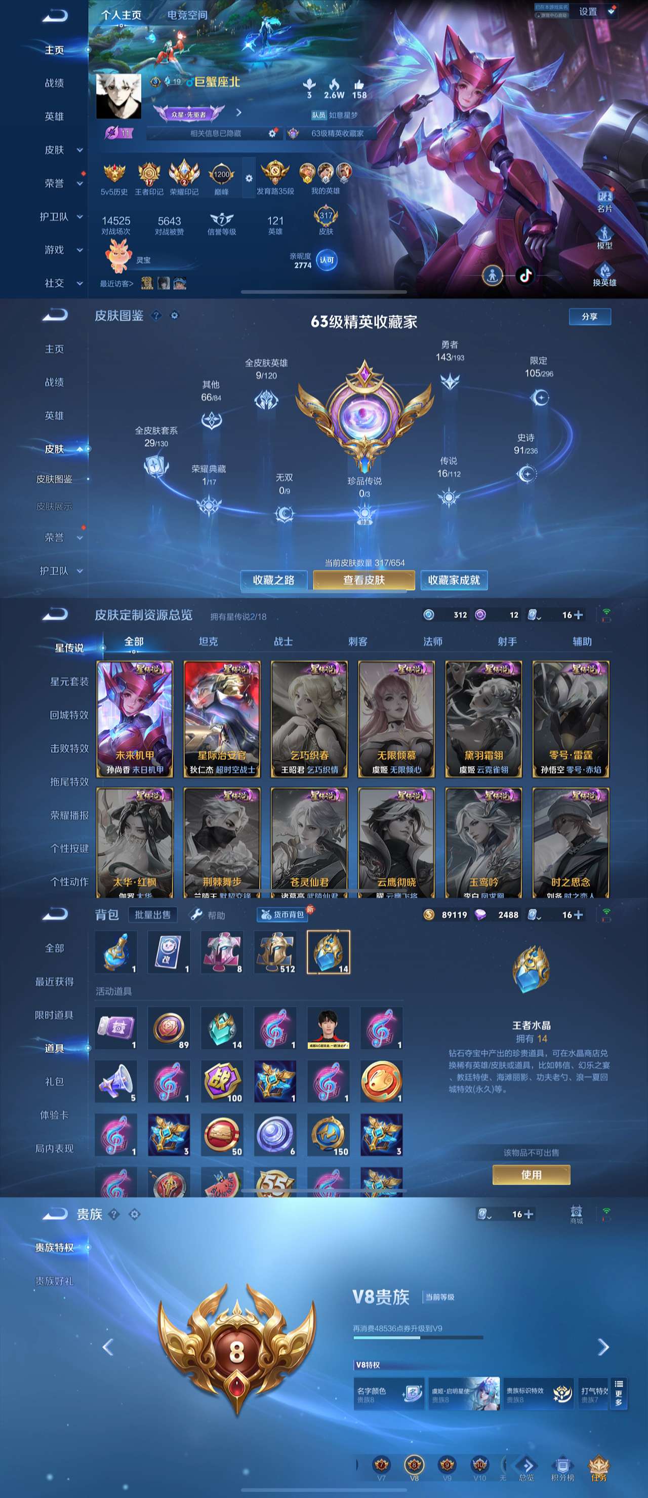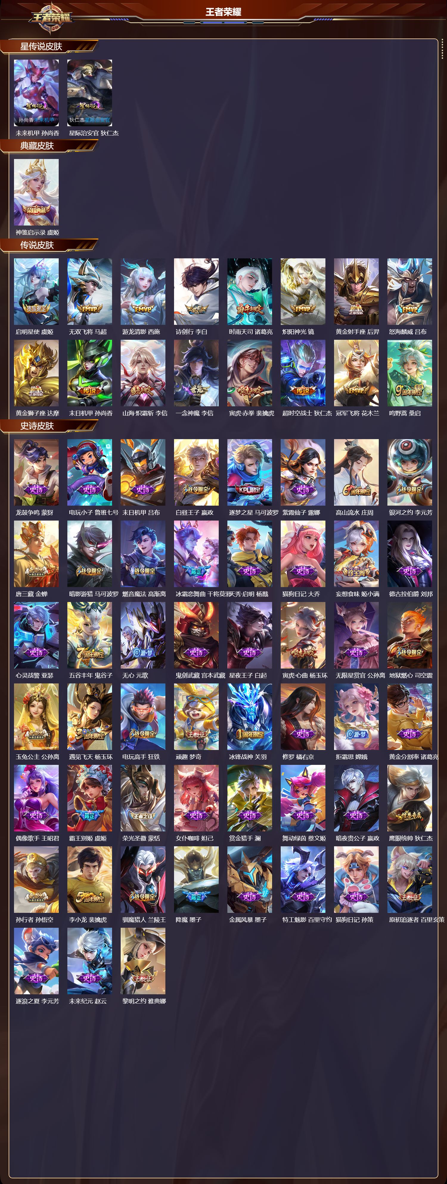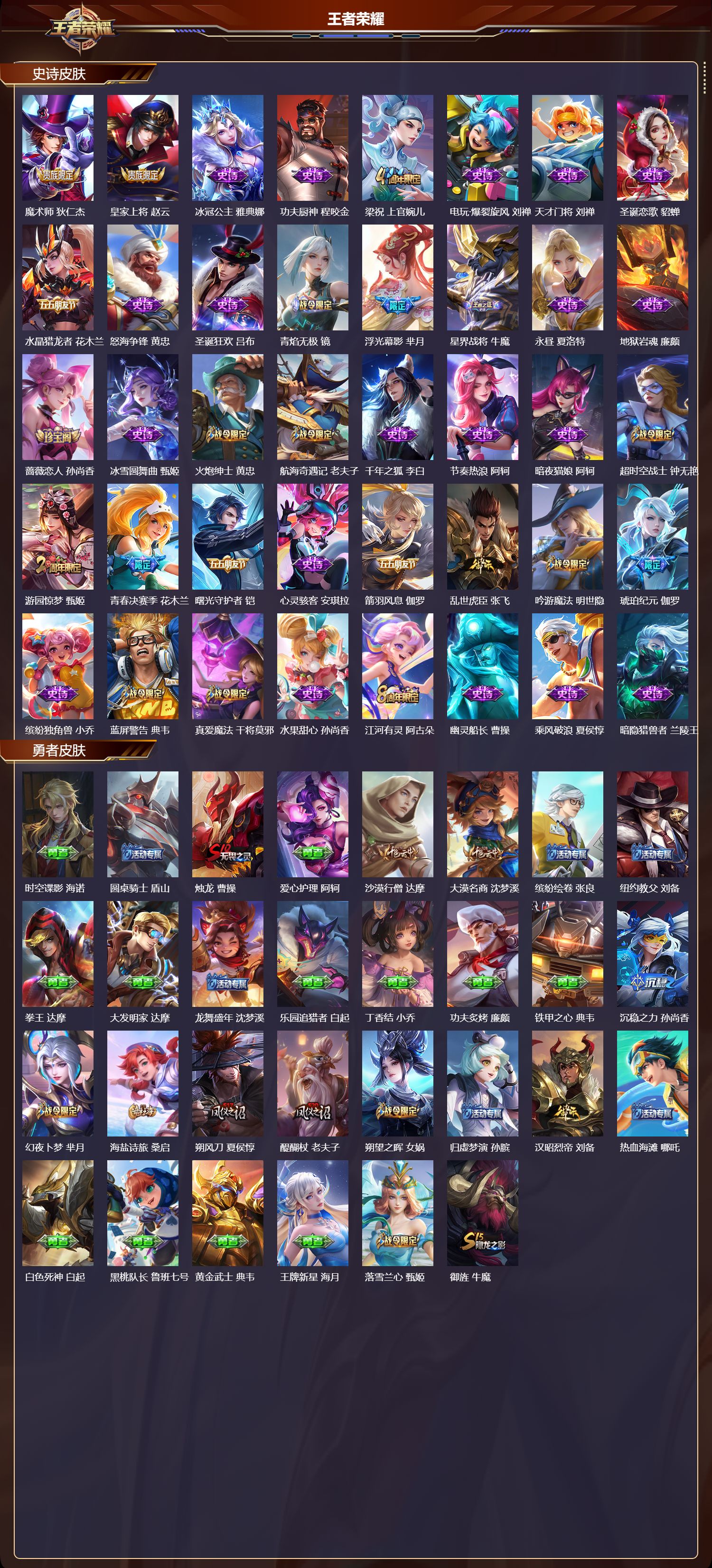 贵族等级:v8皮肤数:339传说品质13 生肖限定4 荣耀典藏1 英雄数:122