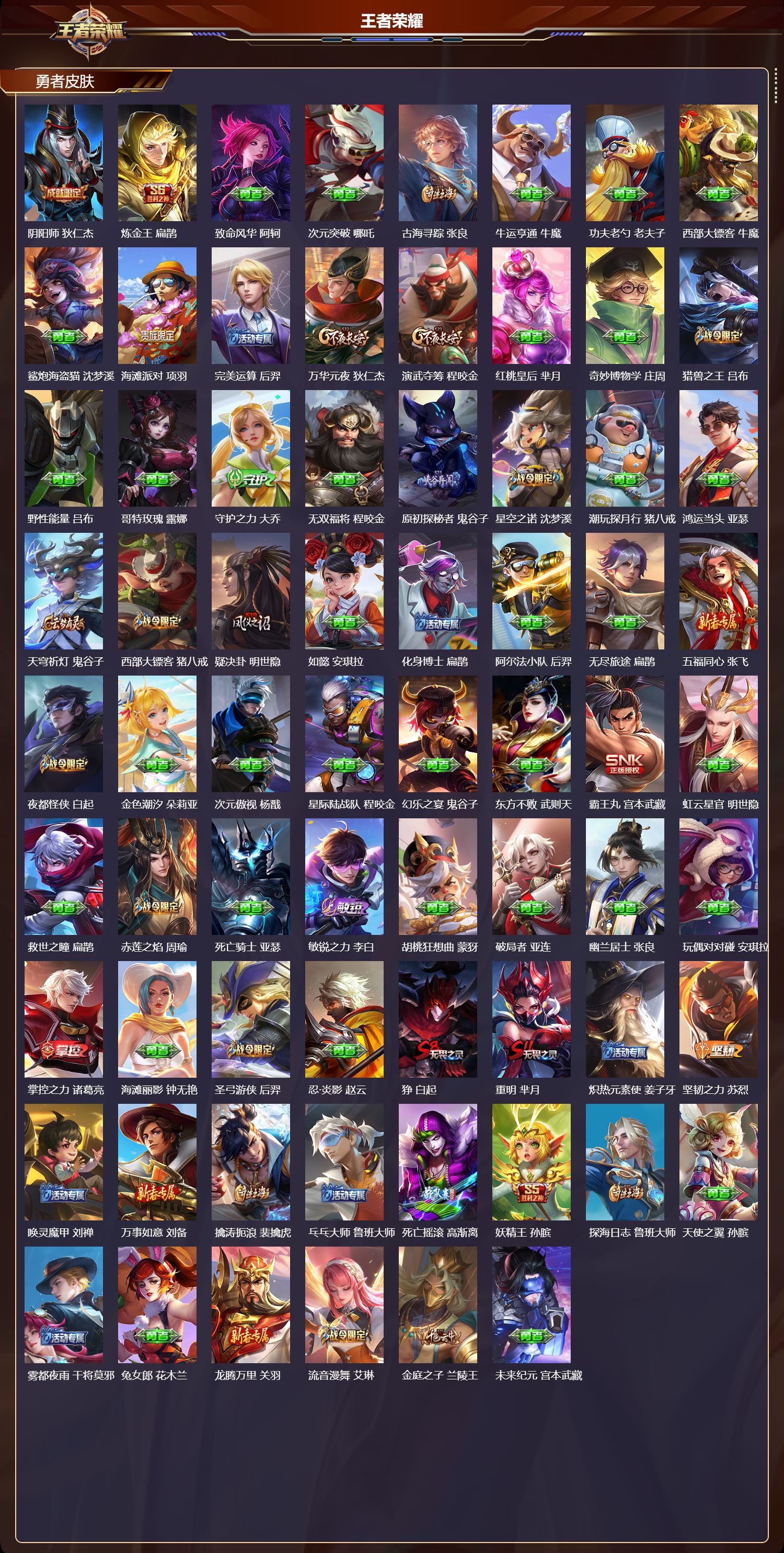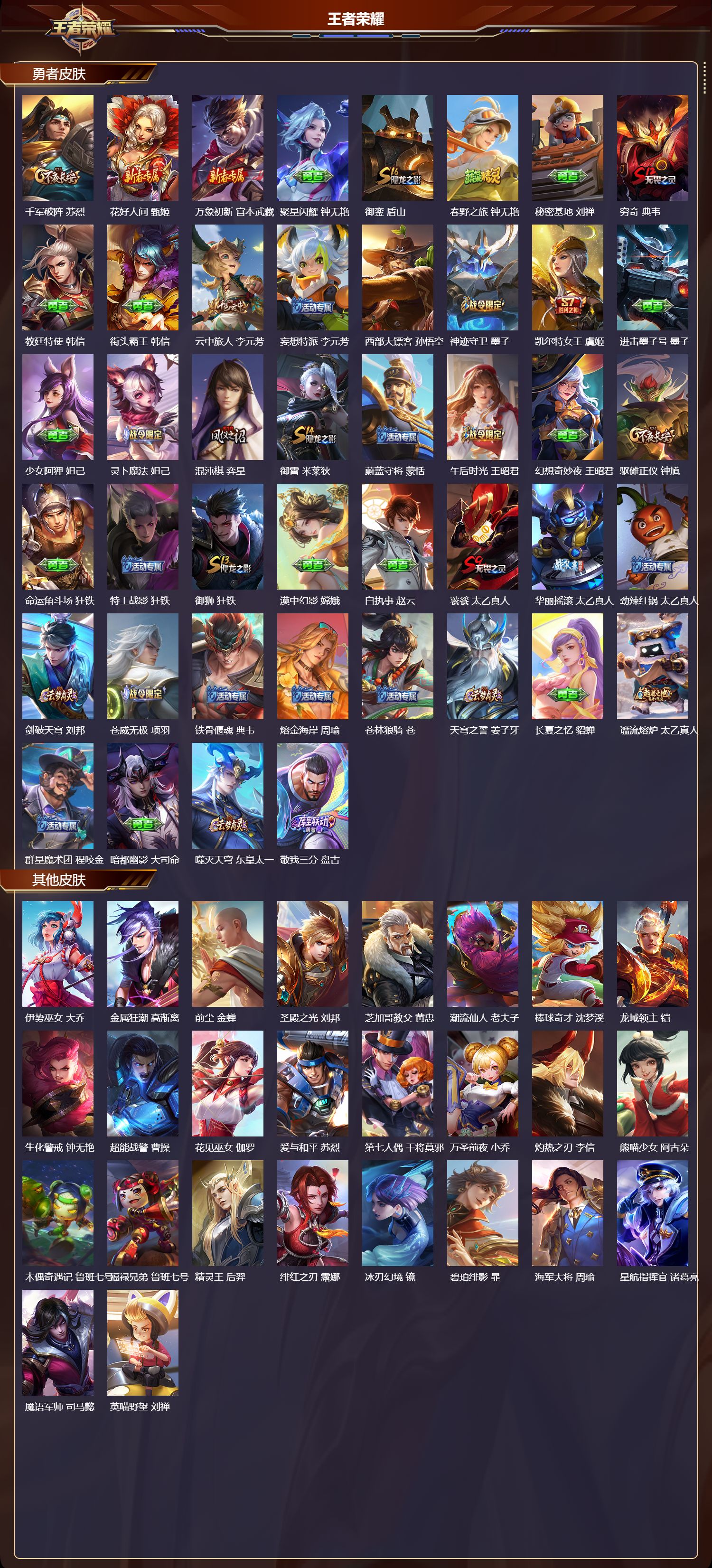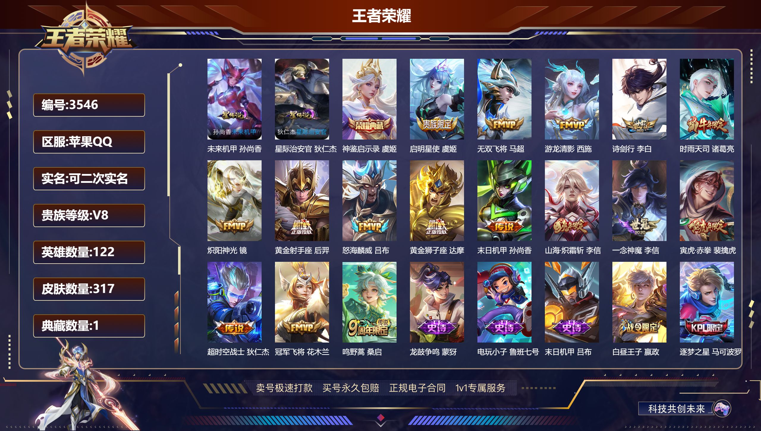 贵族等级:v8皮肤数:339传说品质13 生肖限定4 荣耀典藏1 英雄数:122