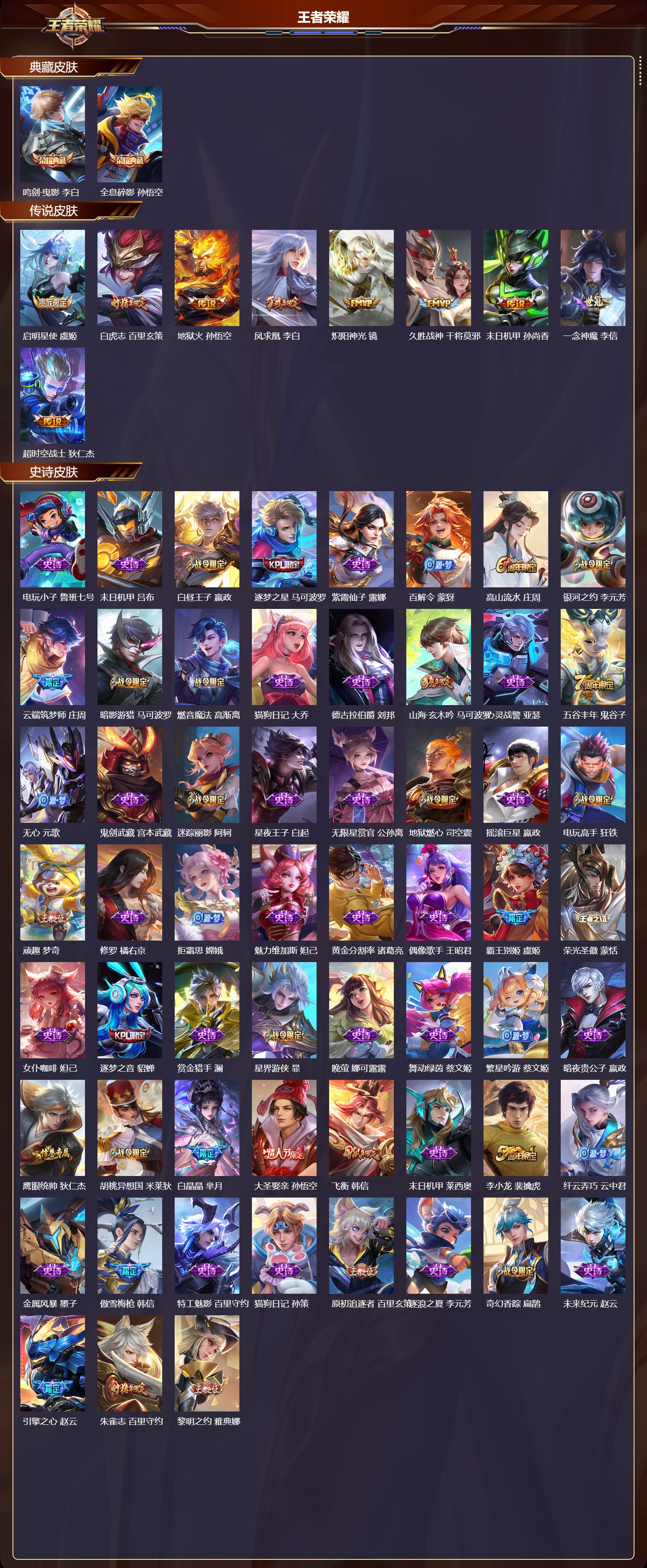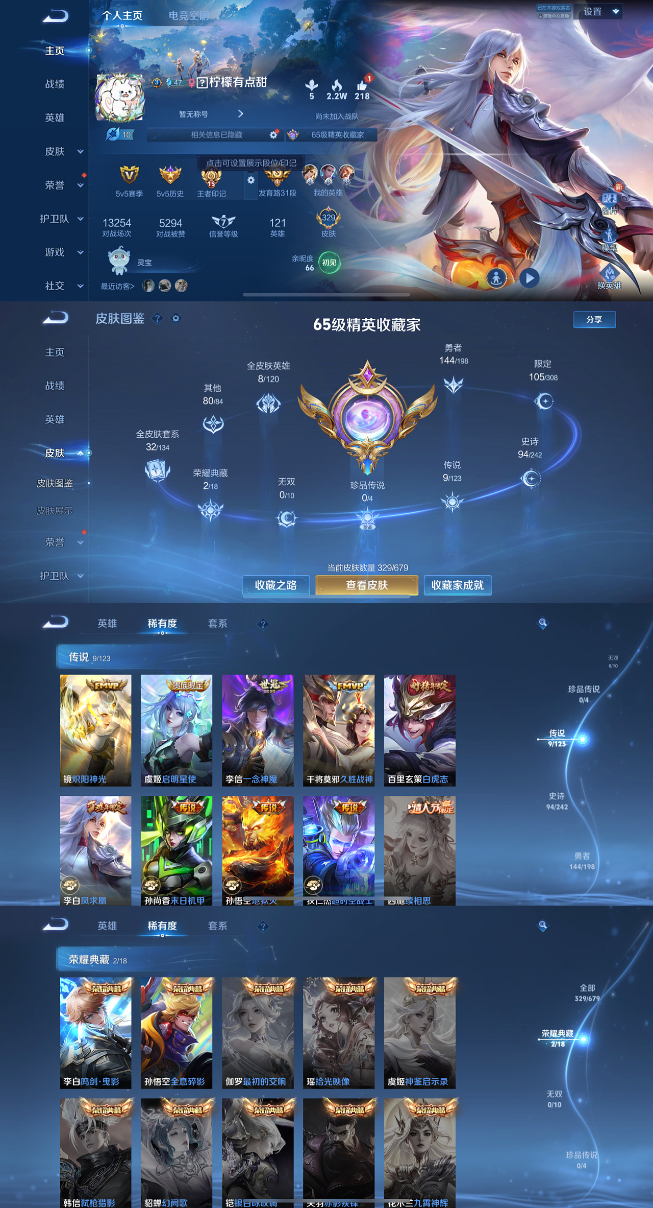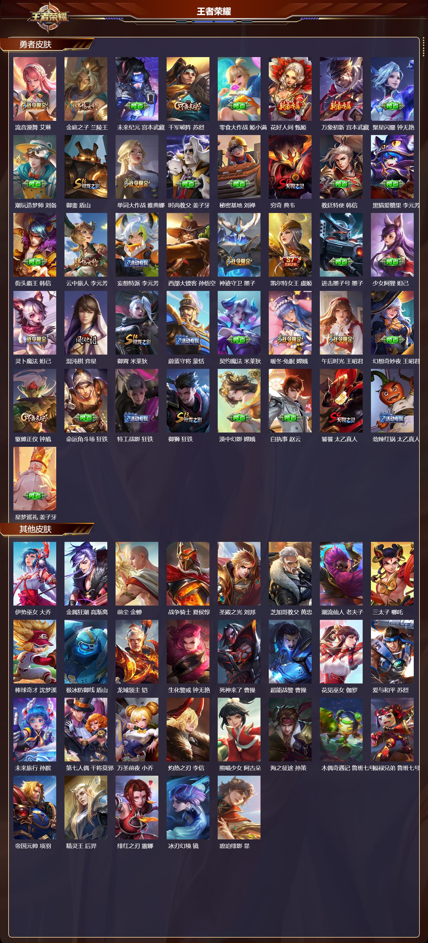 贵族等级:v7皮肤数:211传说品质6 情人节限定1 生肖限定1 英雄数:120