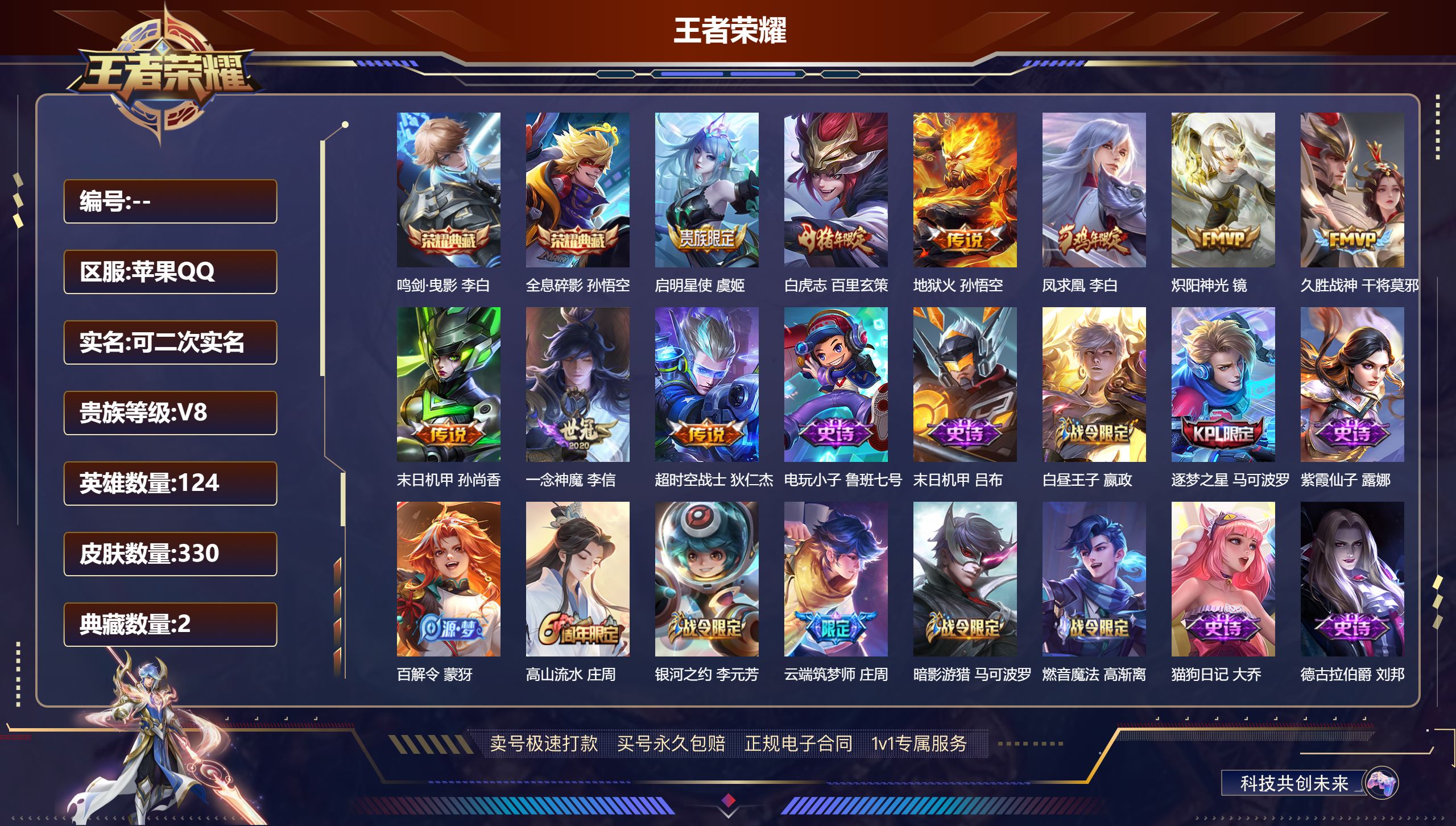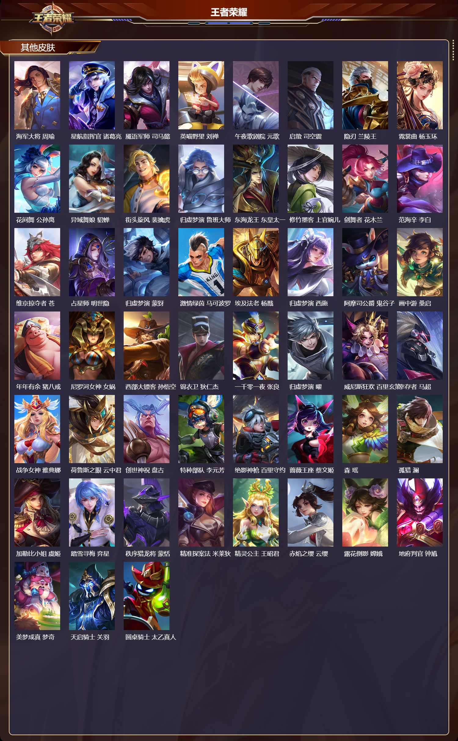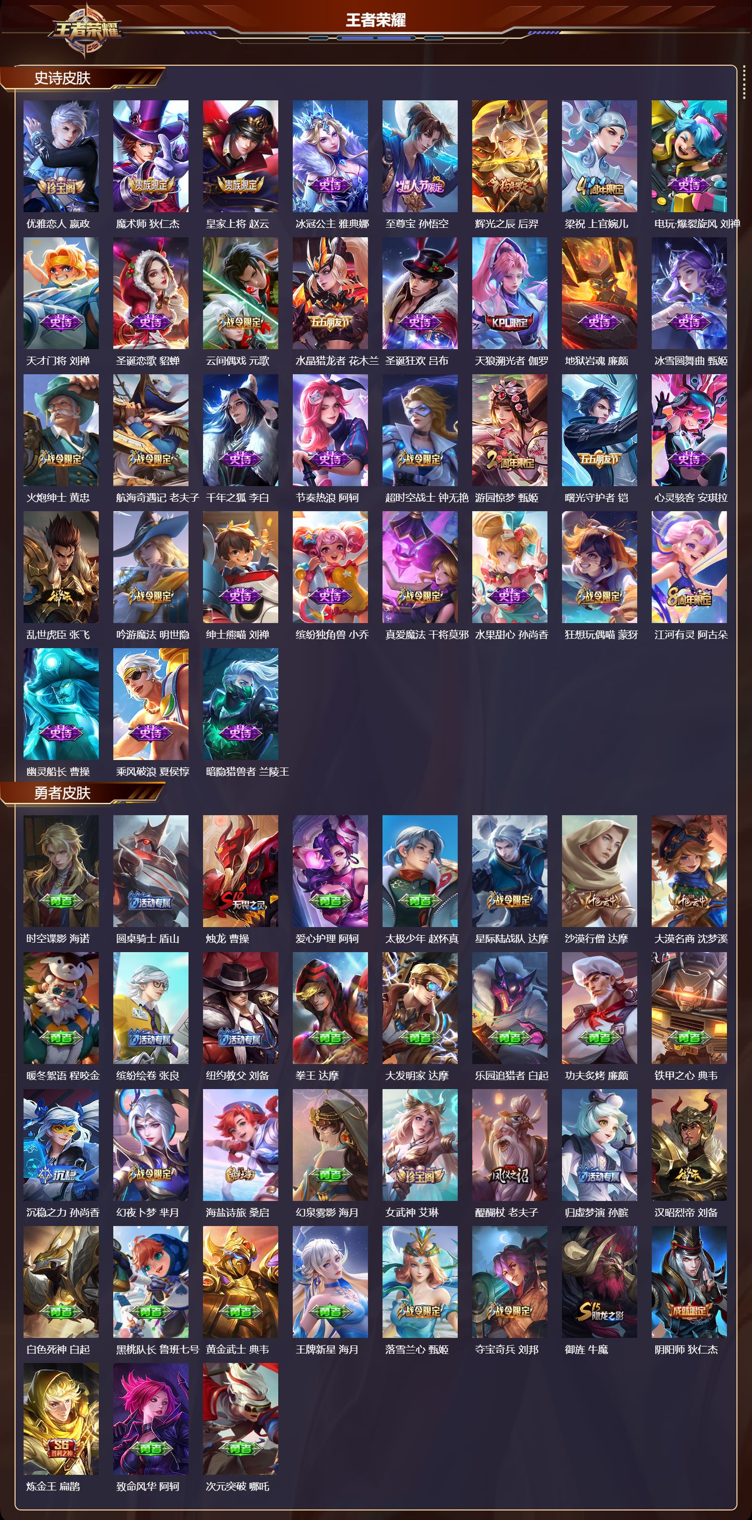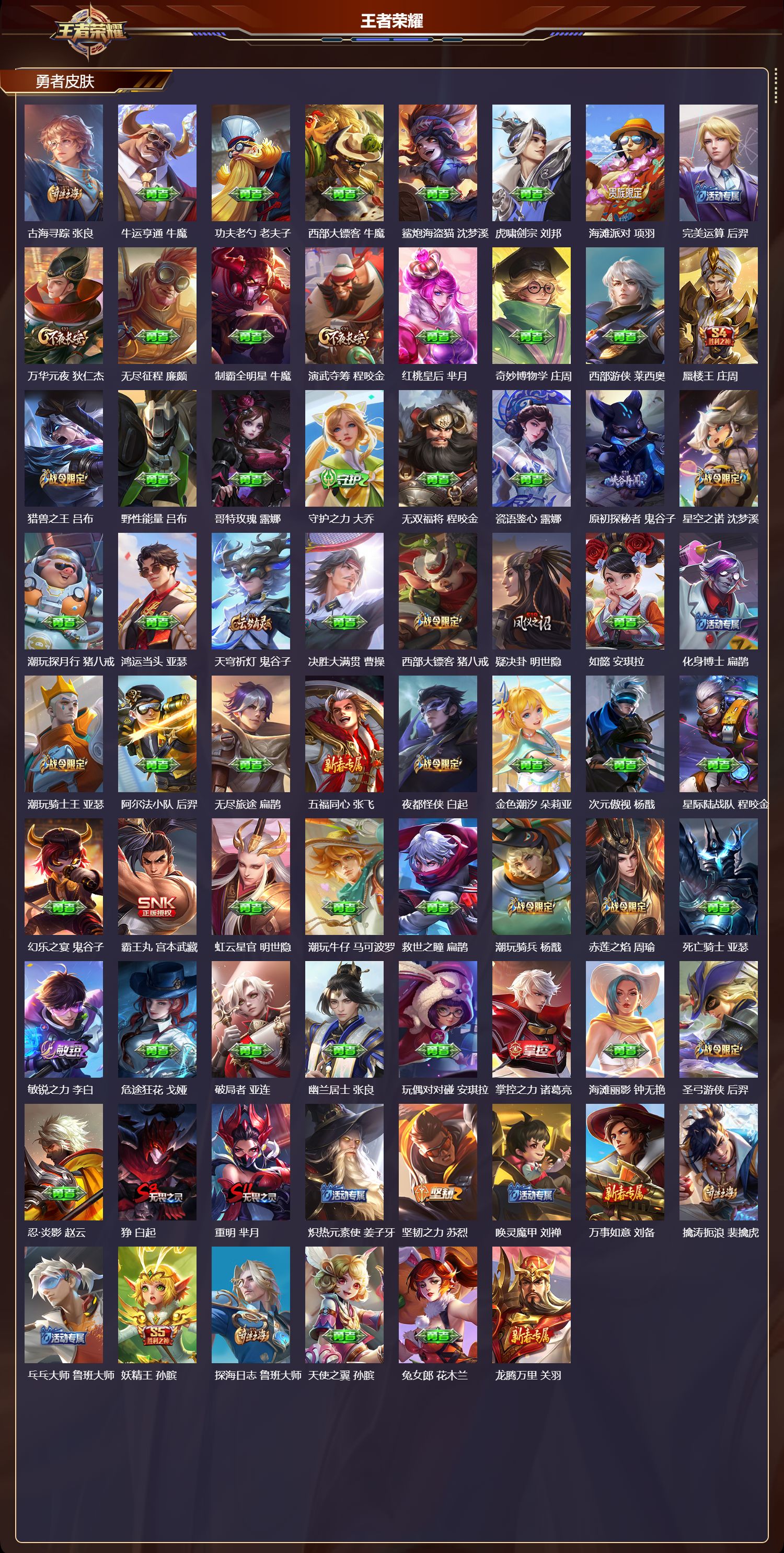贵族等级:v7皮肤数:211传说品质6 情人节限定1 生肖限定1 英雄数:120