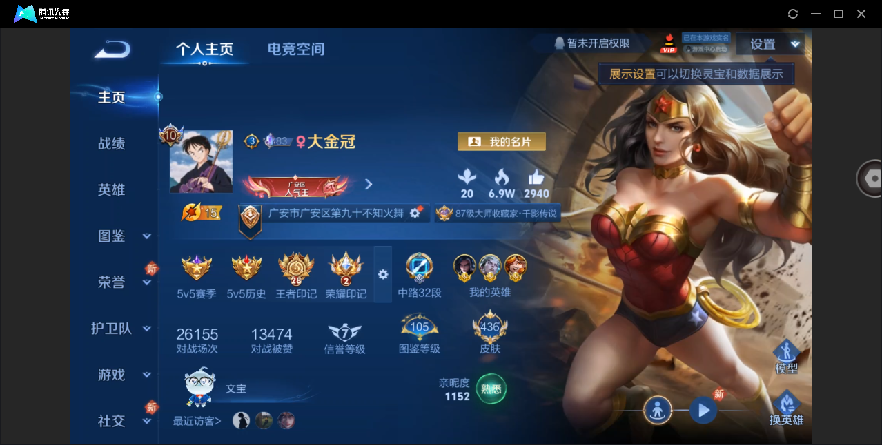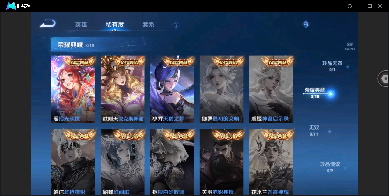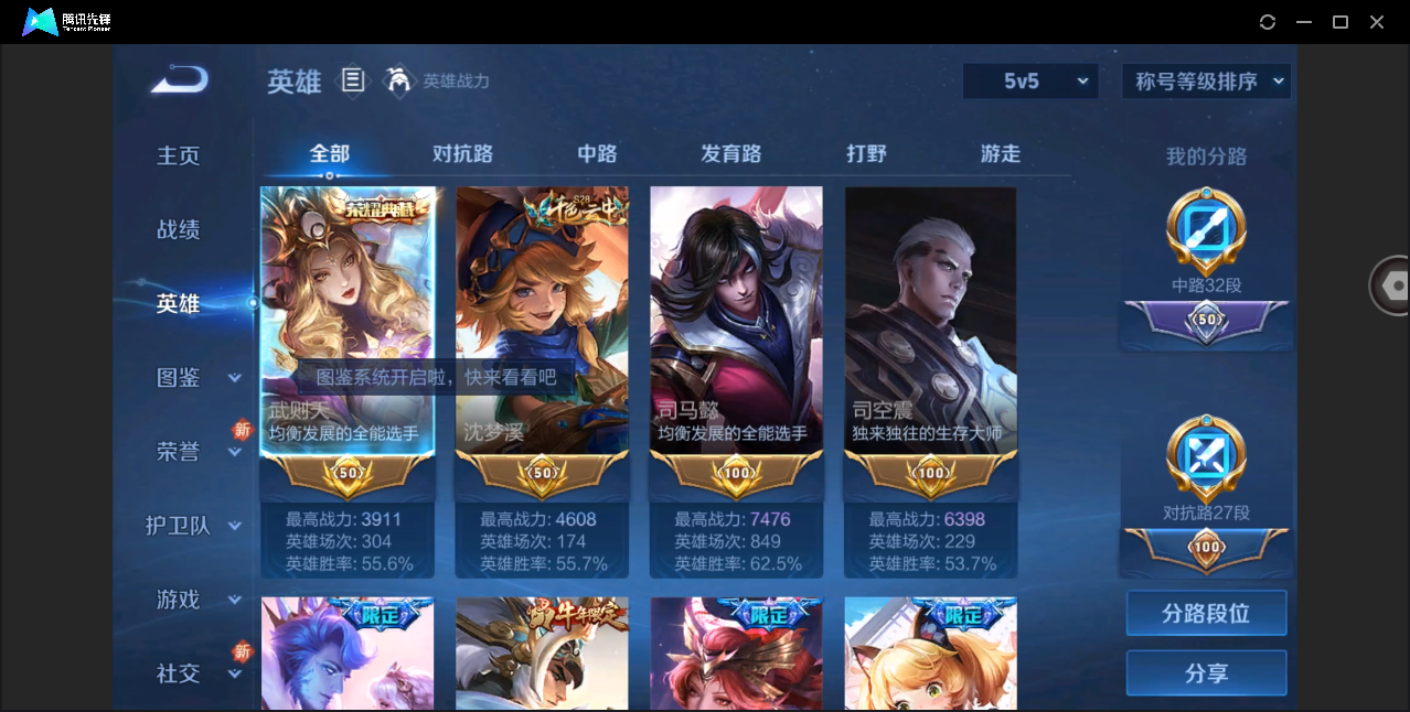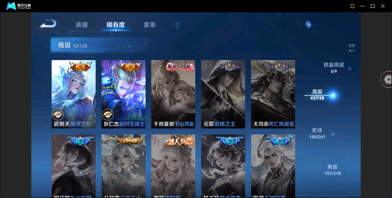 贵族等级:v7皮肤数:163生肖限定2 传说品质4 英雄数:122