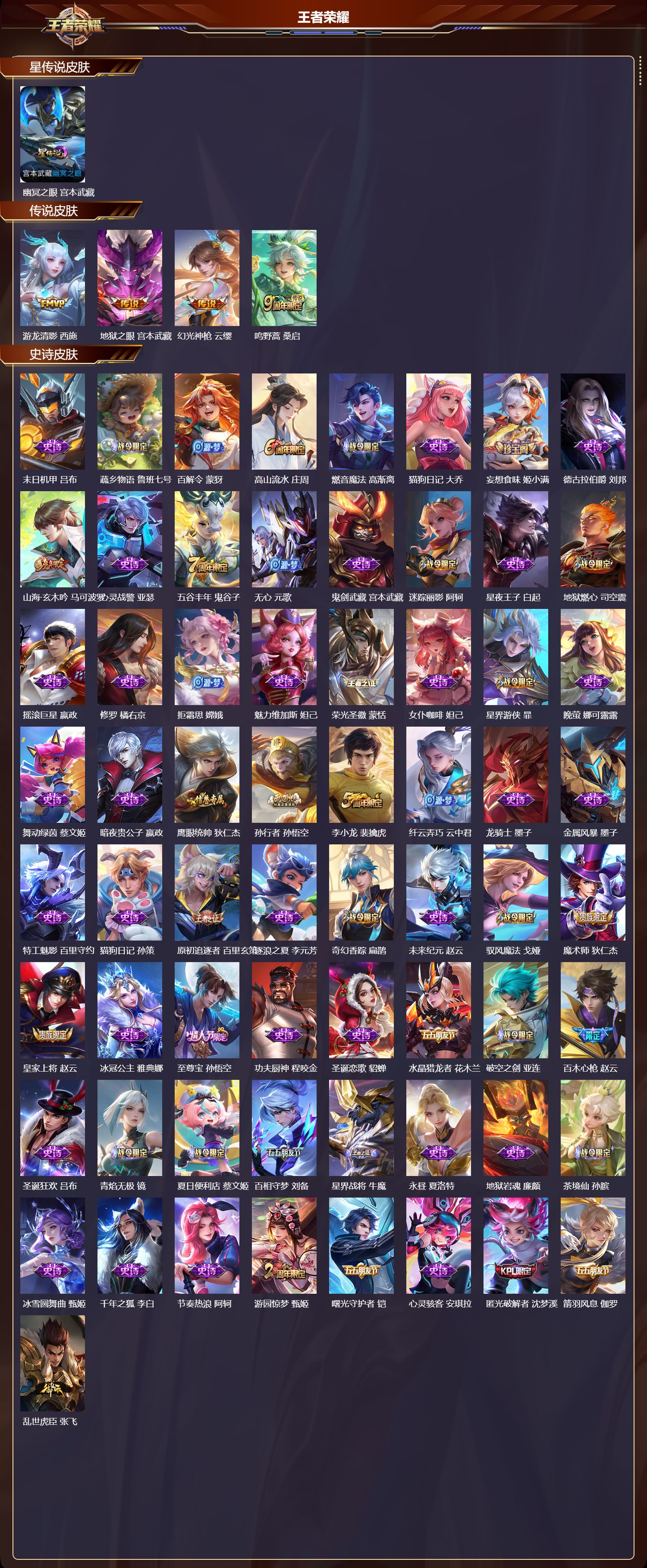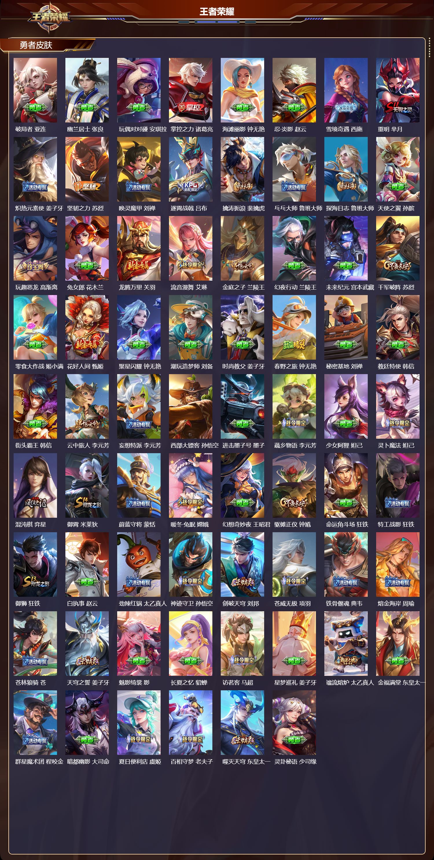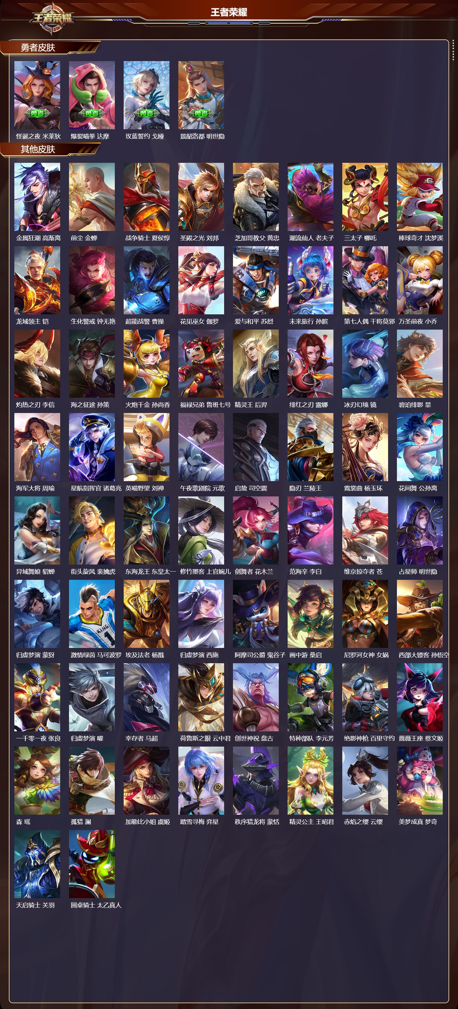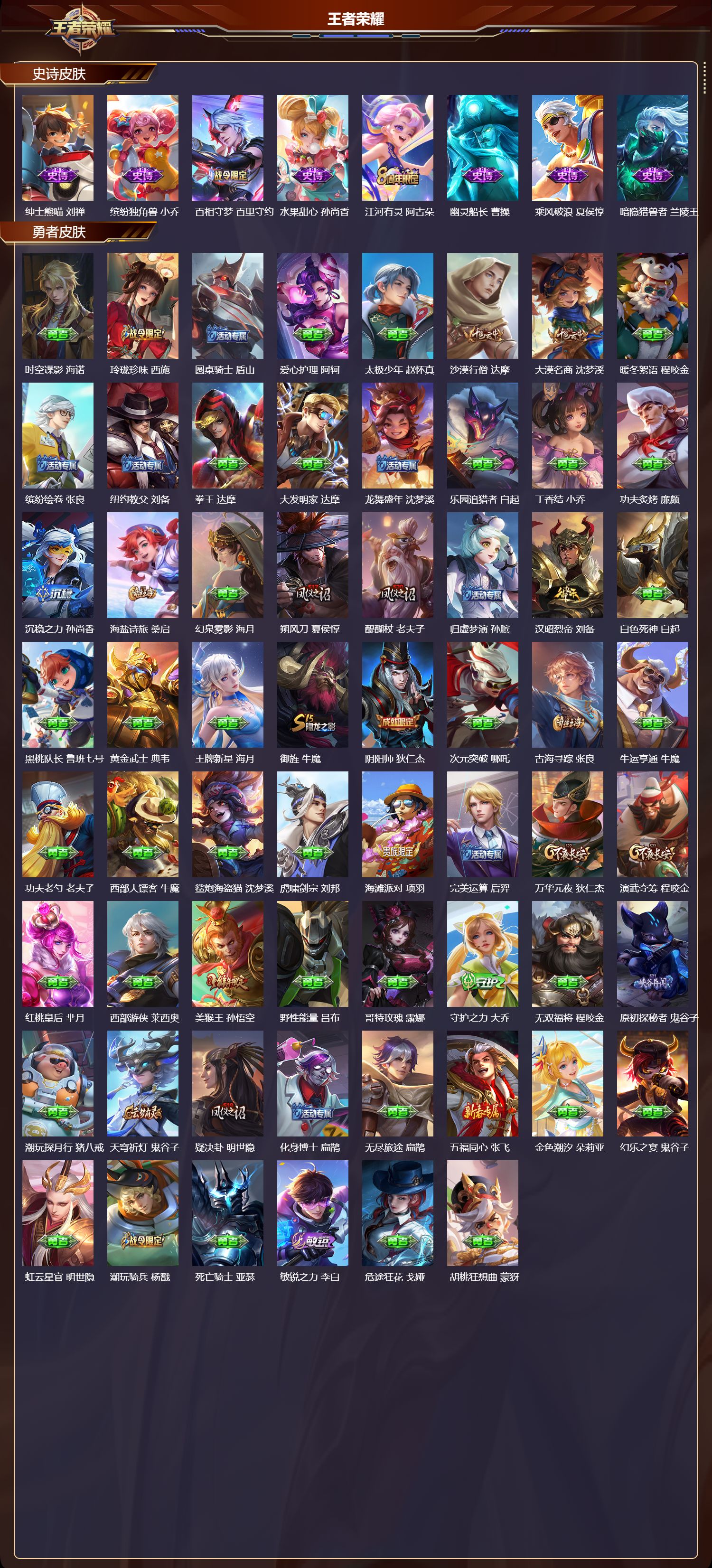 贵族等级:v7皮肤数:116传说品质10 生肖限定4 英雄数:108