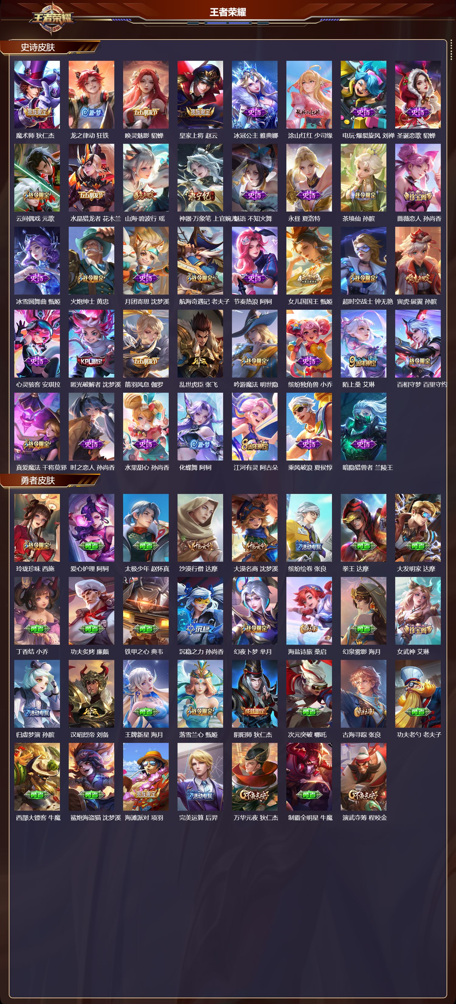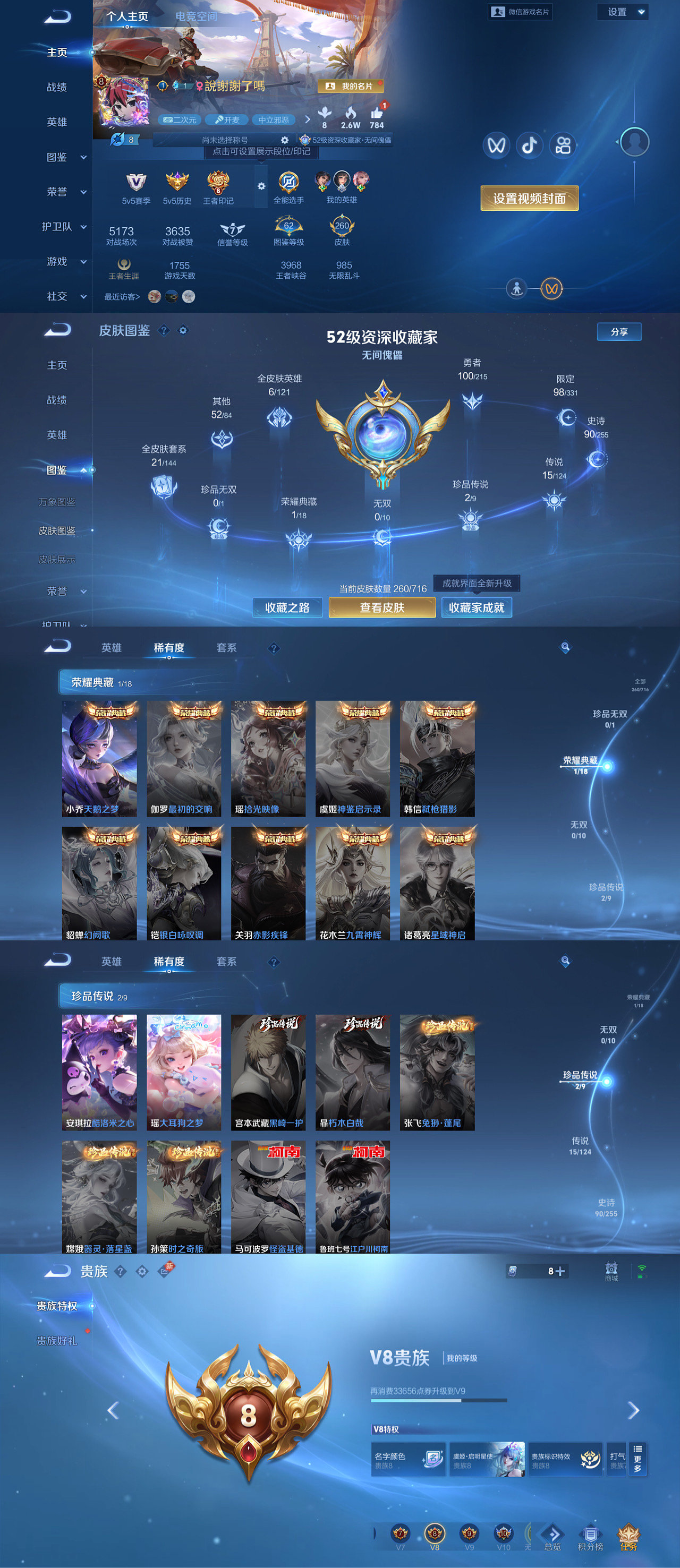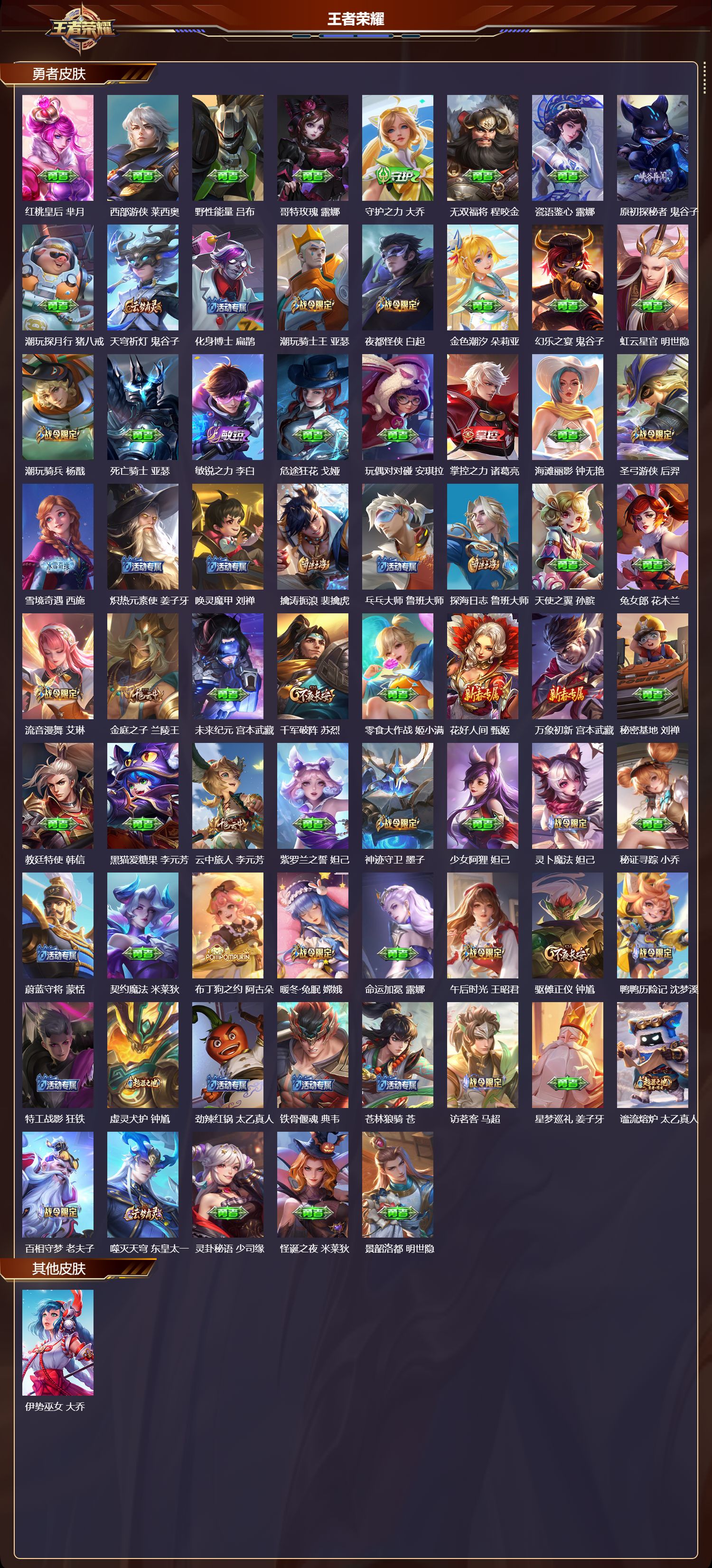 贵族等级:v6皮肤数:210传说品质2 英雄数:121
