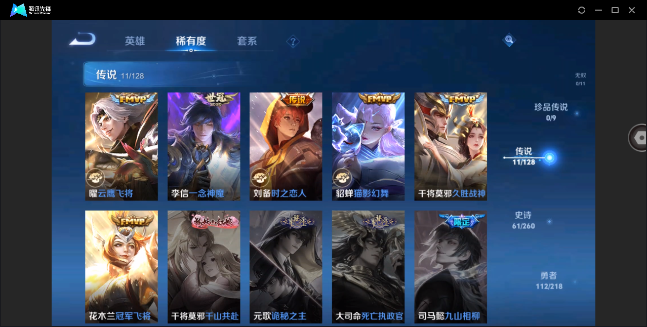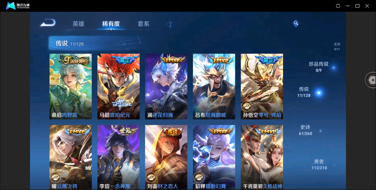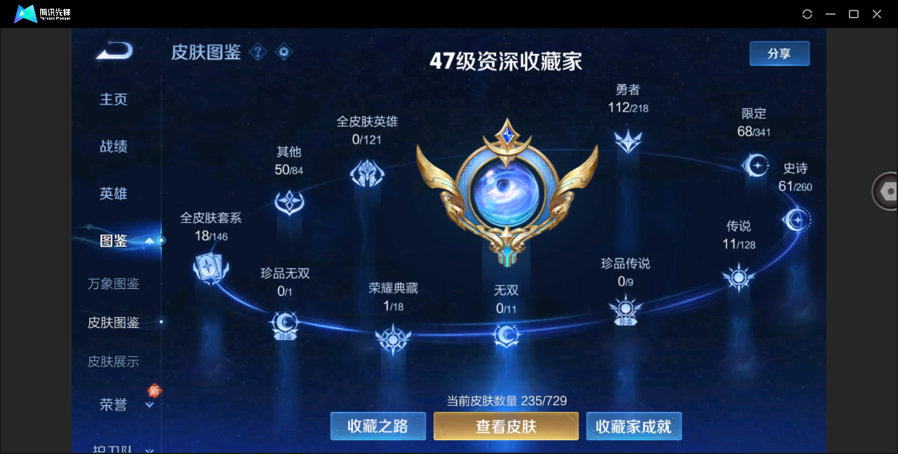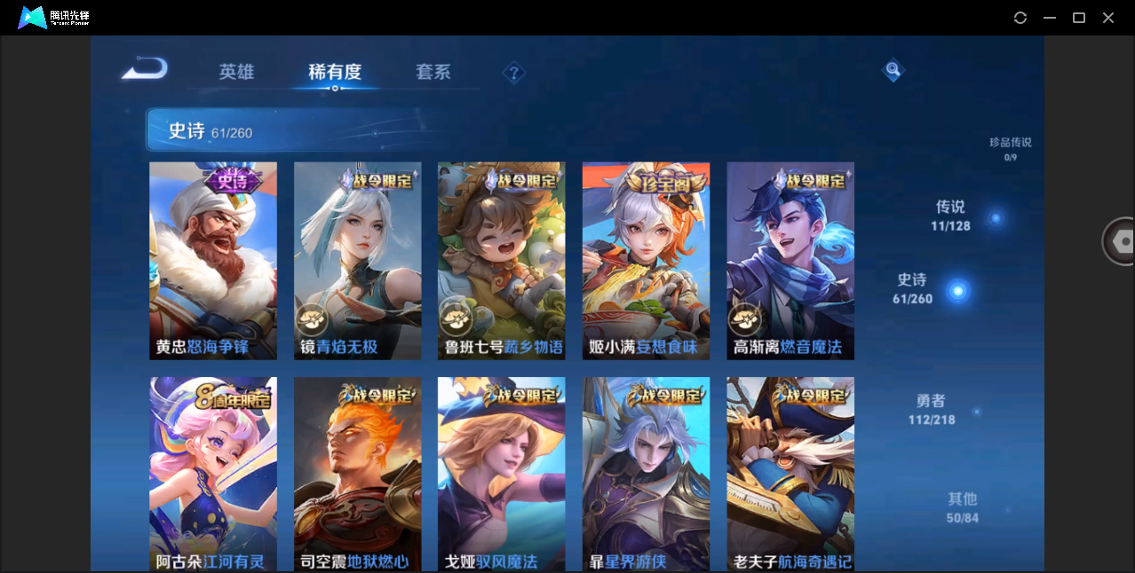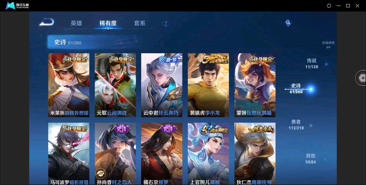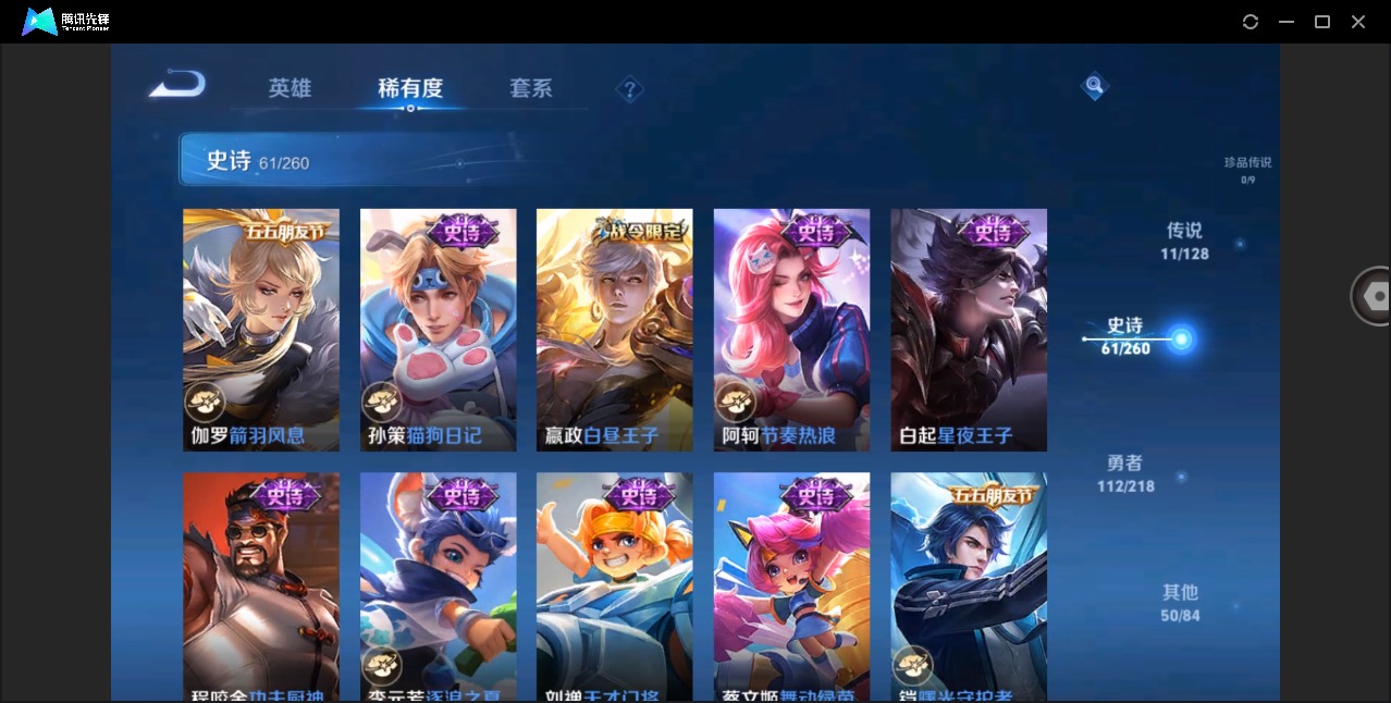 贵族等级:v7皮肤数:214传说品质9 生肖限定3 情人节限定2 英雄数:122