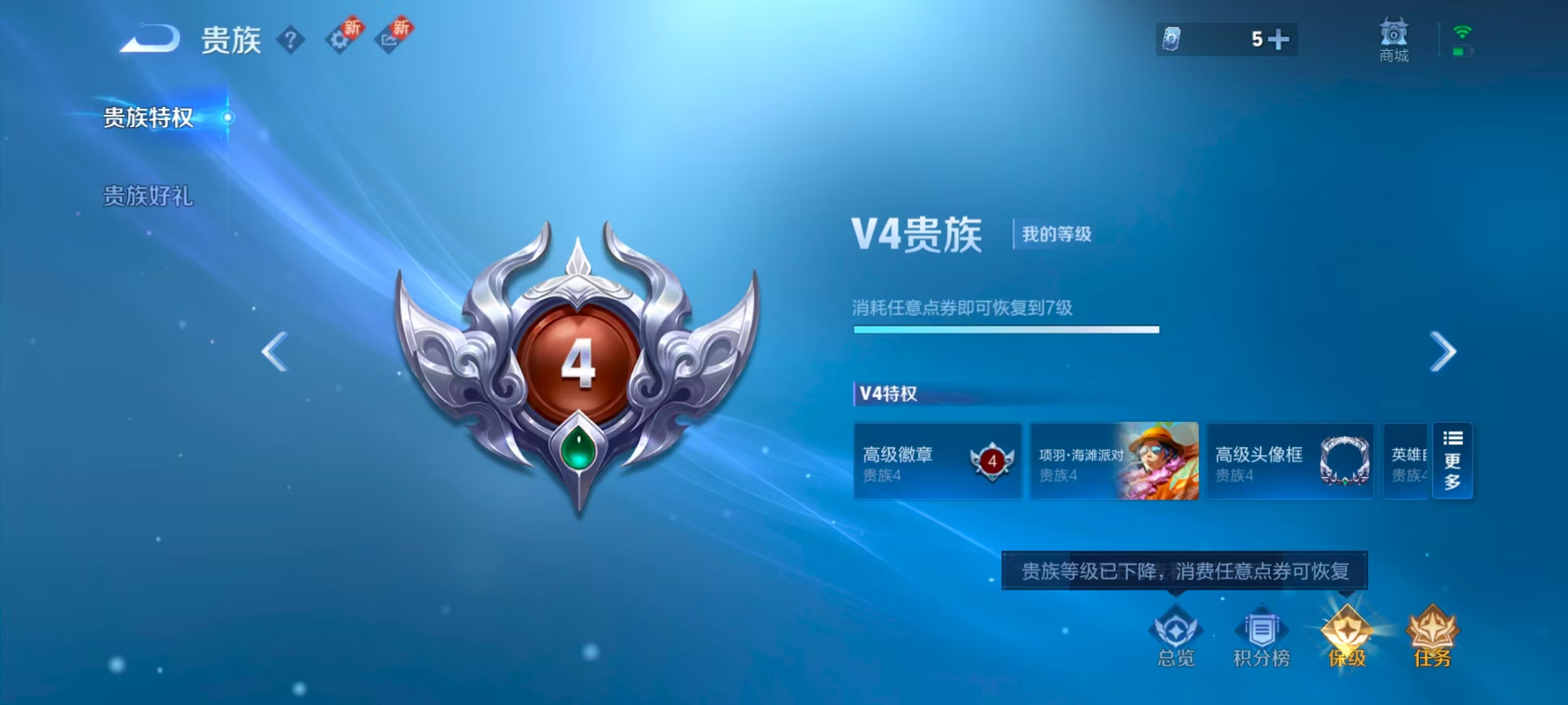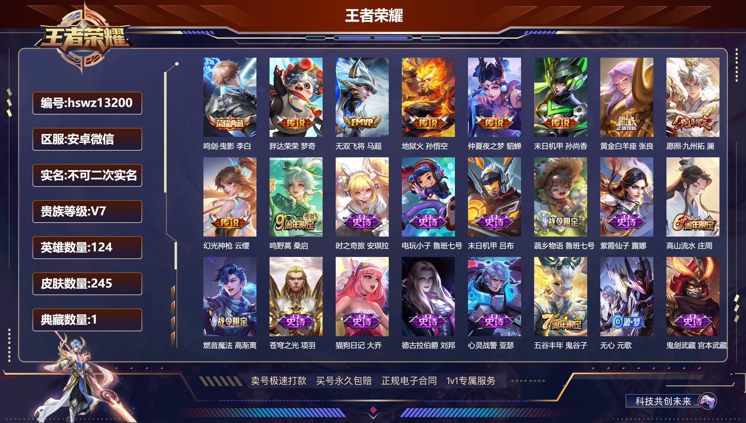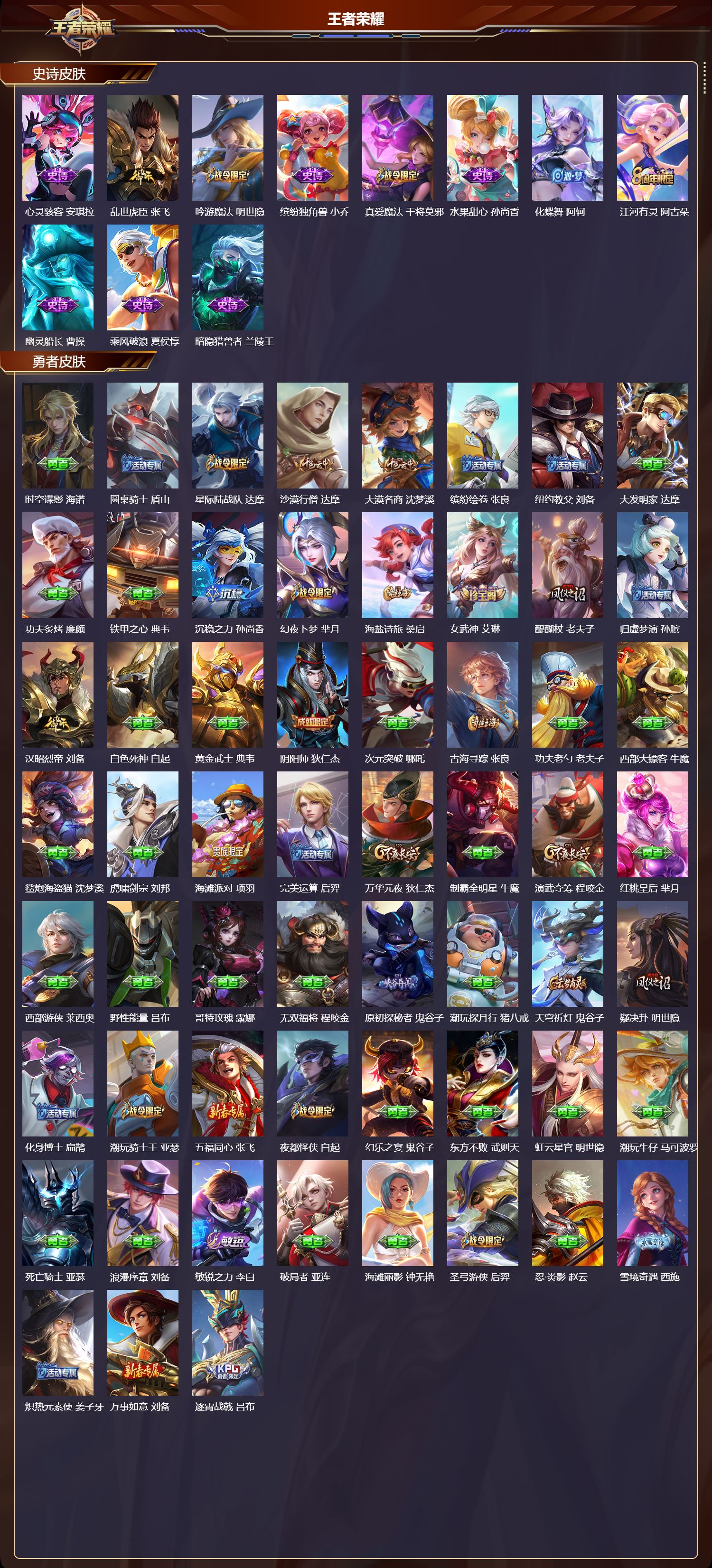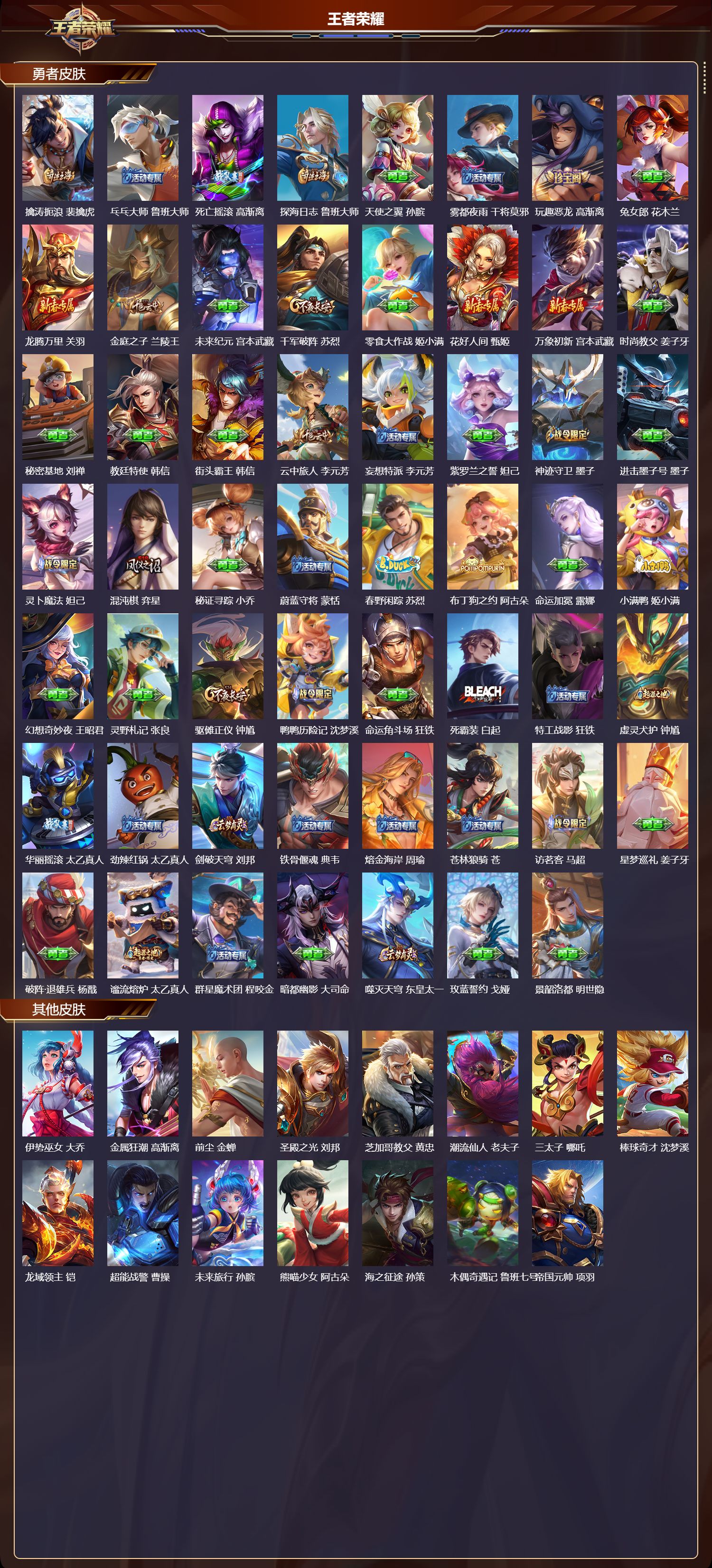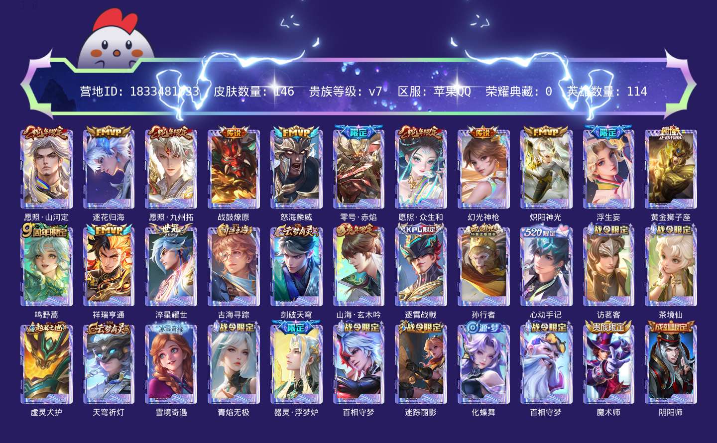 贵族等级:v7皮肤数:146传说品质14 生肖限定4 英雄数:114