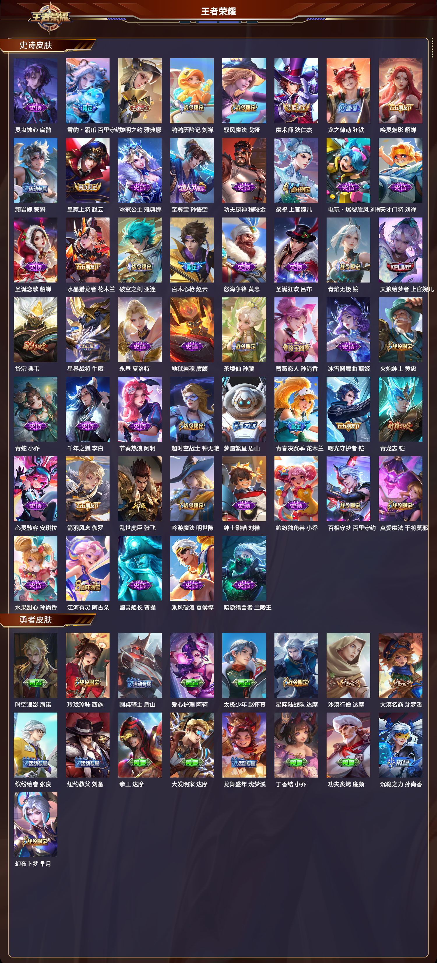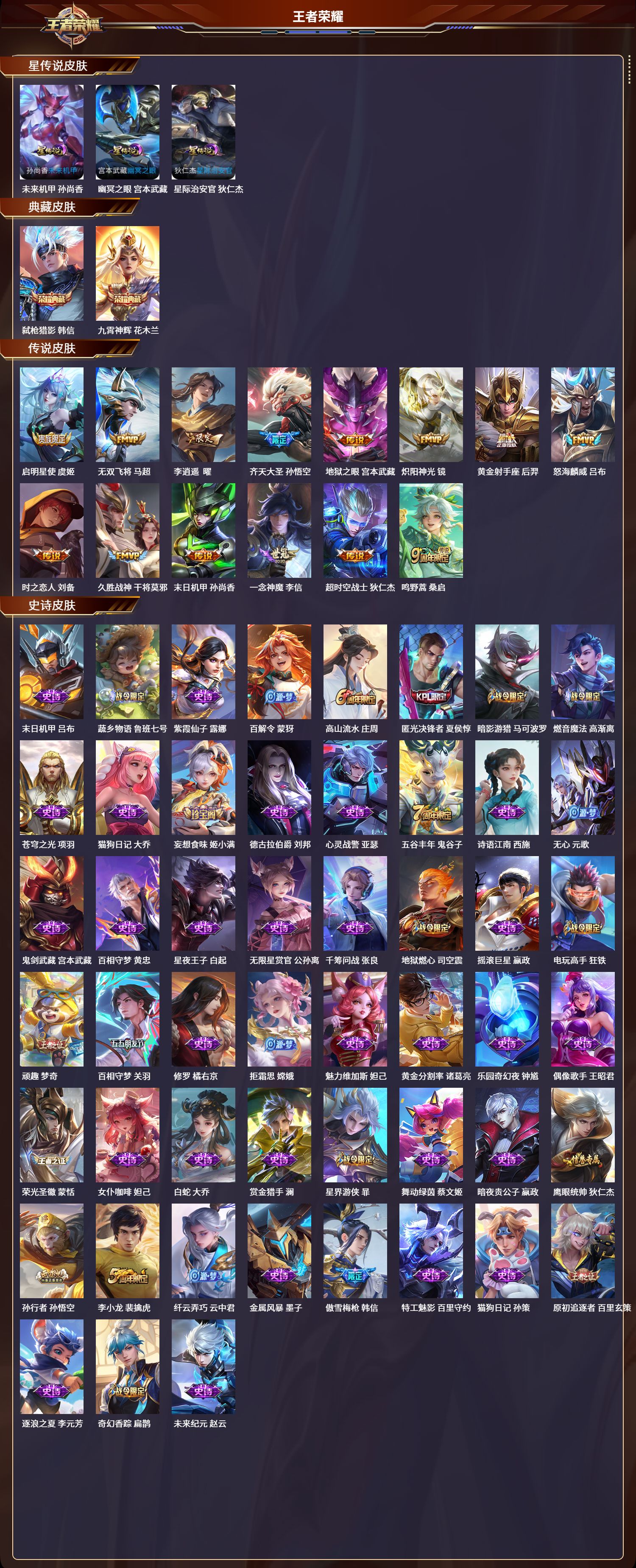 贵族等级:v4皮肤数:11传说品质1 英雄数:22