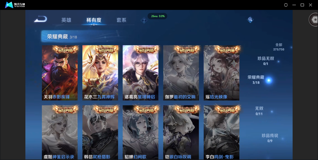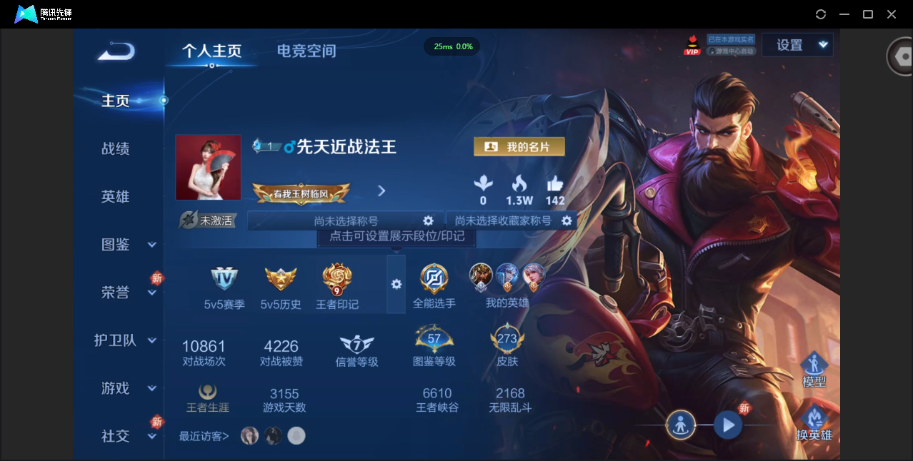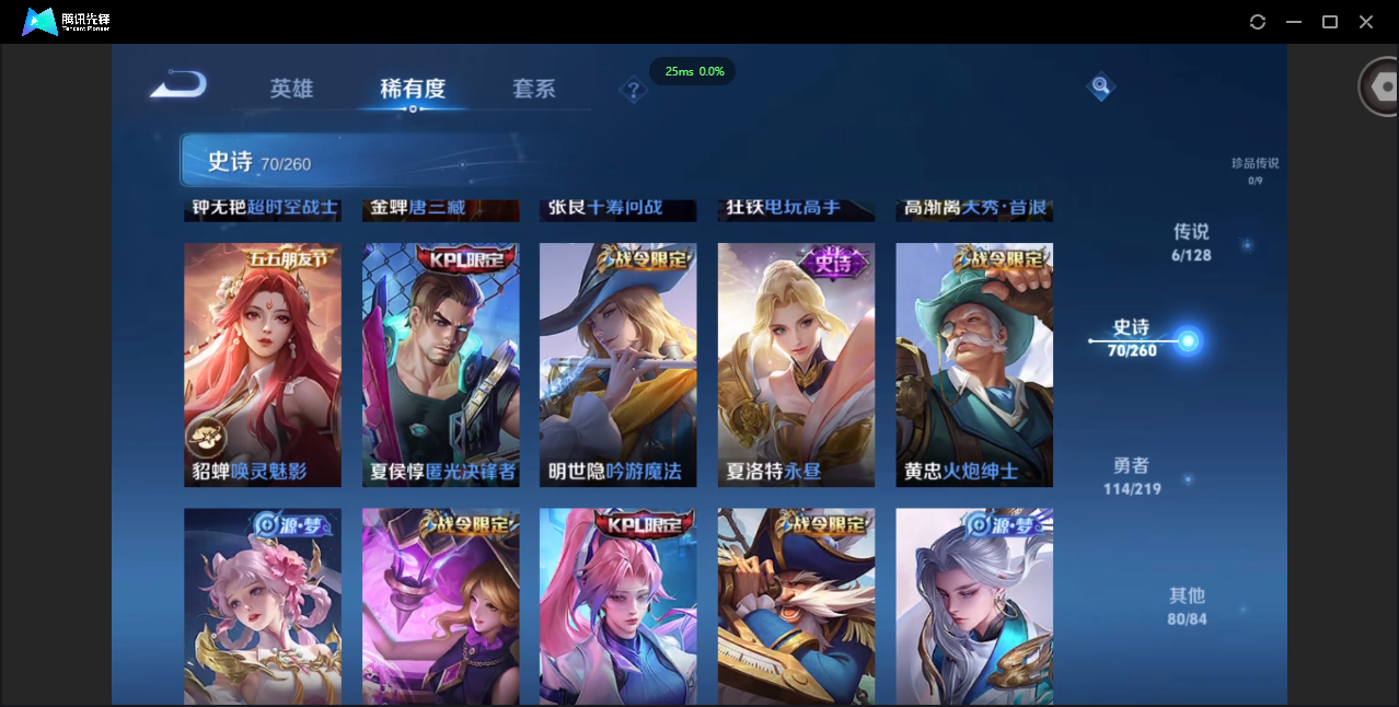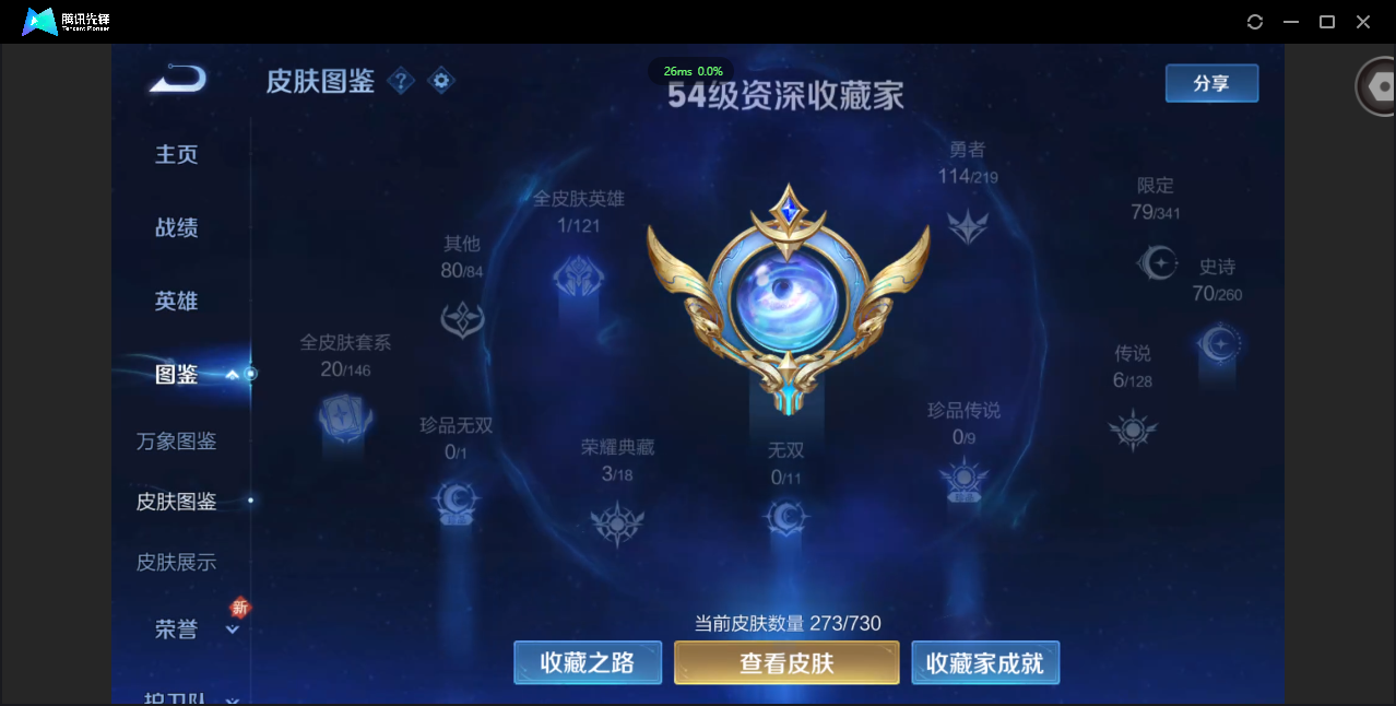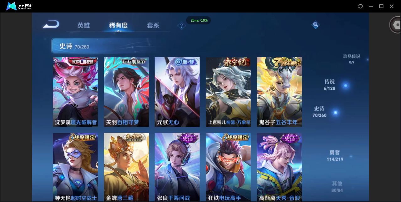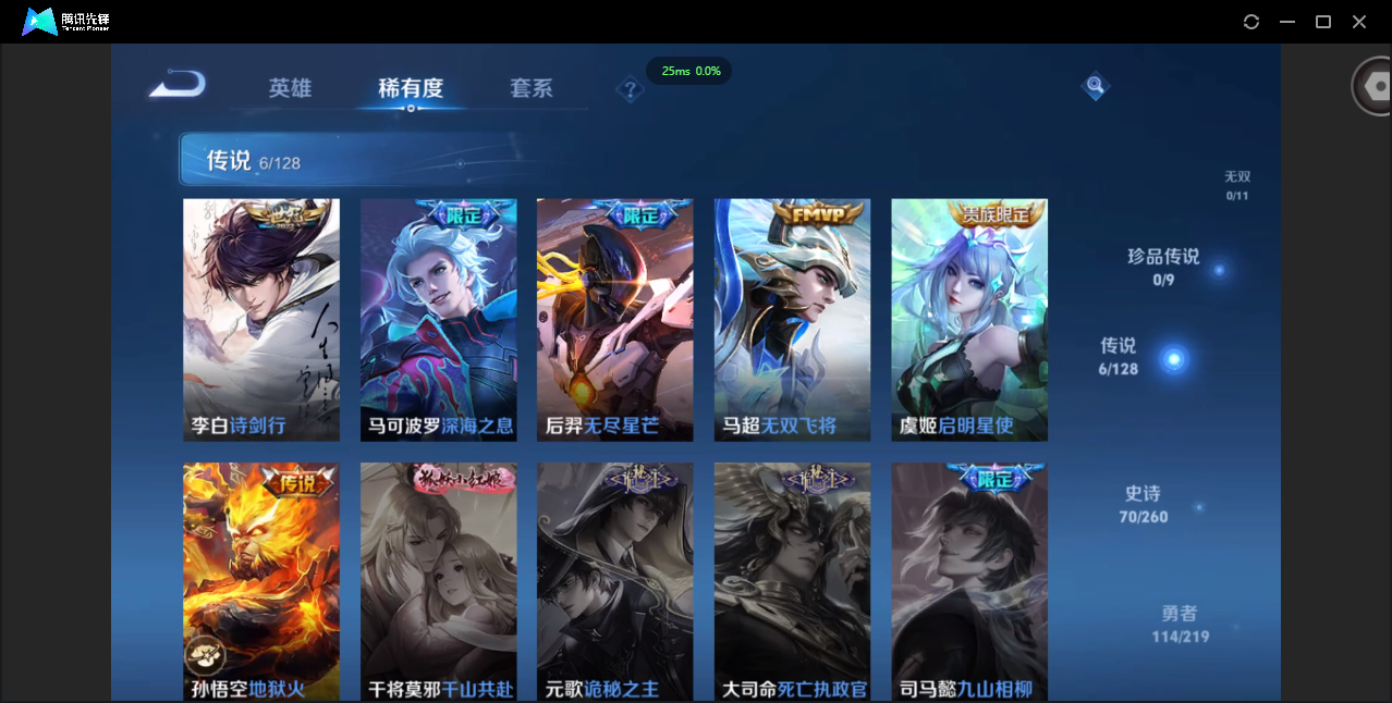 贵族等级:v7皮肤数:129传说品质11 生肖限定3 英雄数:114