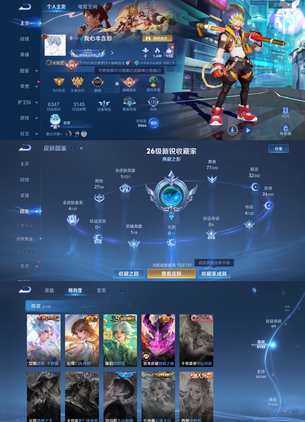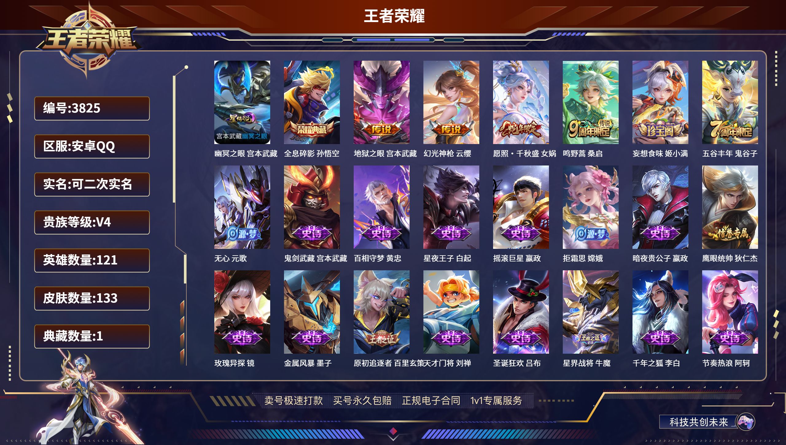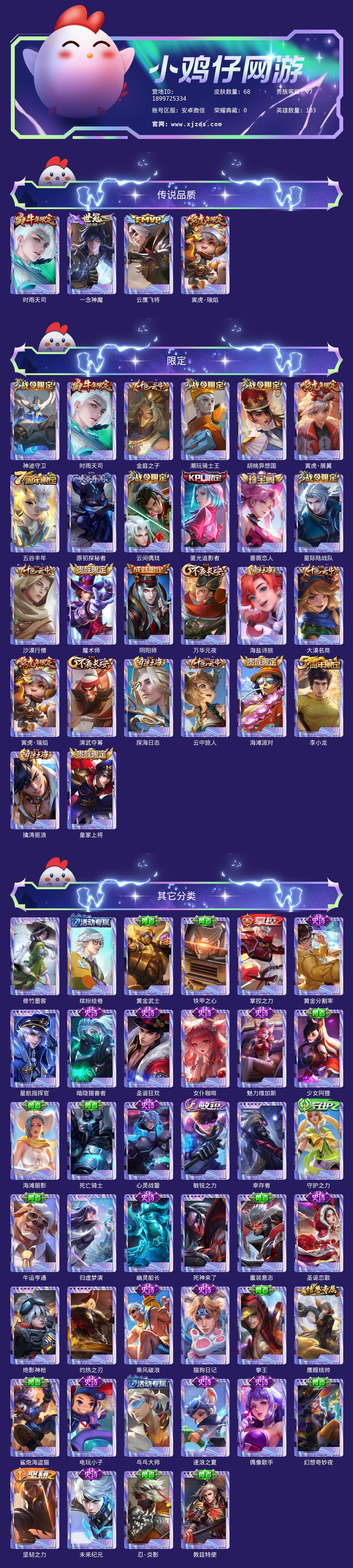 贵族等级:v7皮肤数:68传说品质4 生肖限定3 英雄数:103
