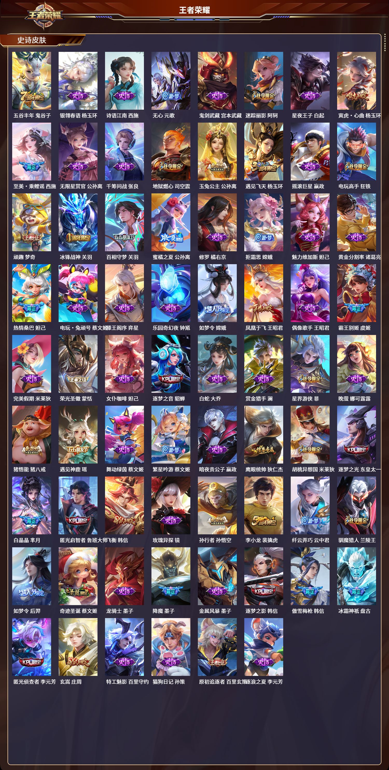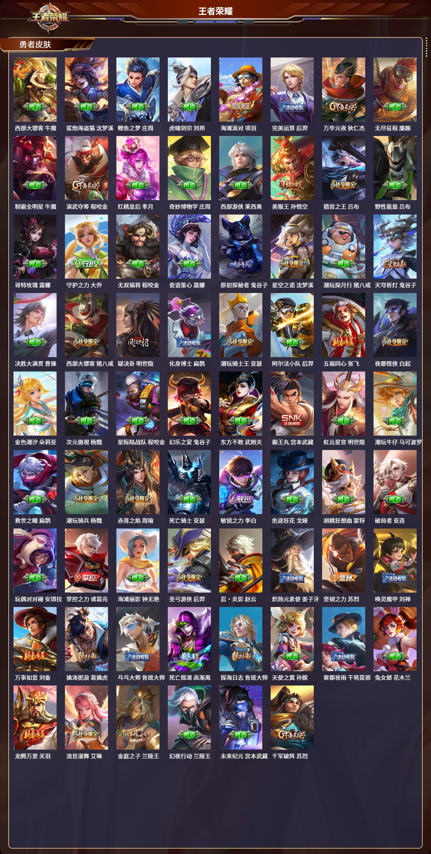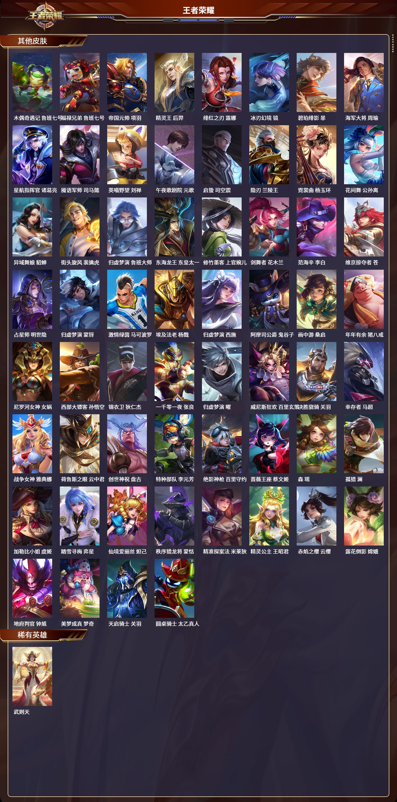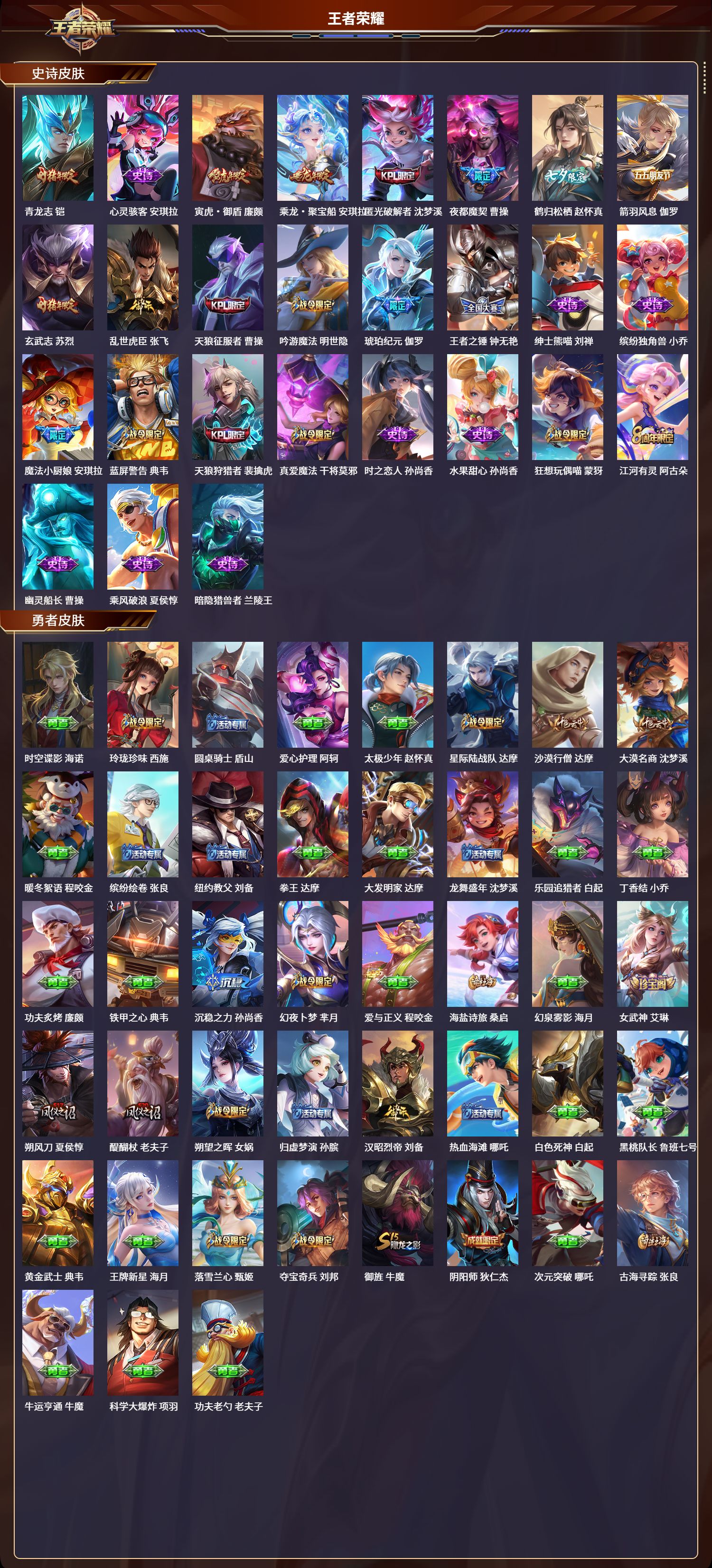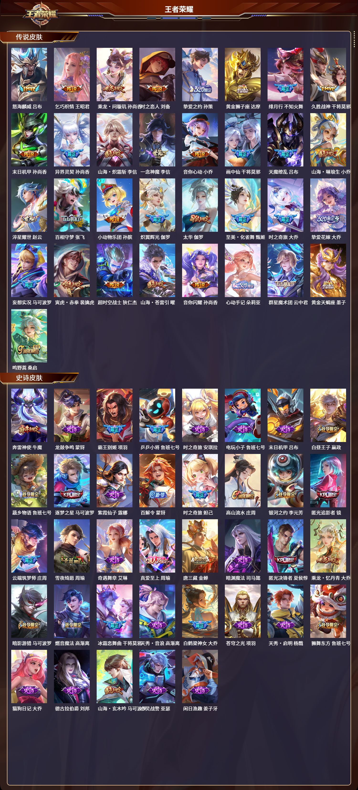 贵族等级:v3皮肤数:109传说品质1 英雄数:120