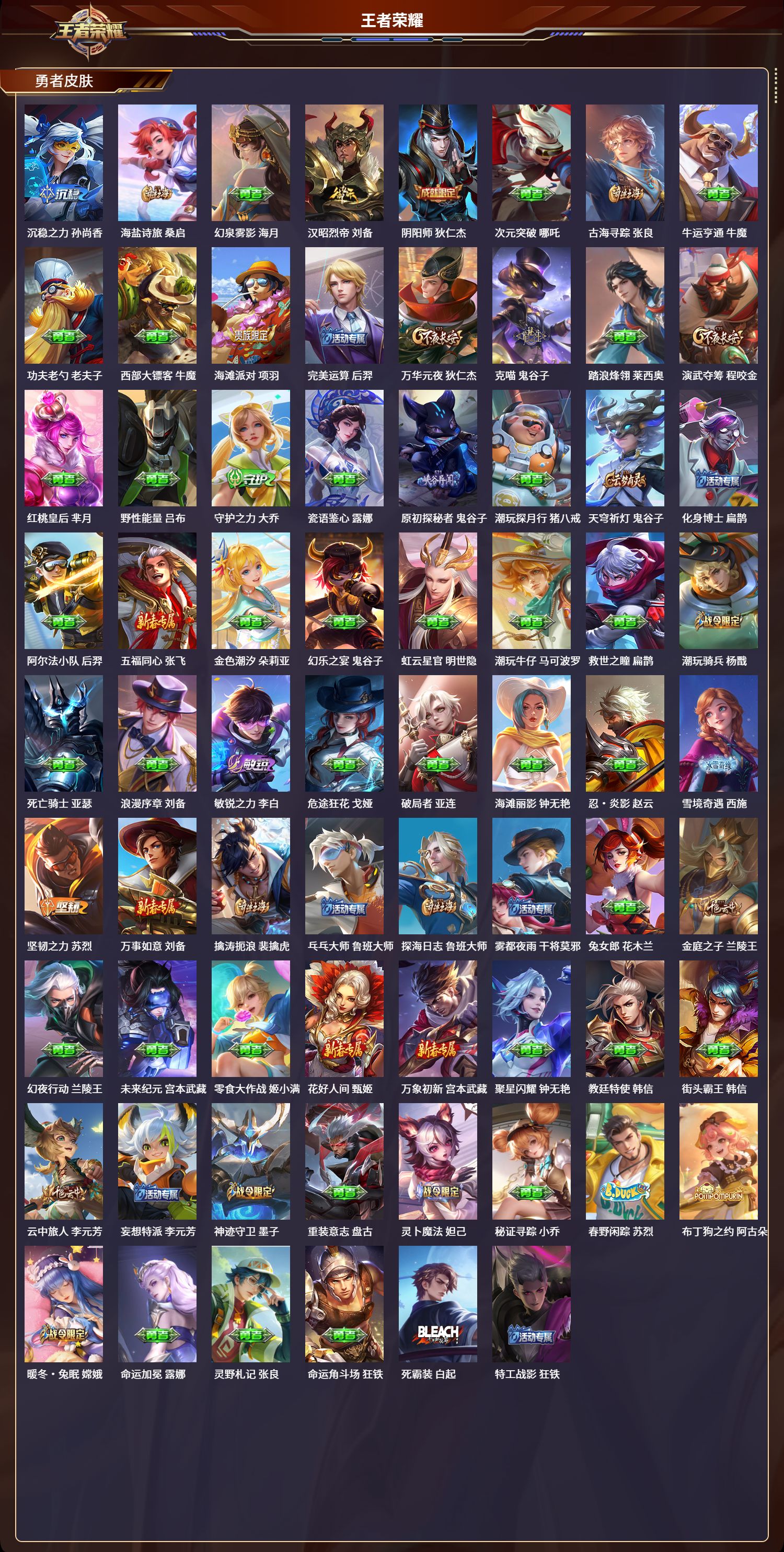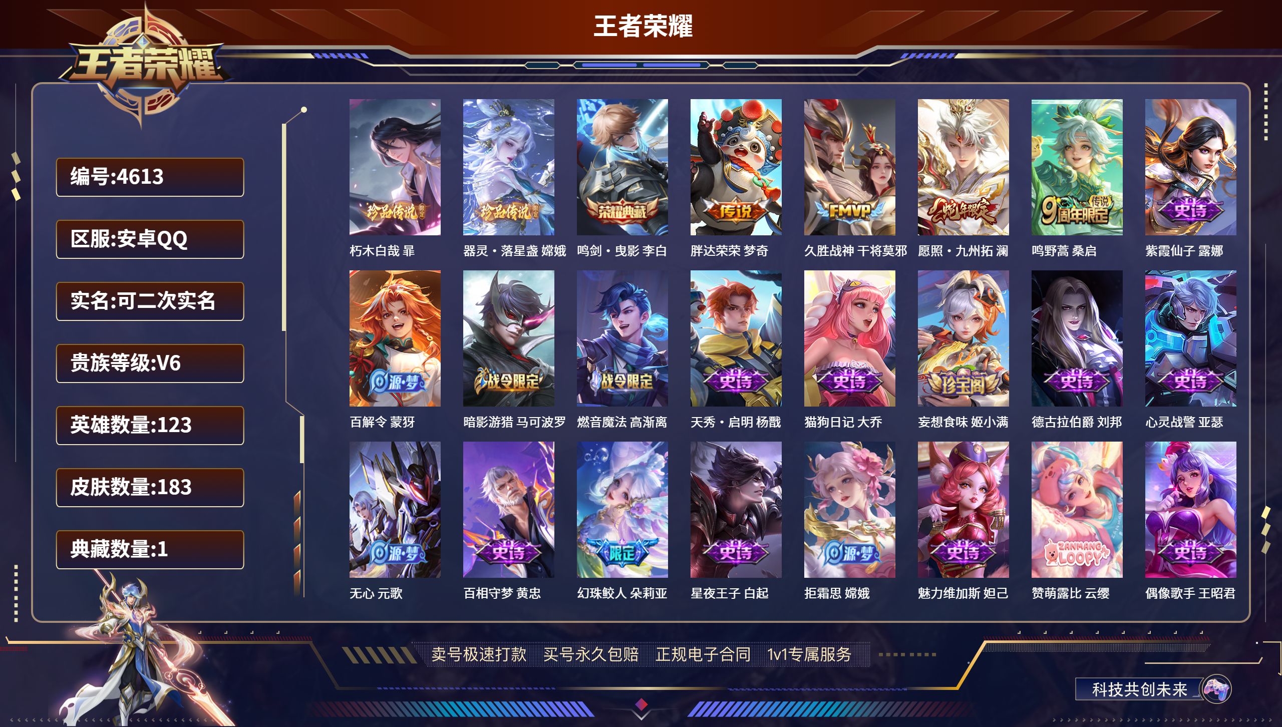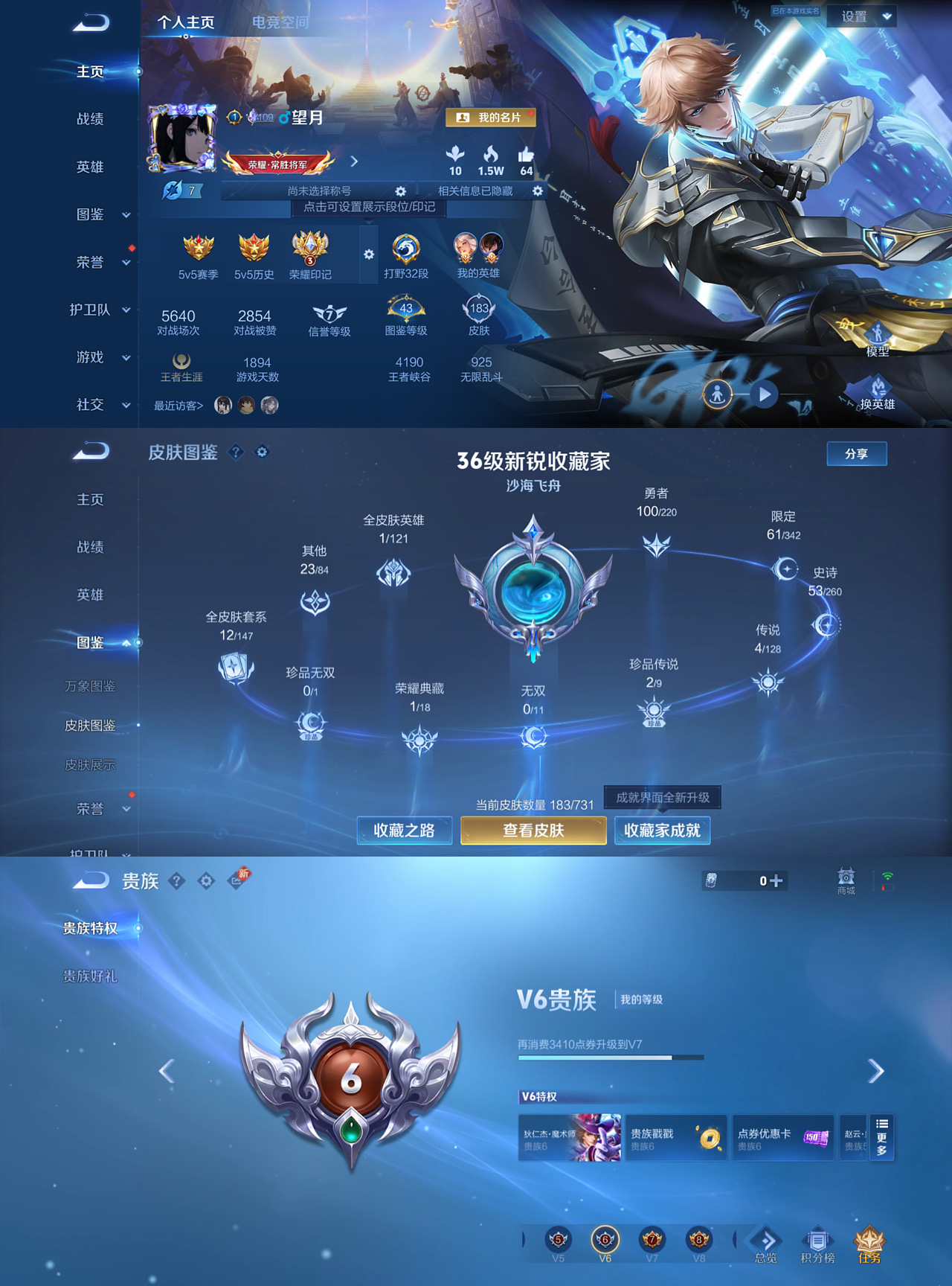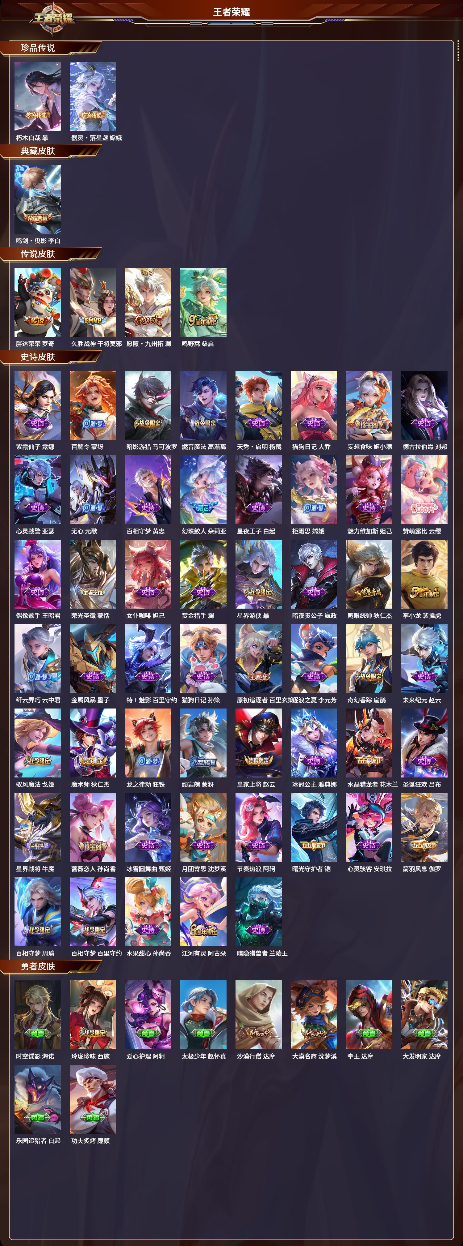 贵族等级:v6皮肤数:190传说品质7 英雄数:121