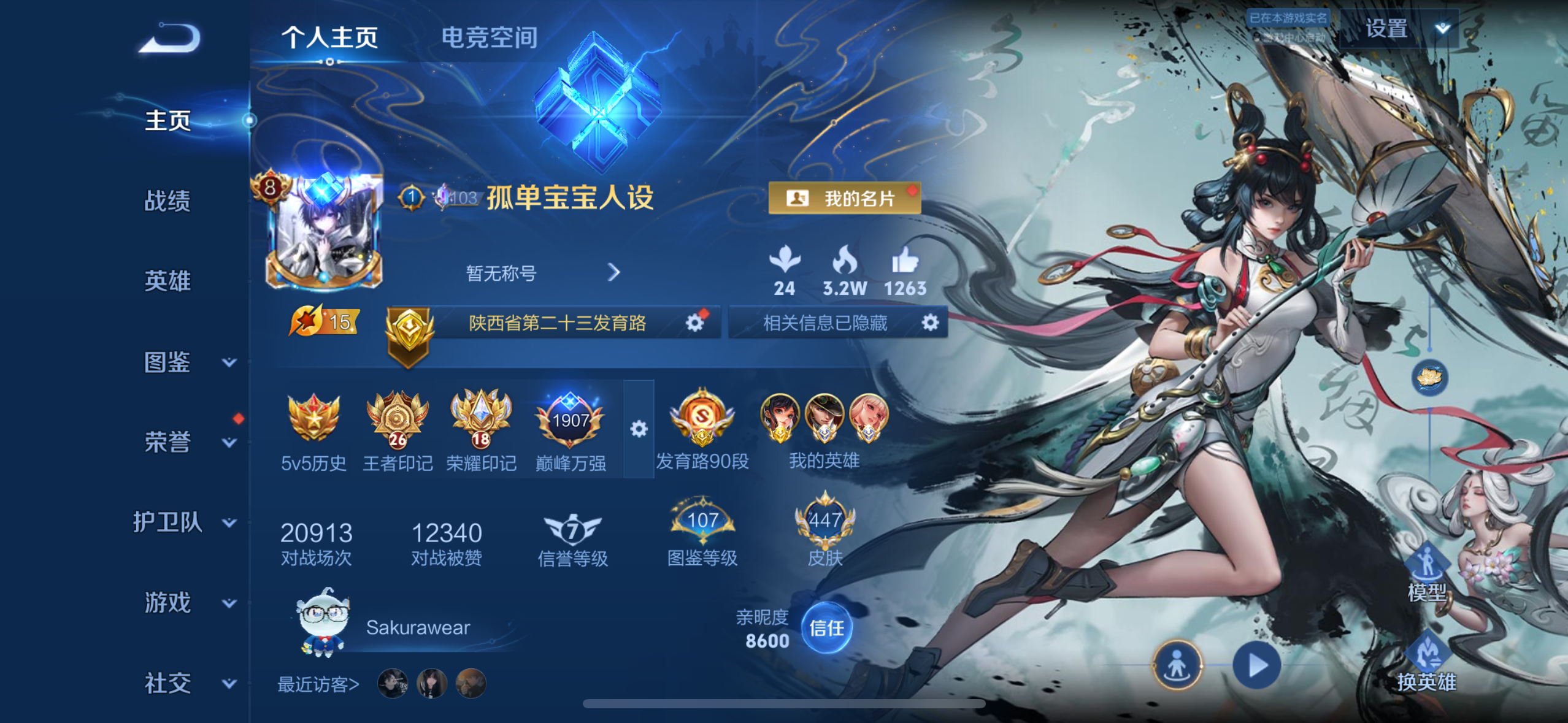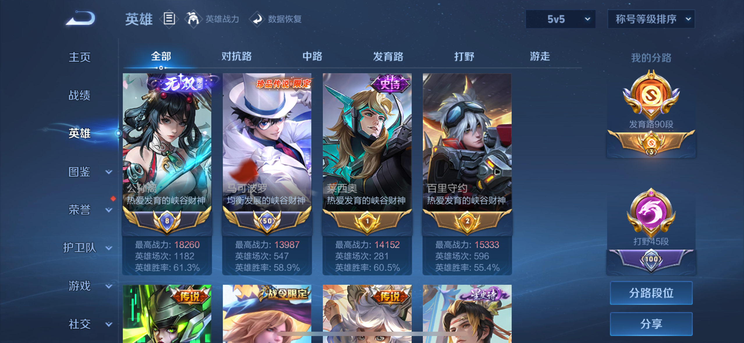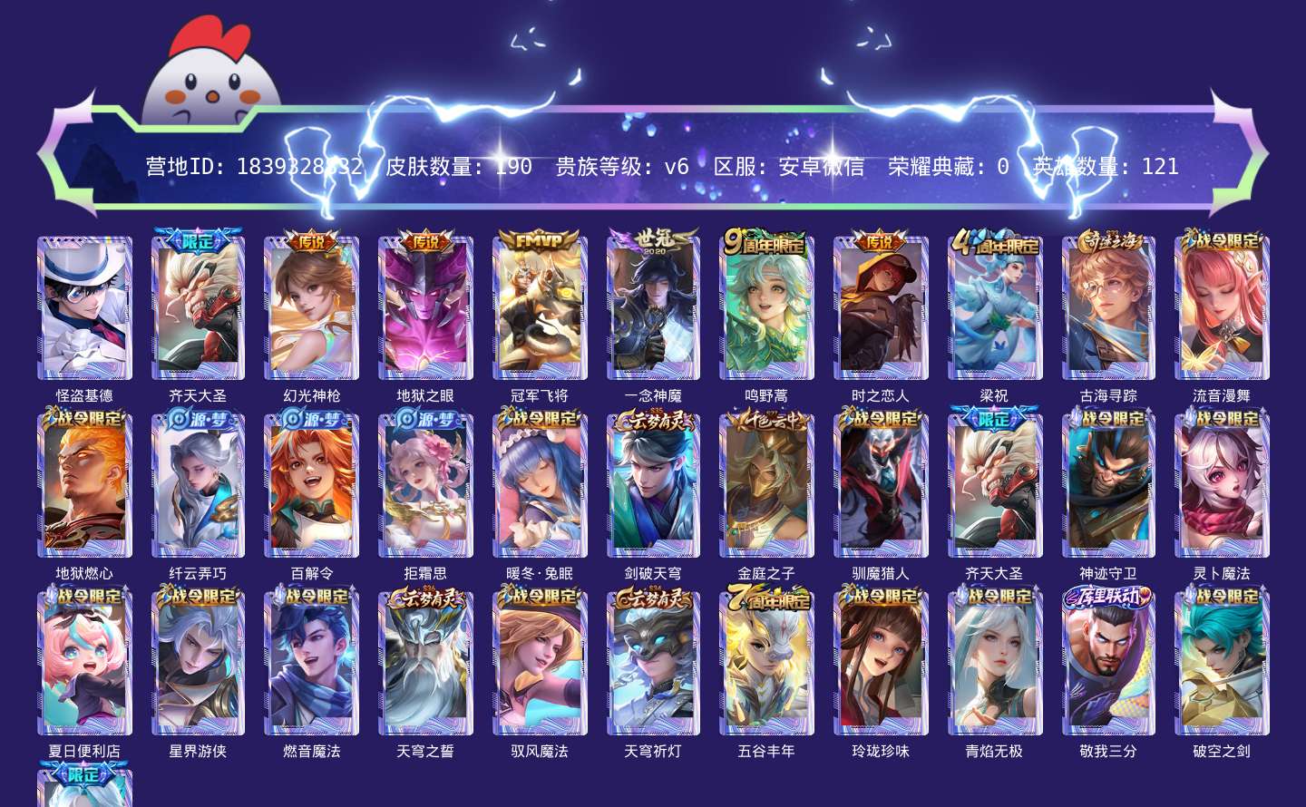 贵族等级:v6皮肤数:190传说品质7 英雄数:121