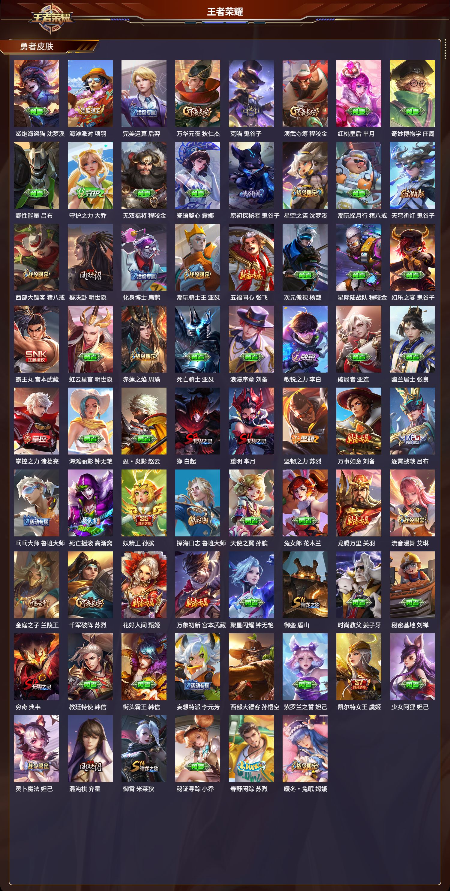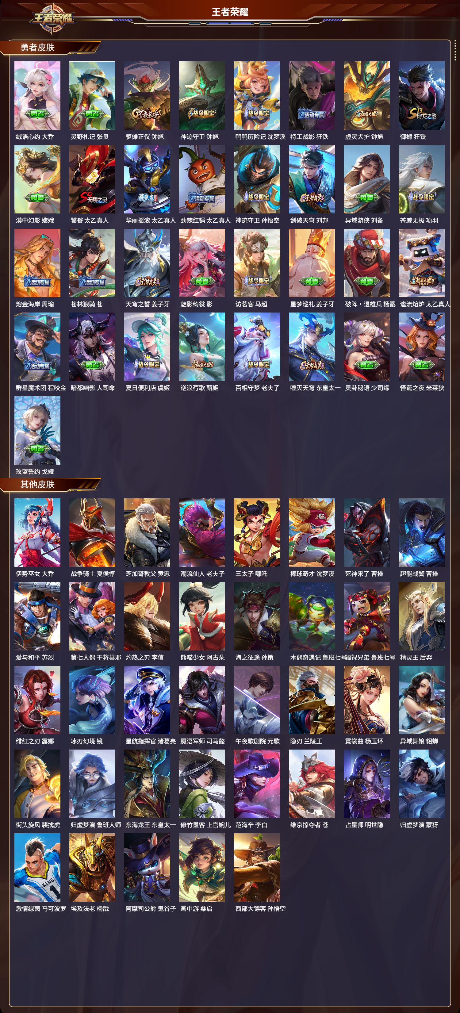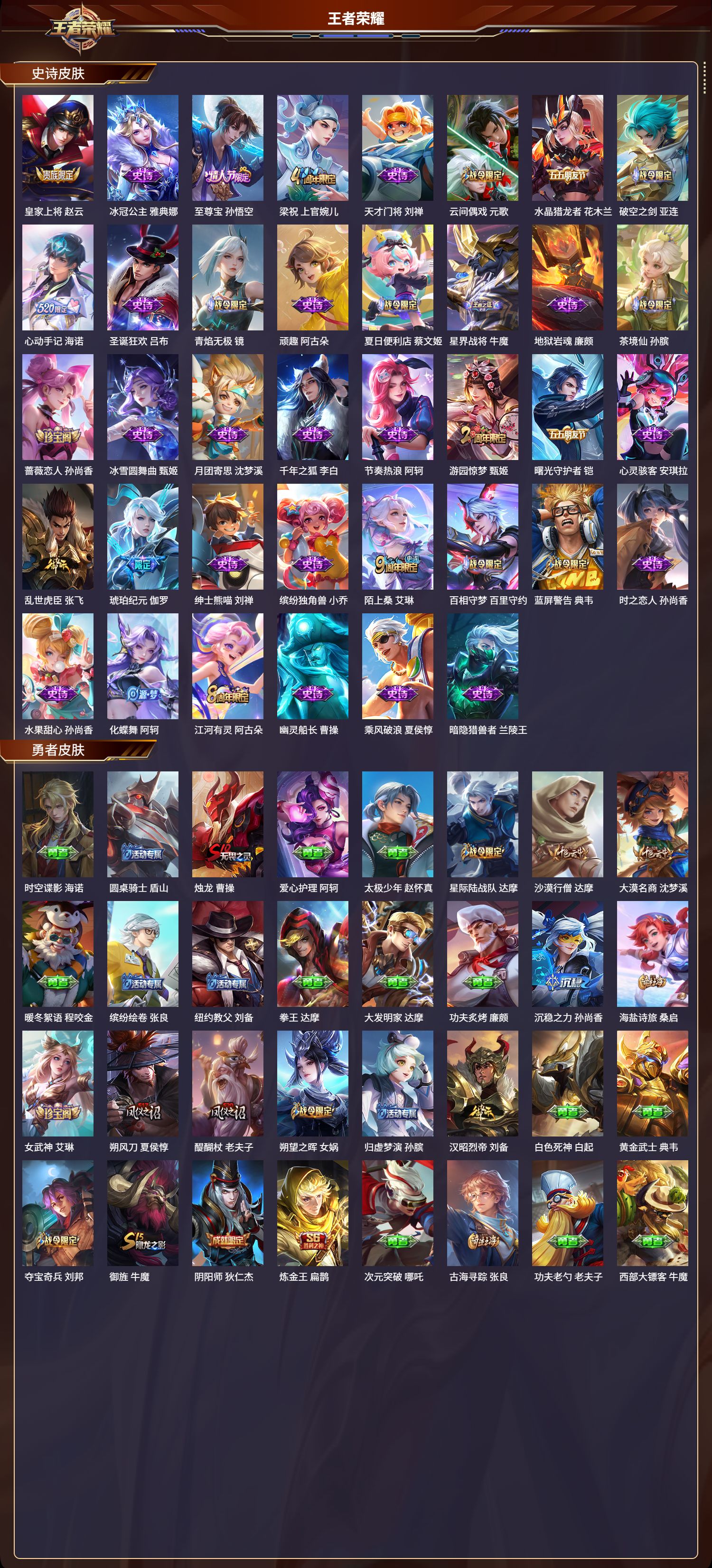 【11按键2珍品5传说V7】安卓Q-103皮肤-102英雄 【珍品传说】 怪盗基德 江户川柯南 【传说皮肤】 玄雷天君 鸣野蒿 愿照·众生和 映山客 怒海麟威 【史诗皮肤】 破空之剑 茶境仙 战舞者 星界战将 百相守梦 炽弈燎原 器灵·浮梦炉 烈魂 狼魂孤将 陌上桑 谪仙醉月 星界特工 青焰无极 末日机甲 埋骨钱 夏日便利店 苍威无极 决胜大满贯 完美运算 顽岩魄 魅语