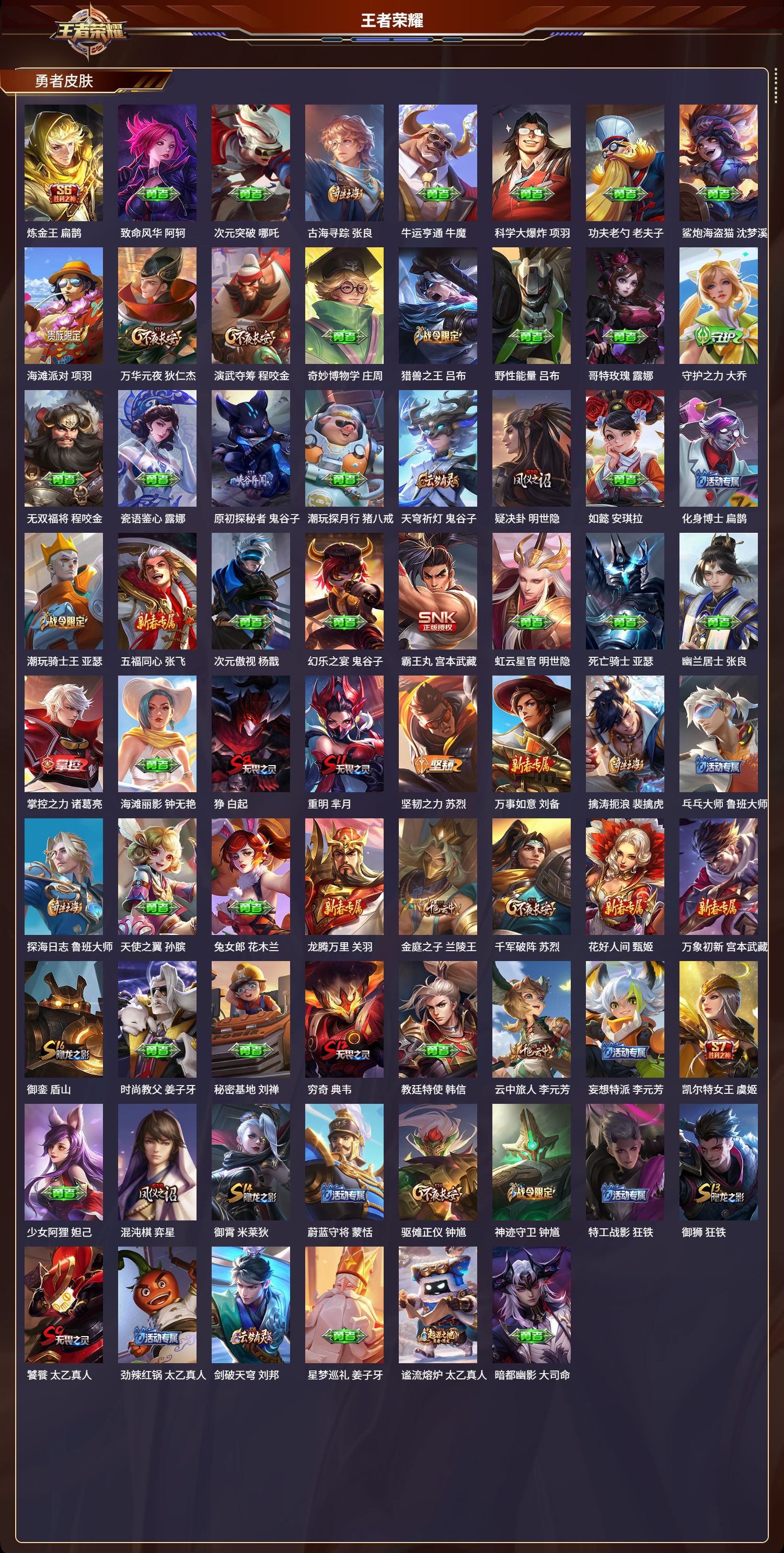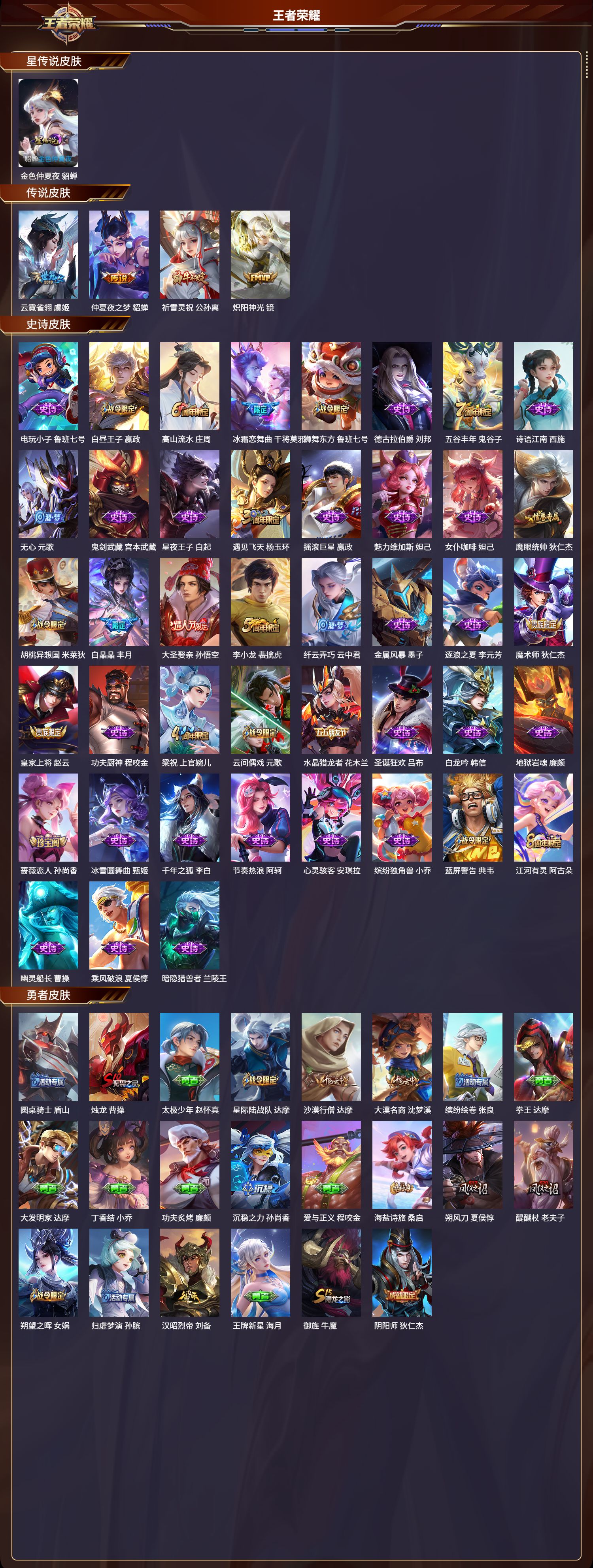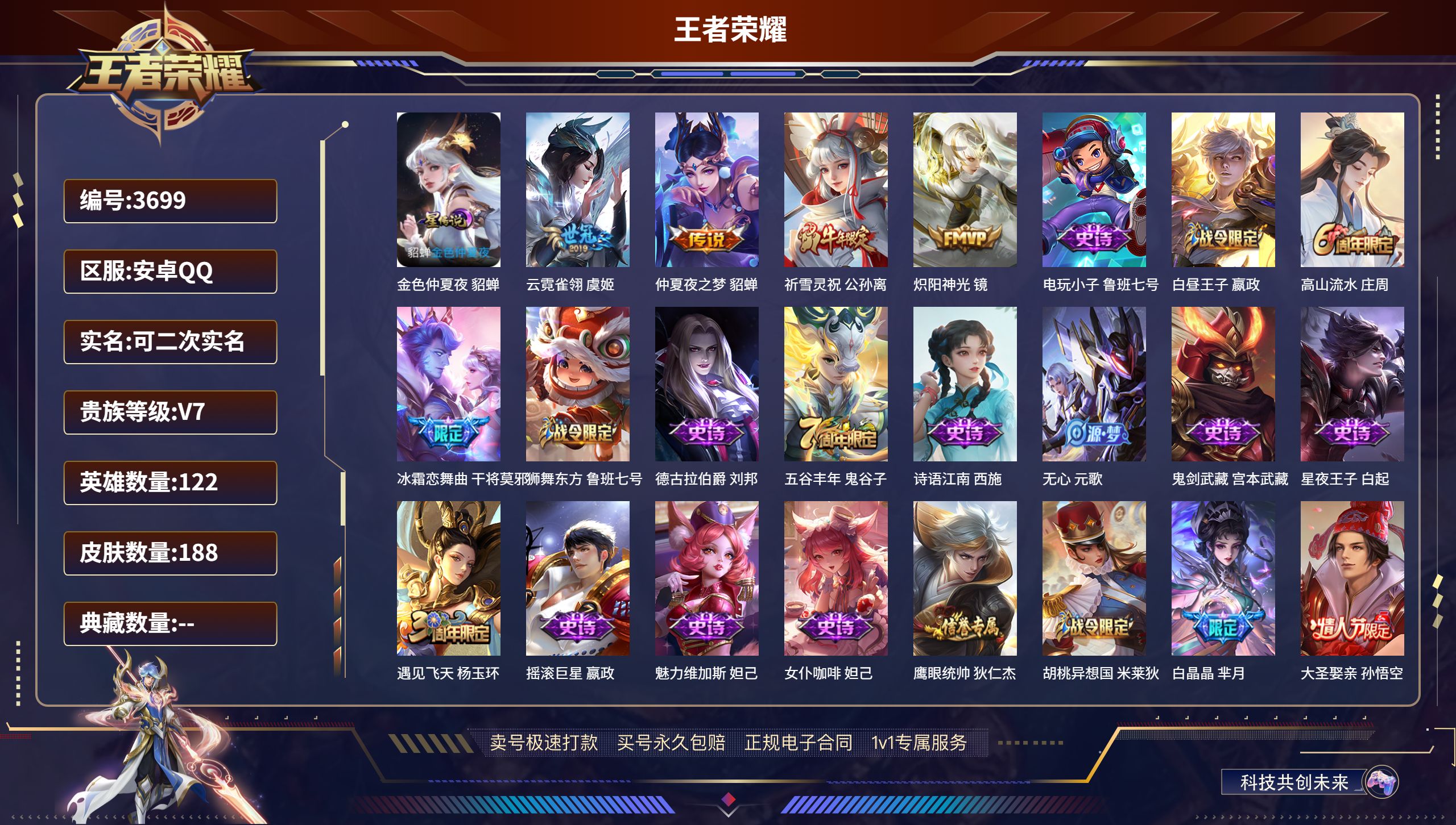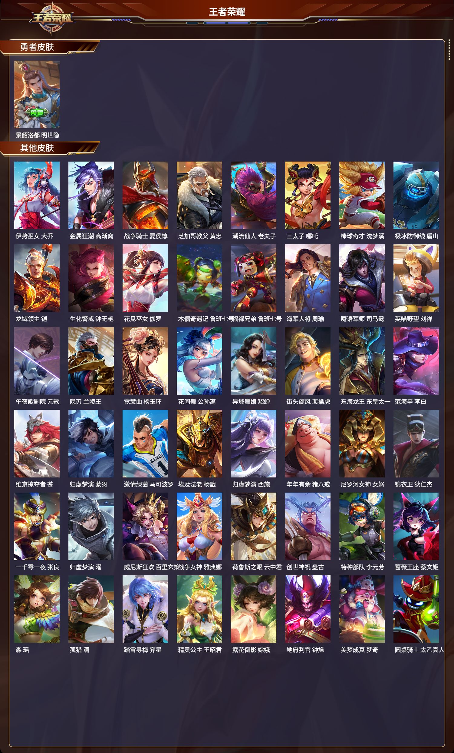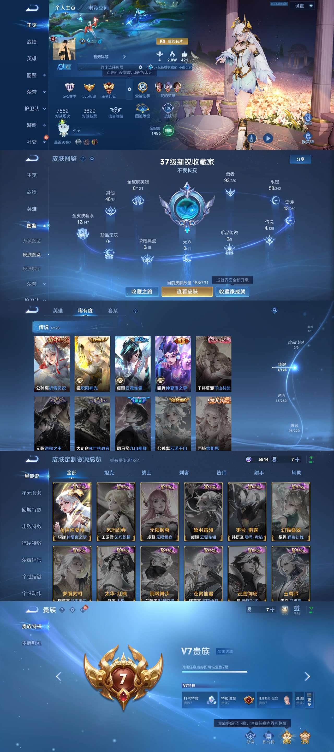 贵族等级:v6皮肤数:143传说品质5 英雄数:120