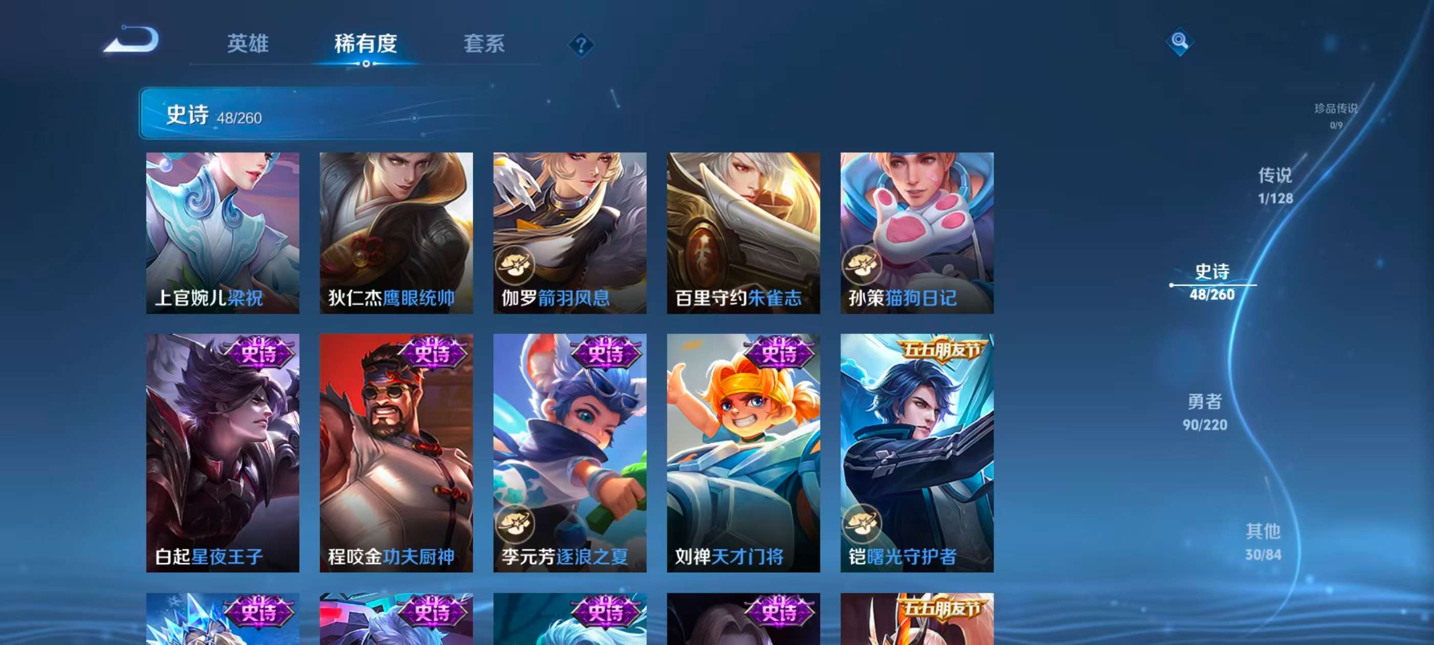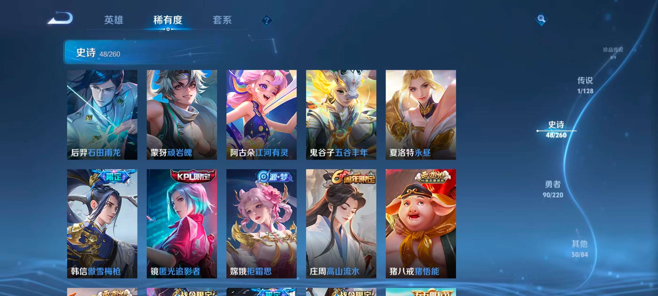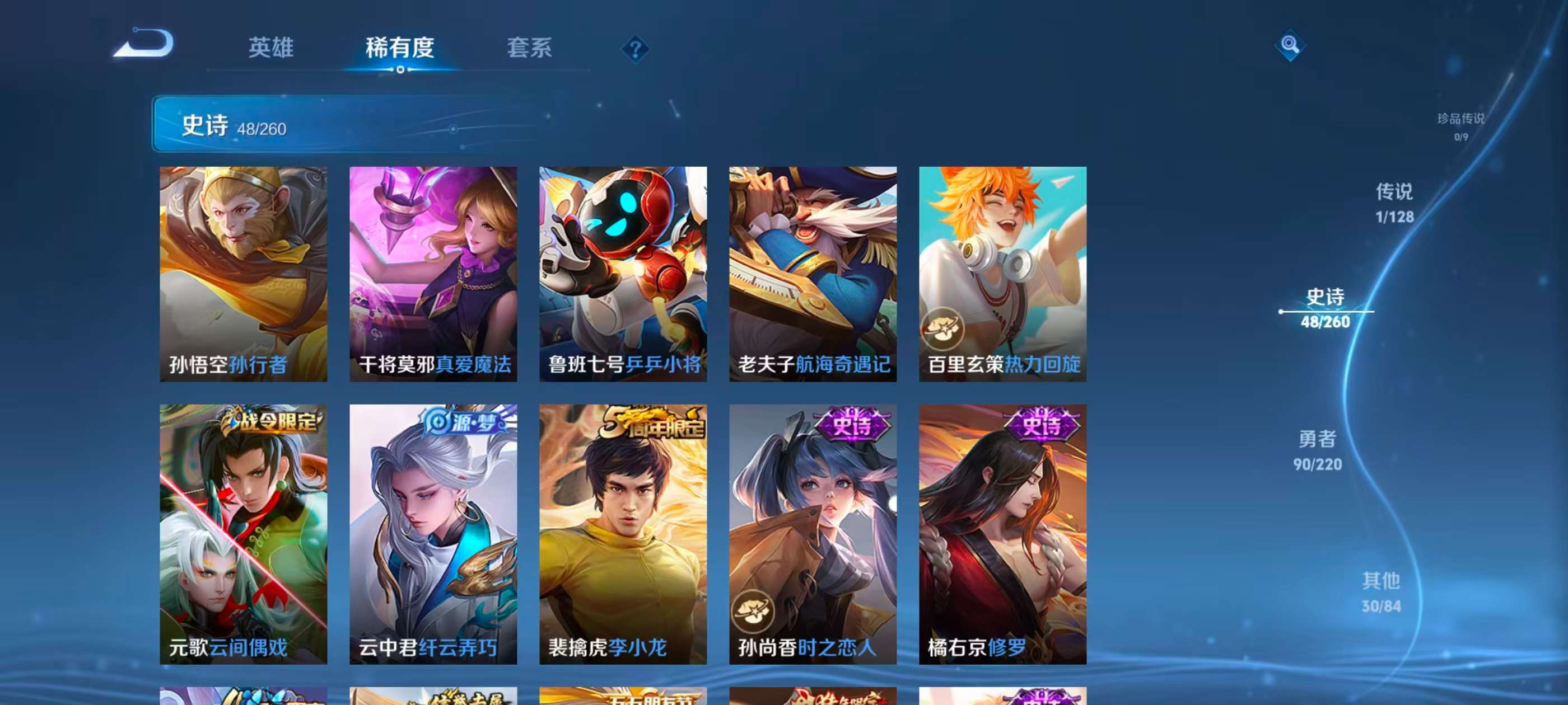 贵族等级:v7皮肤数:98传说品质12 情人节限定1 英雄数:116