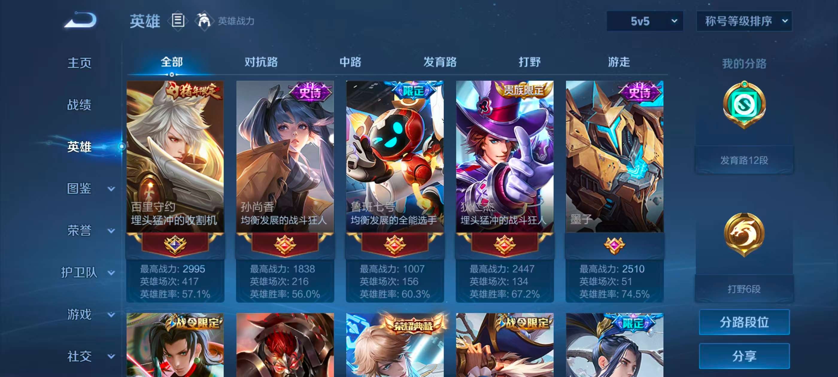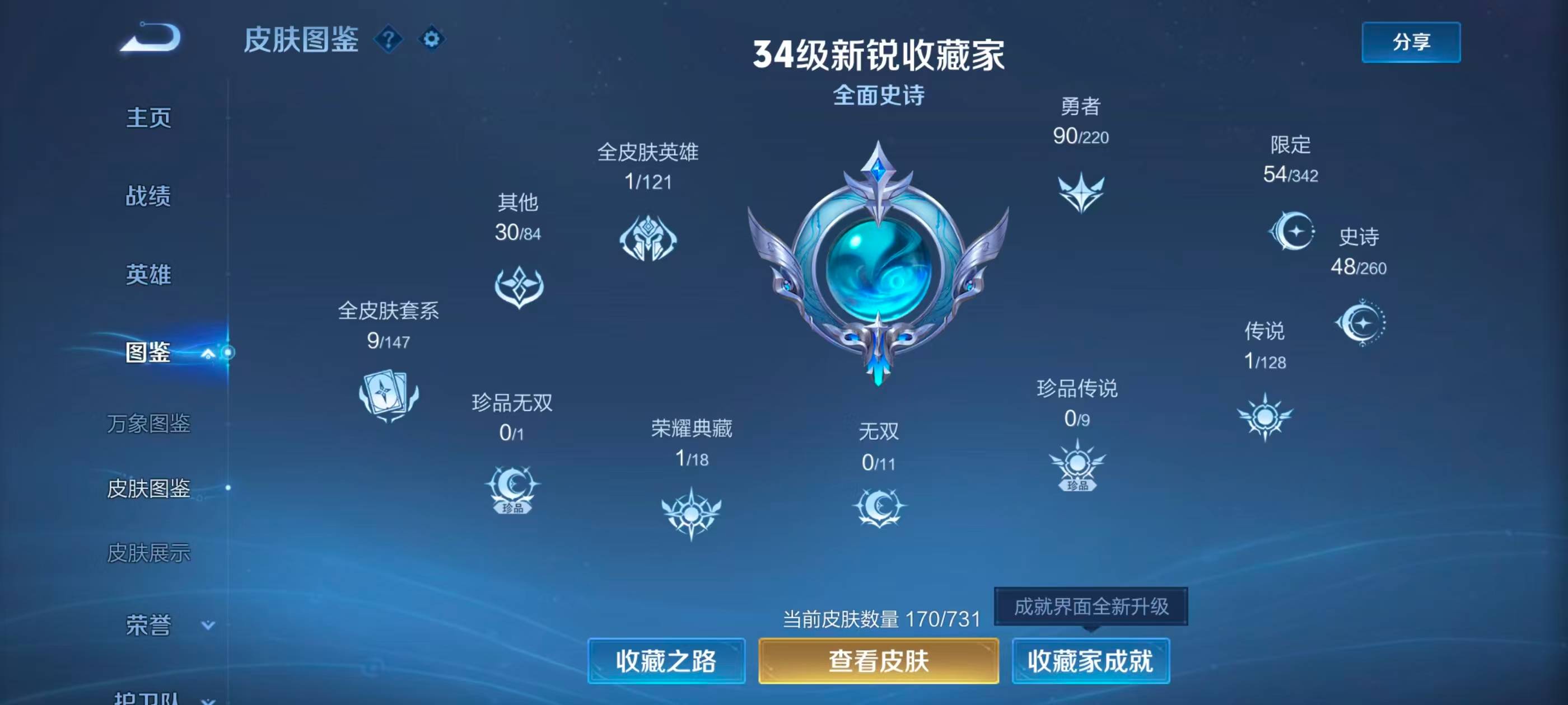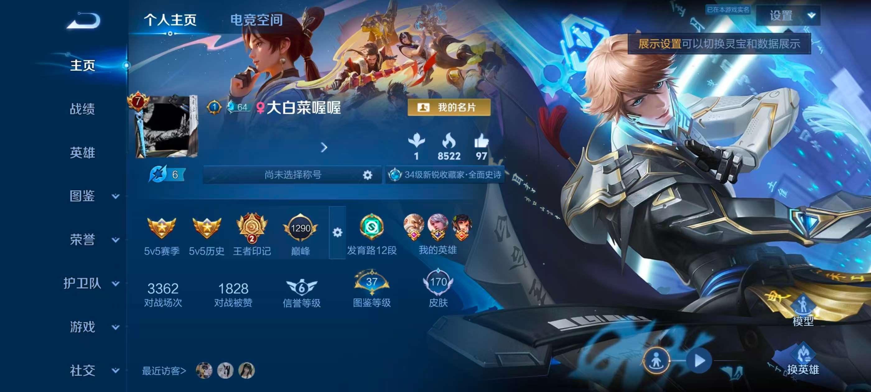 贵族等级:v7皮肤数:98传说品质12 情人节限定1 英雄数:116