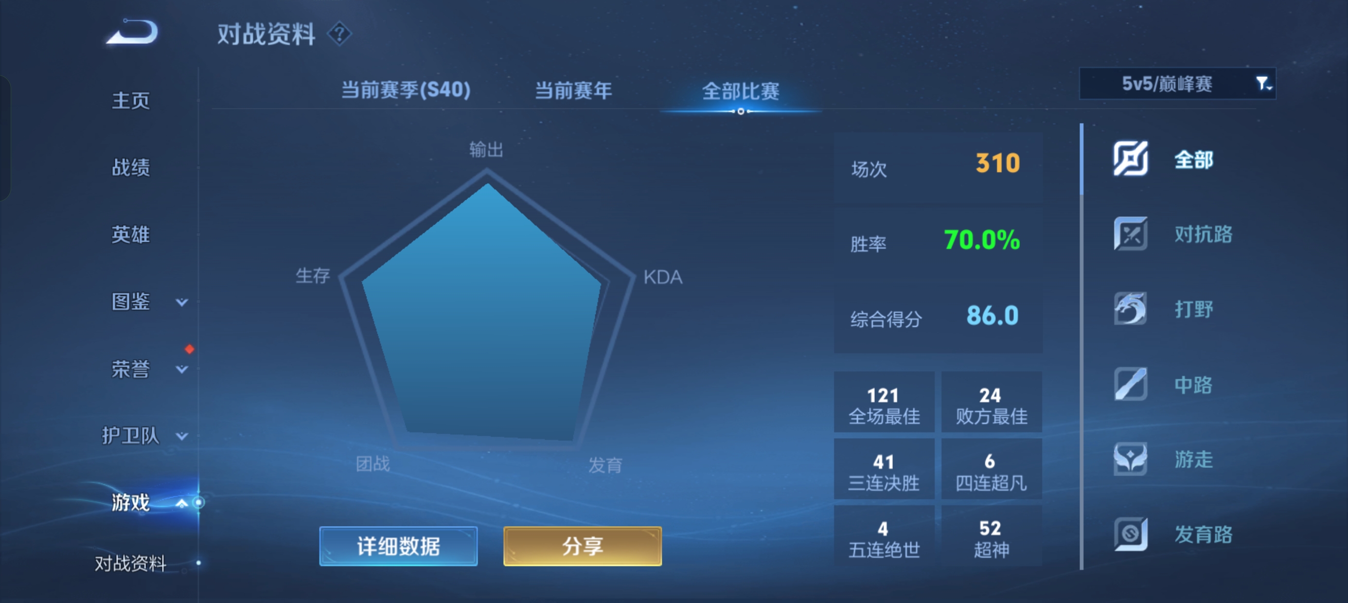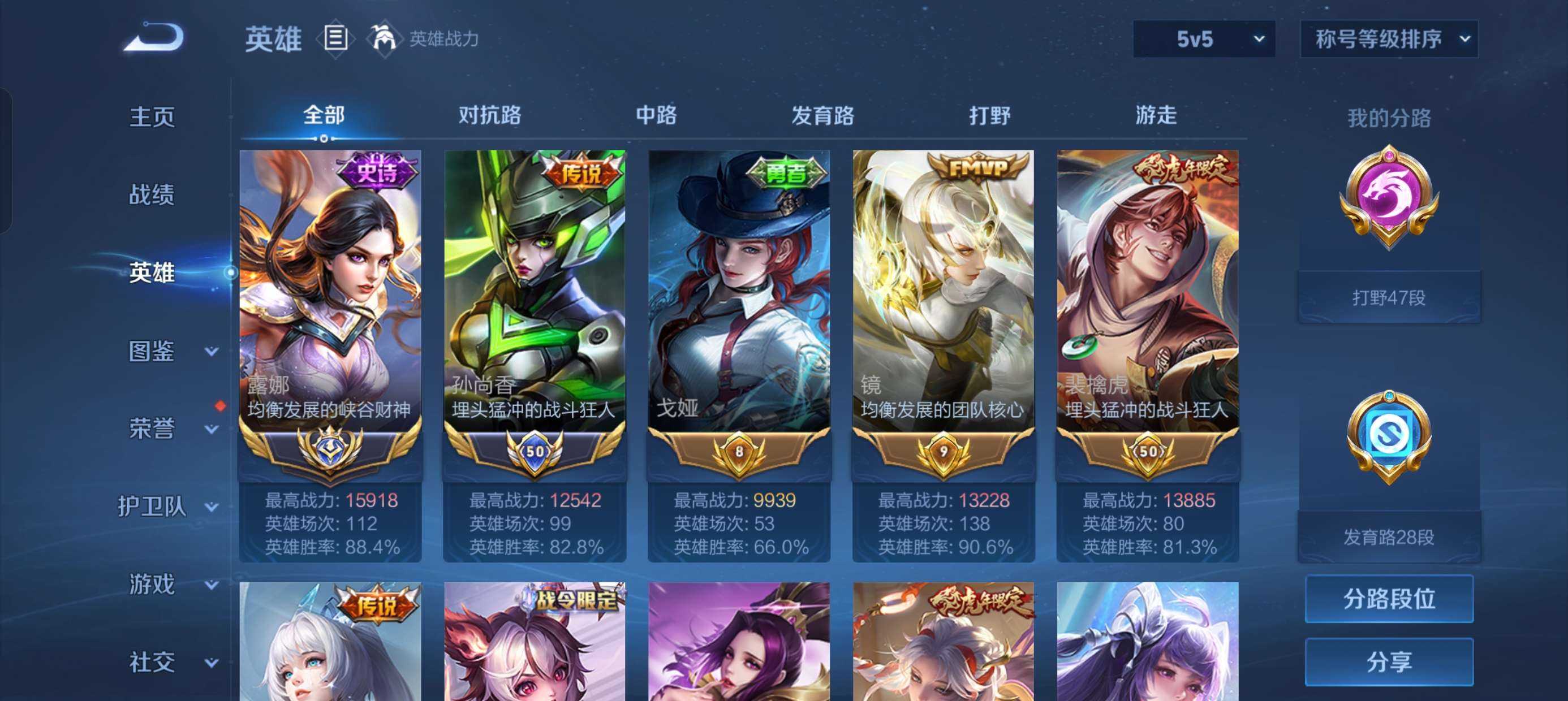贵族等级:v7皮肤数:213传说品质15 生肖限定5 荣耀典藏1 英雄数:121