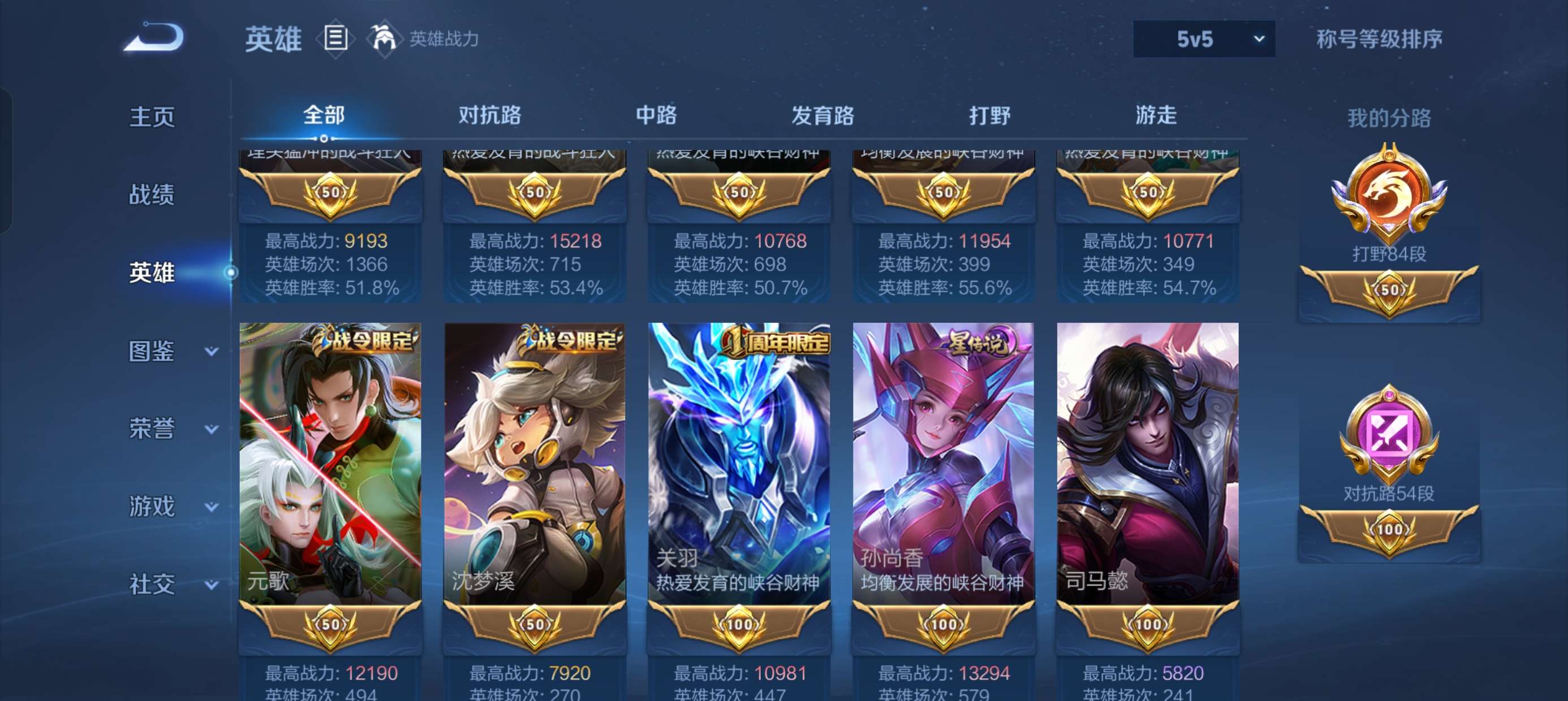贵族等级:v7皮肤数:175传说品质5 情人节限定3 生肖限定1 英雄数:122