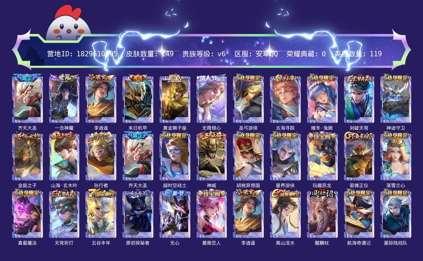 DSW1377+【6传说V6】安卓Q-149皮肤-119英雄 【传说皮肤】 无限倾心 齐天大圣 黄