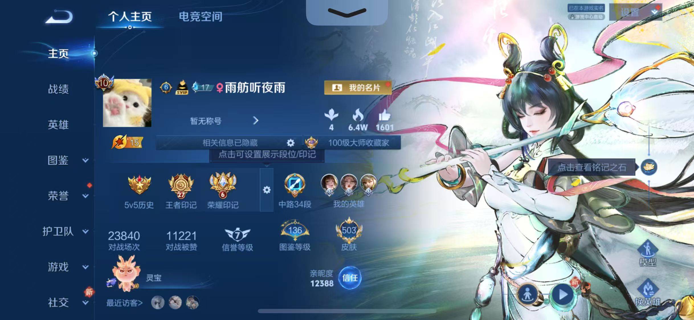 贵族等级:v7皮肤数:252珍品传说1 传说品质6 生肖限定1 荣耀典藏1 英雄数:122
