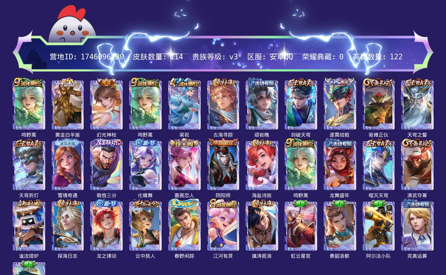 贵族等级:v3皮肤数:114传说品质3 英雄数:122