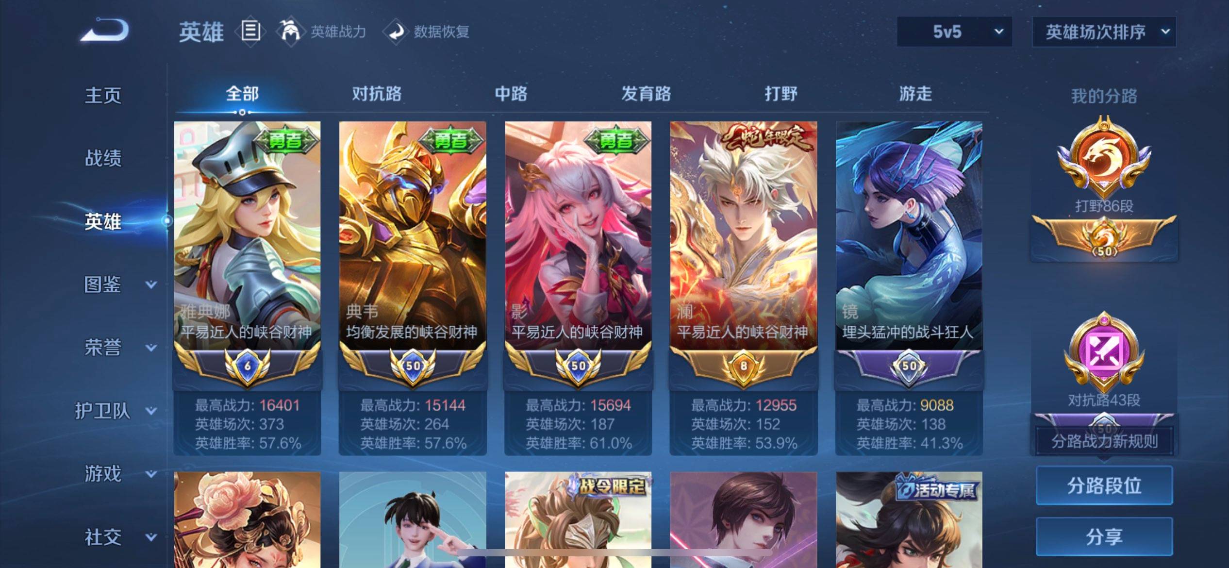 贵族等级:v7皮肤数:225情人节限定6 传说品质7 生肖限定1 英雄数:121