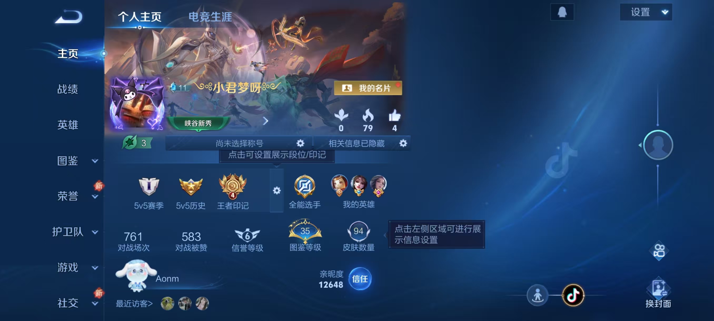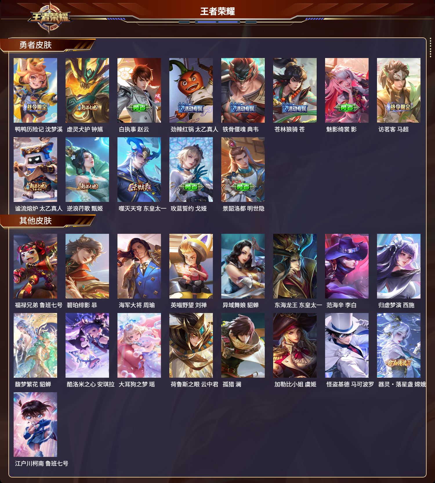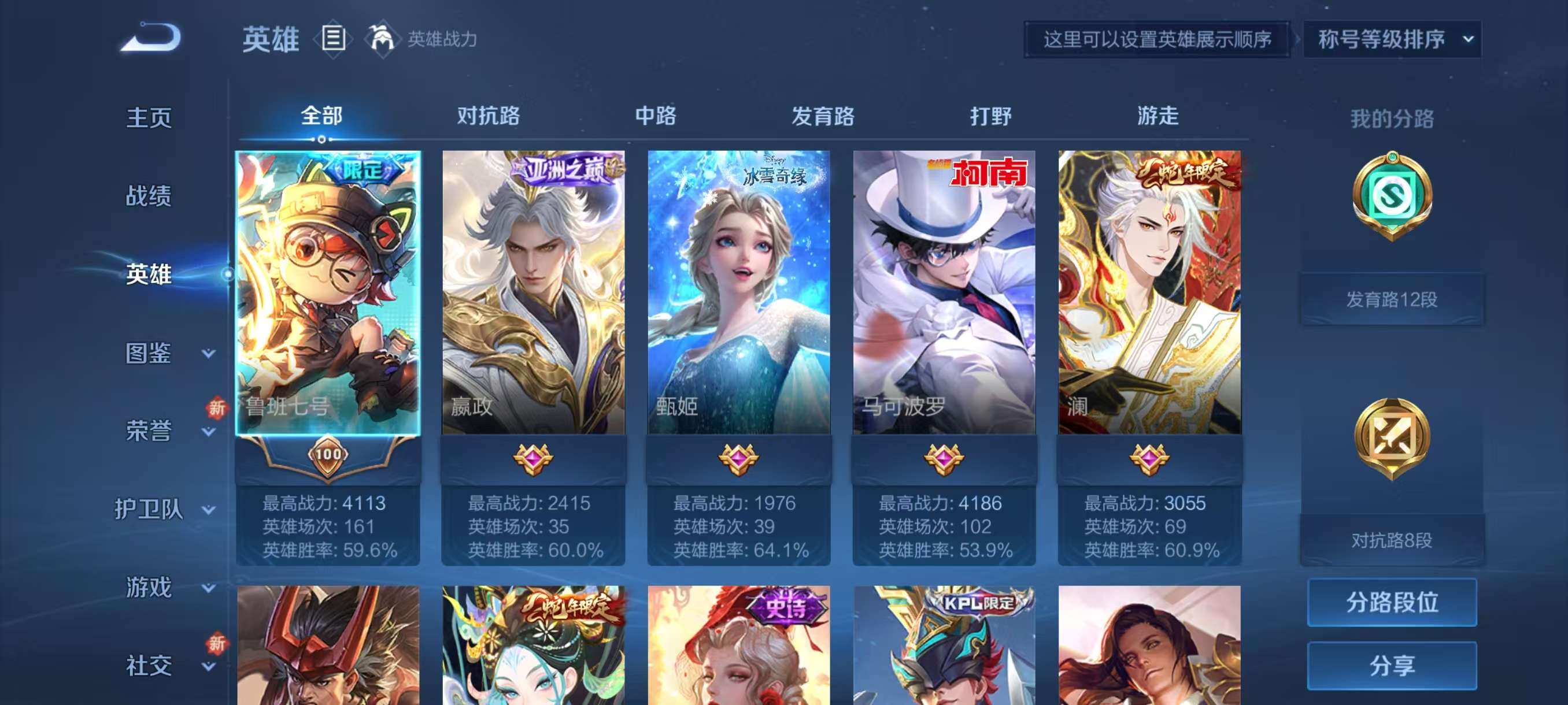 贵族等级:v1皮肤数:96生肖限定1 情人节限定1 英雄数:111