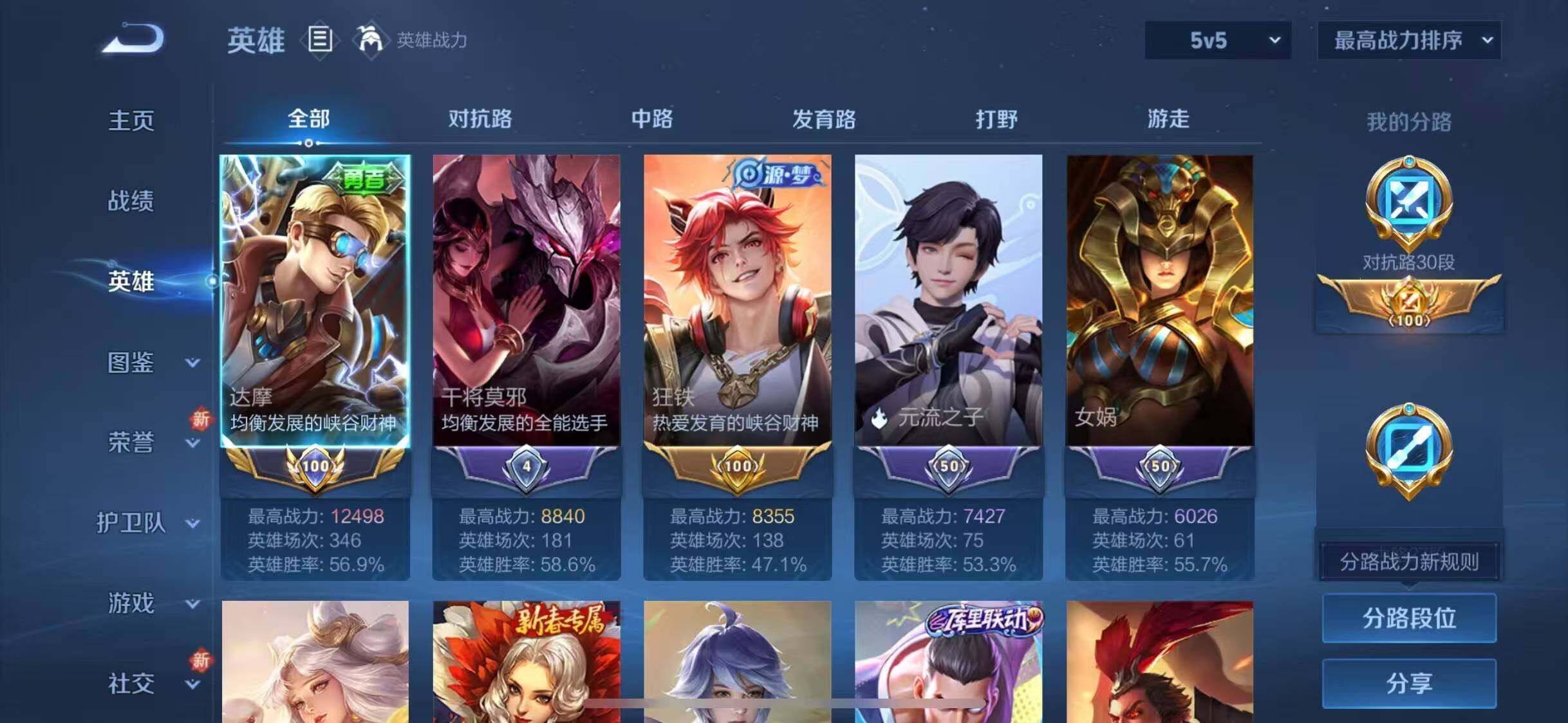 贵族等级:v8皮肤数:274情人节限定2 传说品质16 荣耀典藏3 生肖限定2 英雄数:121