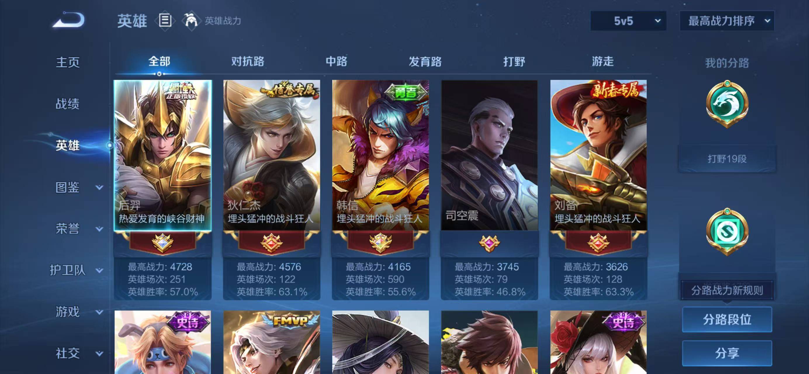 贵族等级:v7皮肤数:225传说品质5 情人节限定2 生肖限定3 英雄数:121