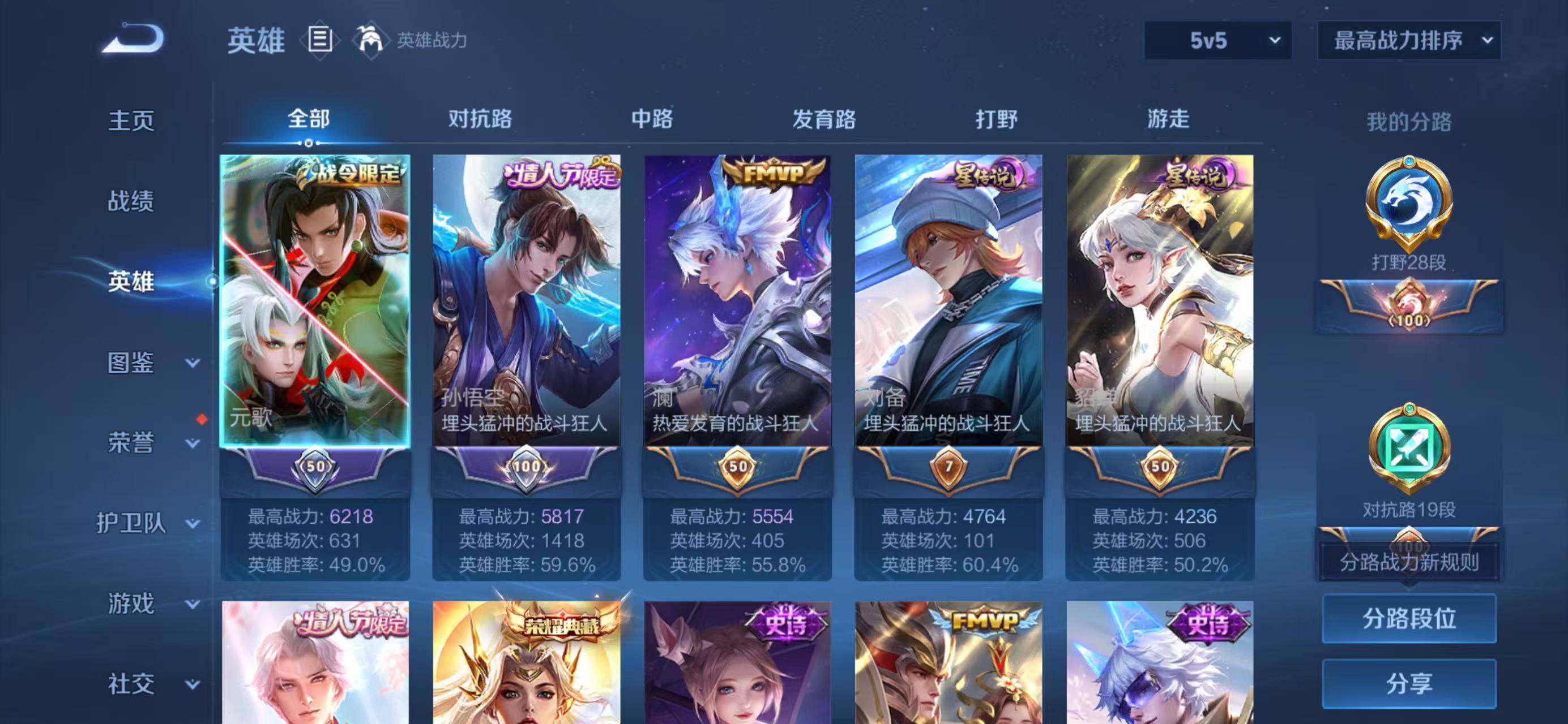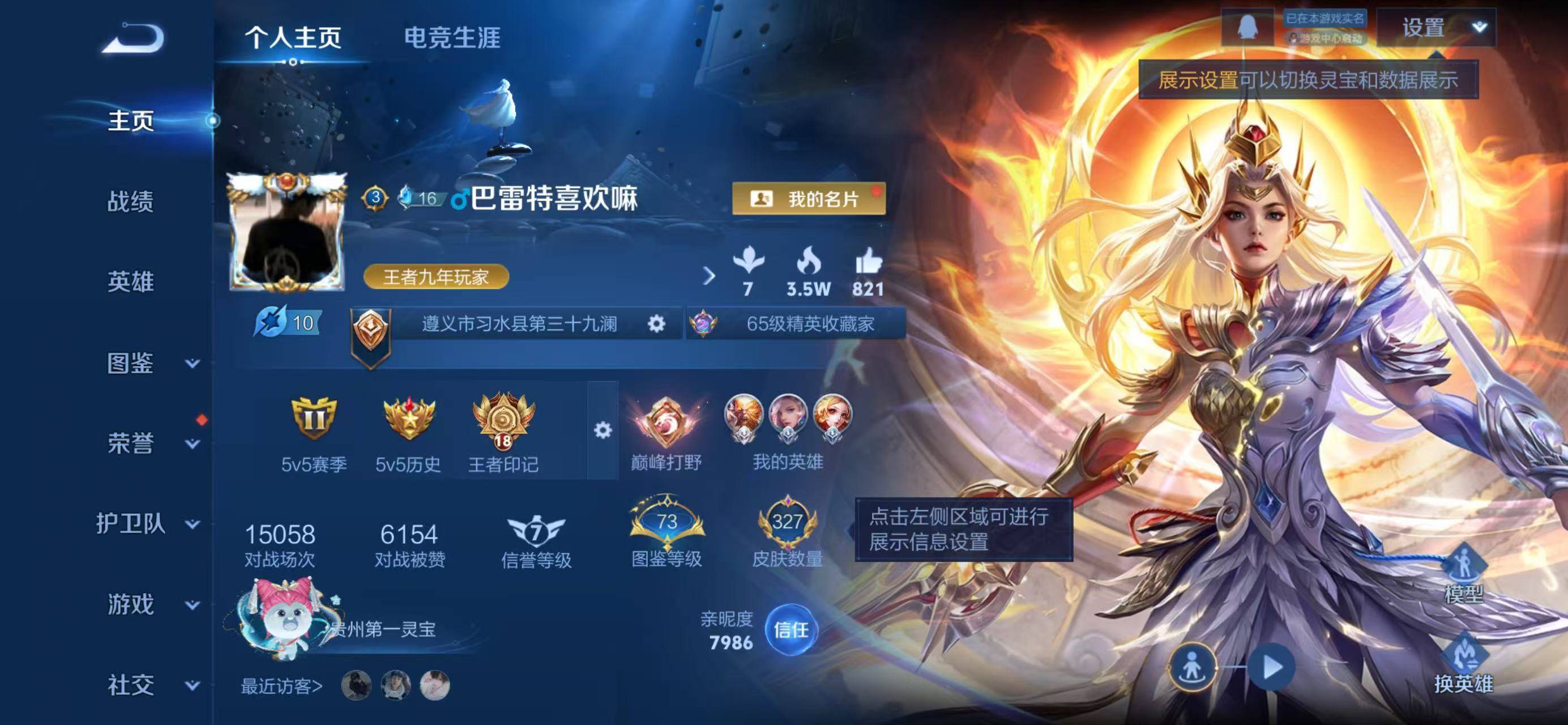贵族等级:v8皮肤数:225传说品质16 生肖限定5 荣耀典藏1 英雄数:122